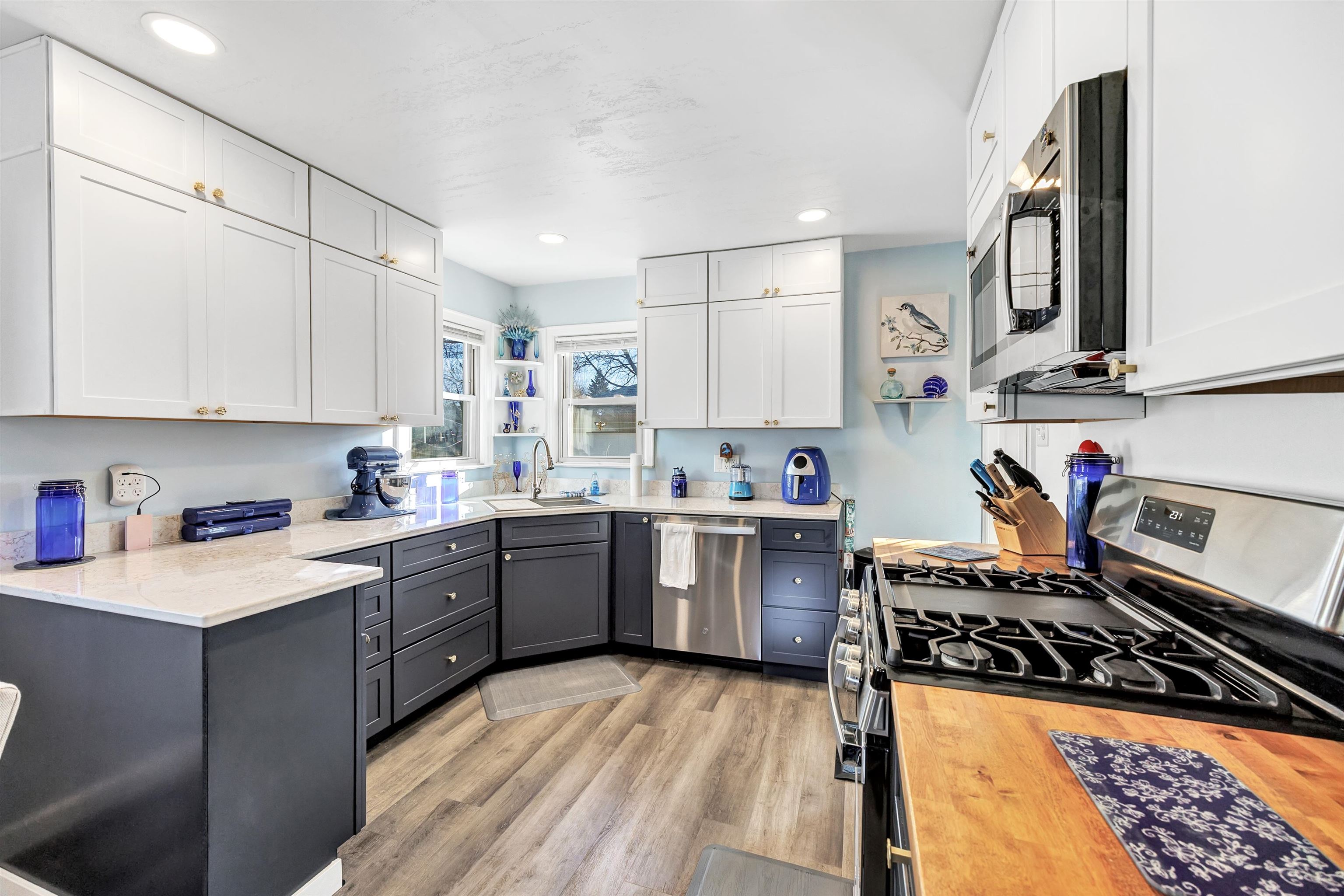 Move-in ready and fully updated 2 bed, 2 bath all brick ranch on Green Bay’s northeast side, located on a quiet dead-end street just steps from Farlin Park. This home features a completely remodeled kitchen, new appliances, water heater, bathrooms upgrades, bedroom flooring, newer roof, windows and fresh finishes that give it a modern, open feel. The main level offers a bright living space and two comfortable bedrooms, while the partially finished lower level adds a spacious family room, full bath, and laundry area.