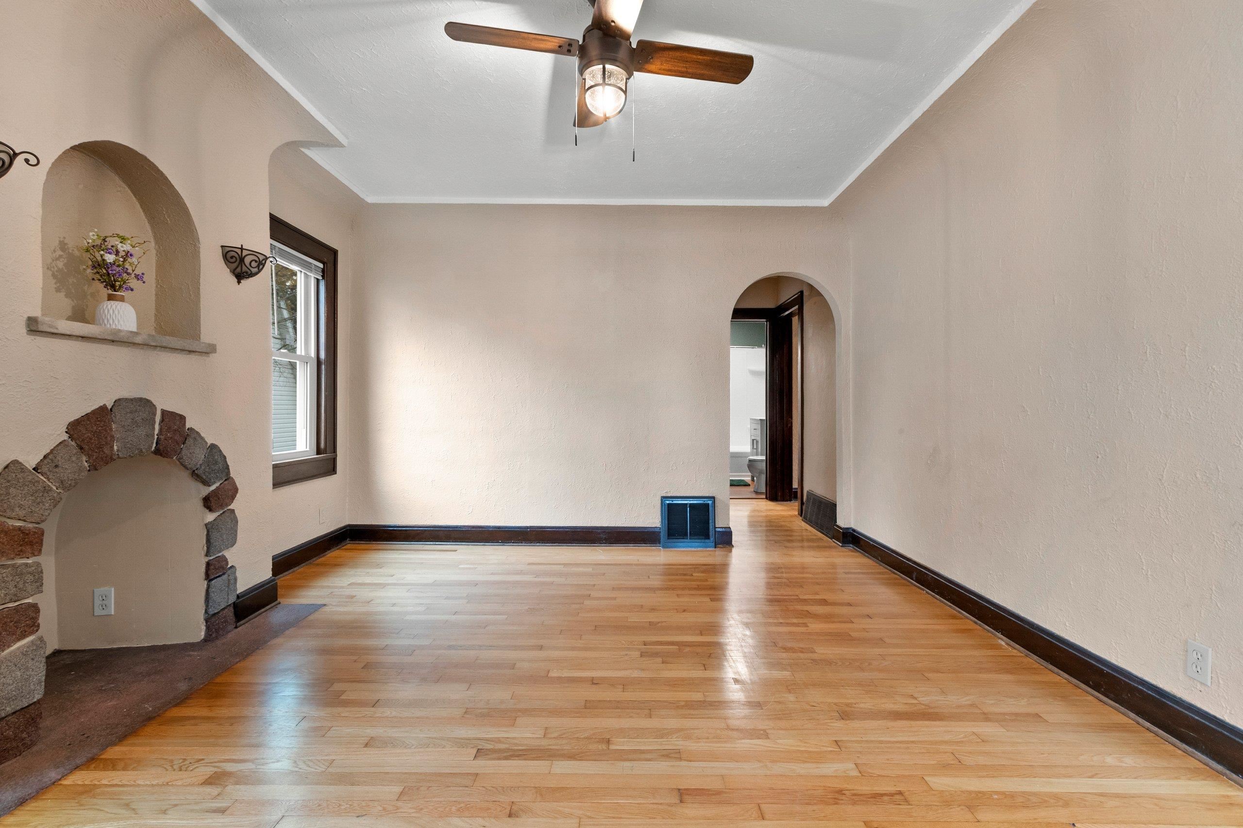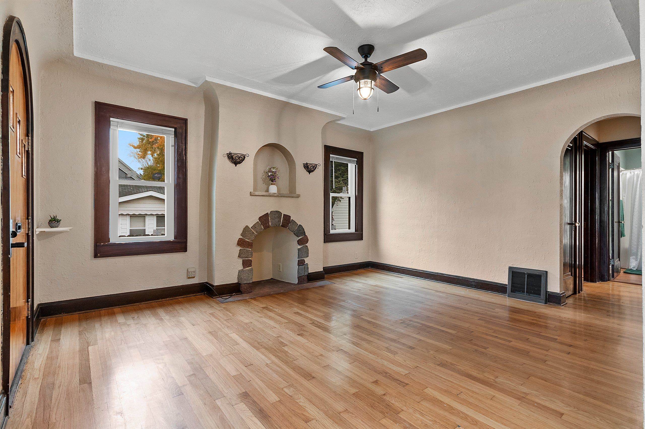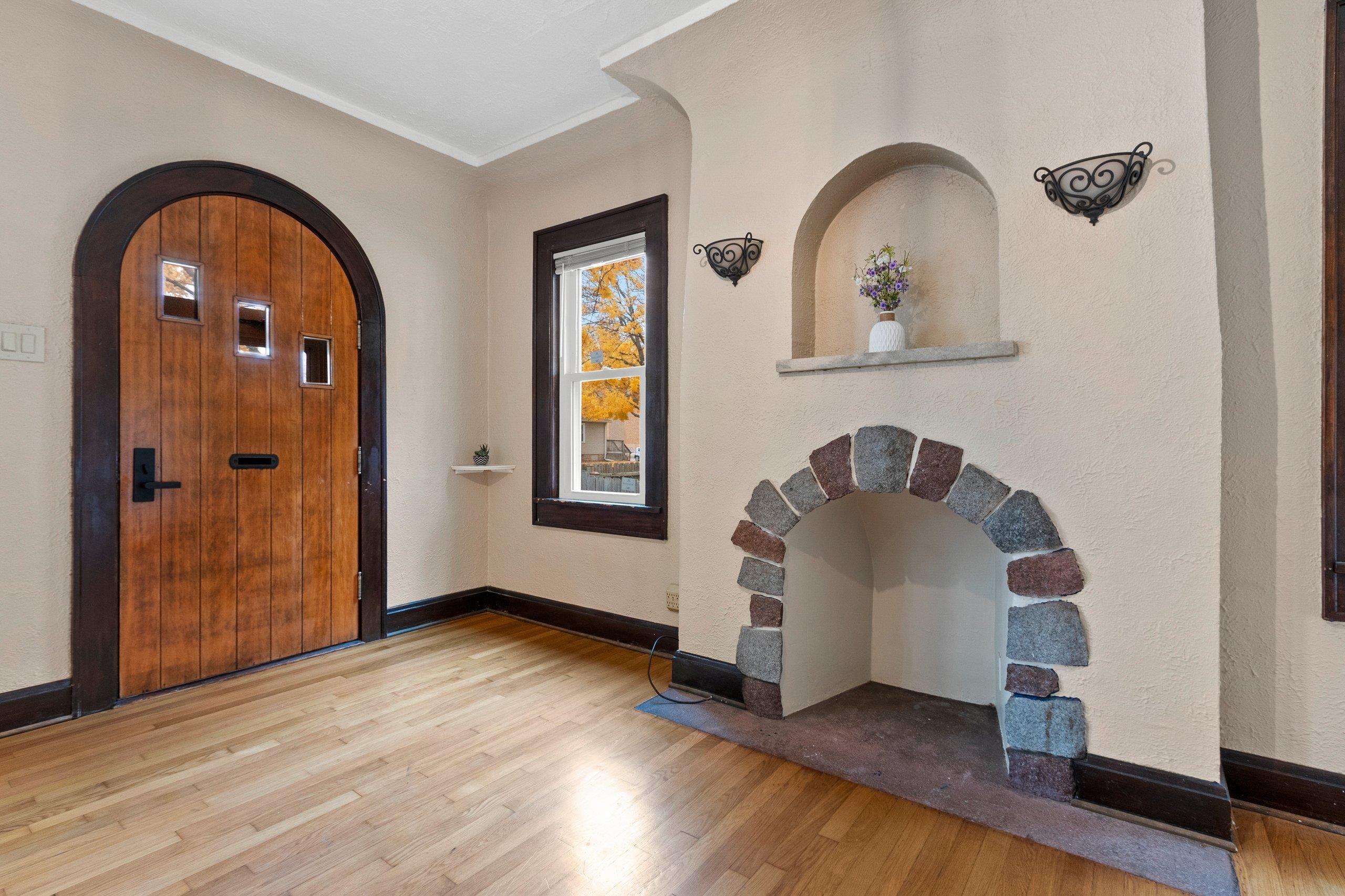 Old word charm with modern updates. Truly a spectacular design with arched doorways, hardwood floors, a decretive fireplace (not in use), and some glass doorknobs. Relax in the 4 season room overlooking a large back yard. Updates include windows (2021), updated bathroom (2025), furnace ((2023), sunroom carpet (2025), landscaping (2025), water heater (2025), kitchen countertops and sink (2025), fiberglass insulation and spray foamed sills in basement (2025), epoxy floors in basement (2025)