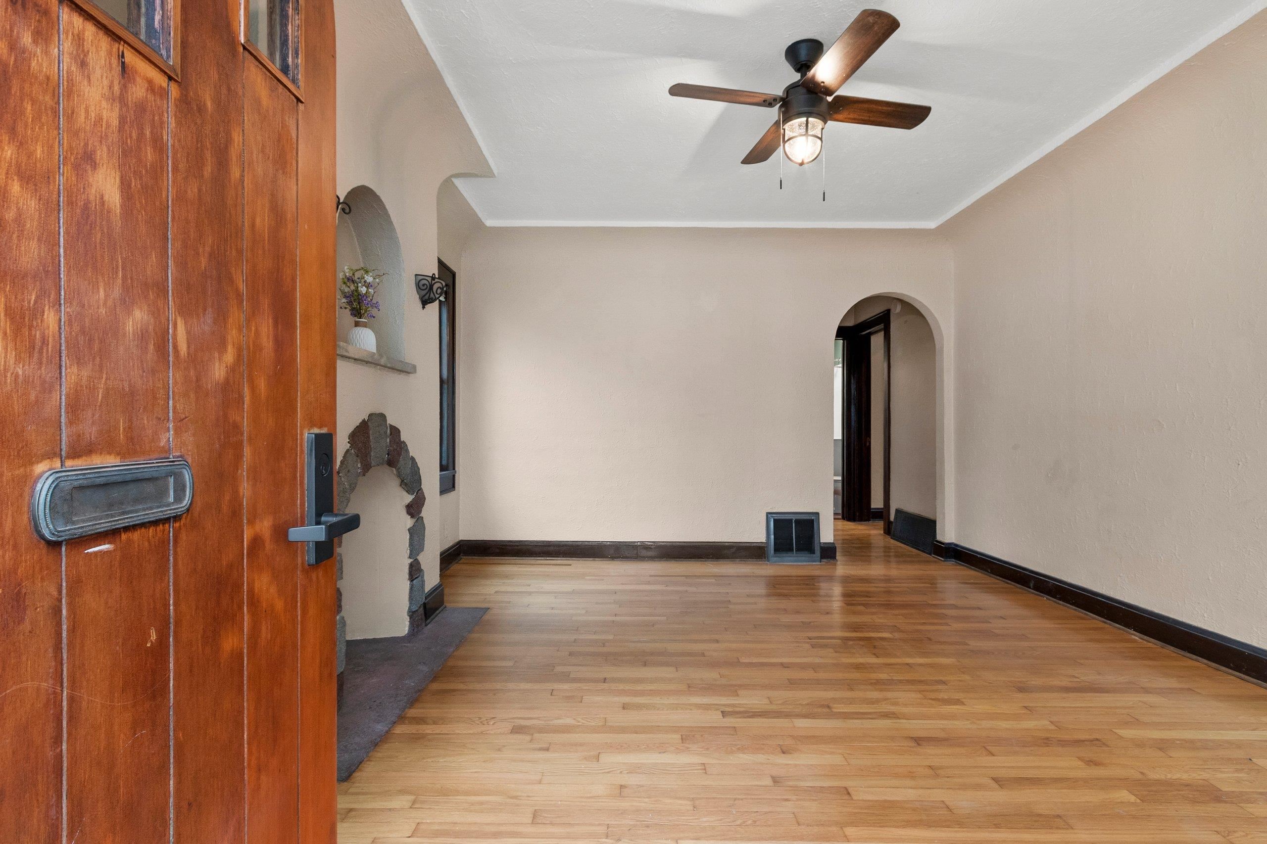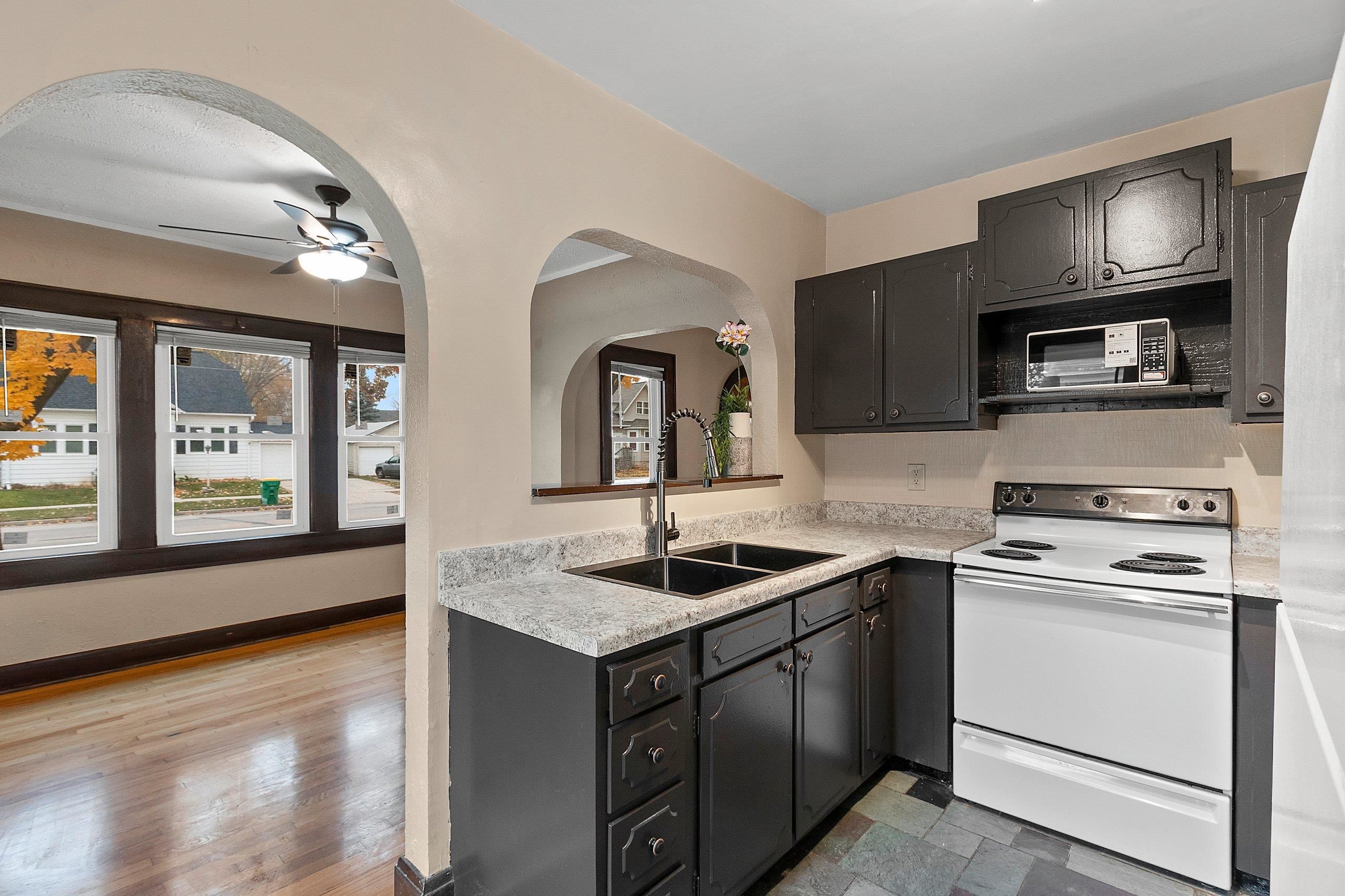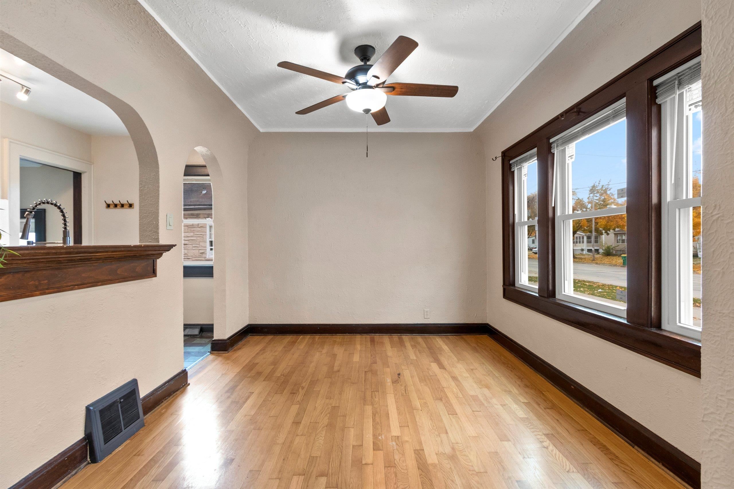 Old word charm with modern updates. Truly a spectacular design with arched doorways, hardwood floors, a decretive fireplace (not in use), and some glass doorknobs. Relax in the 4 season room overlooking a large back yard. Updates include windows (2021), updated bathroom (2025), furnace ((2023), sunroom carpet (2025), landscaping (2025), water heater (2025), kitchen countertops and sink (2025), fiberglass insulation and spray foamed sills in basement (2025), epoxy floors in basement (2025)