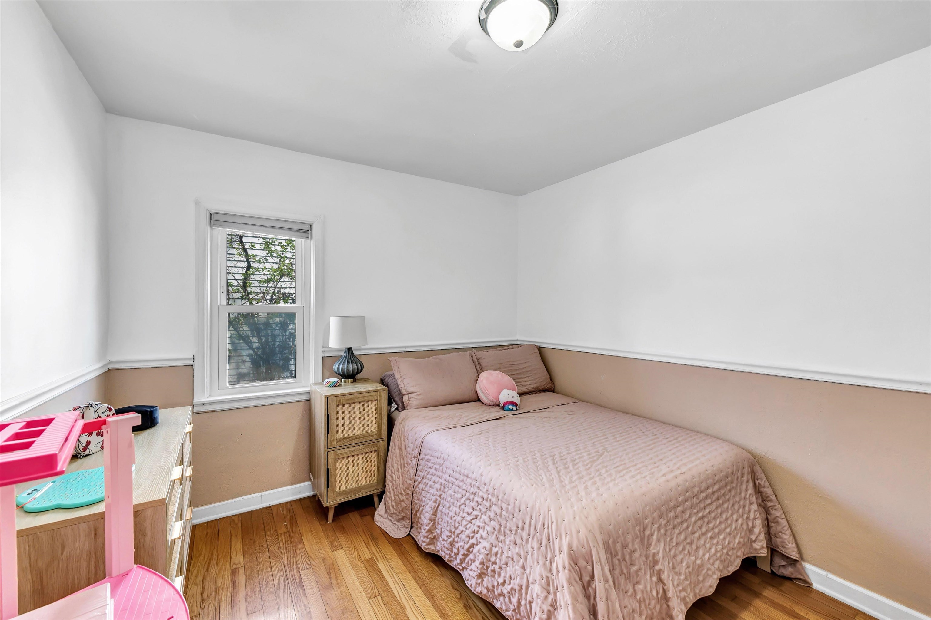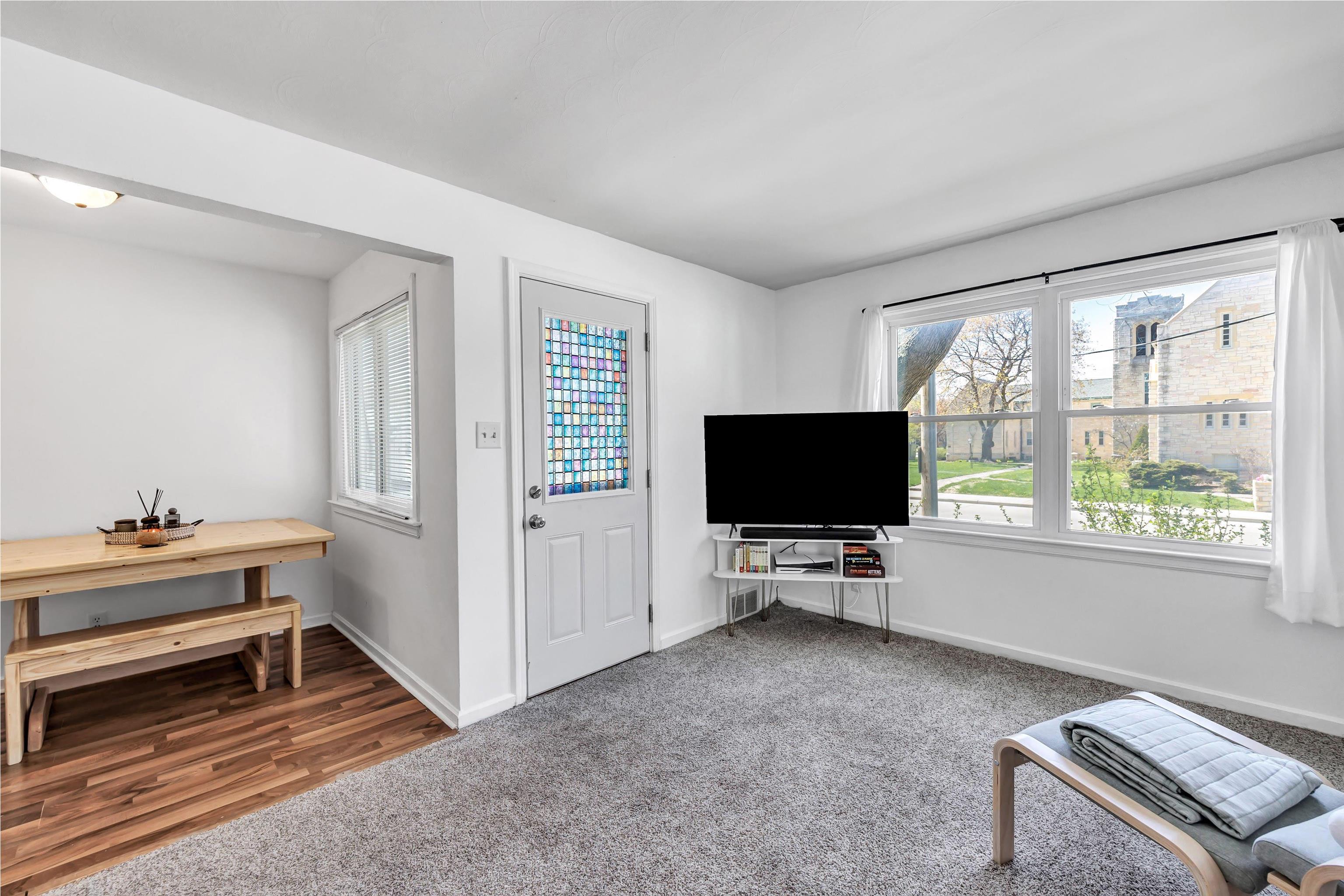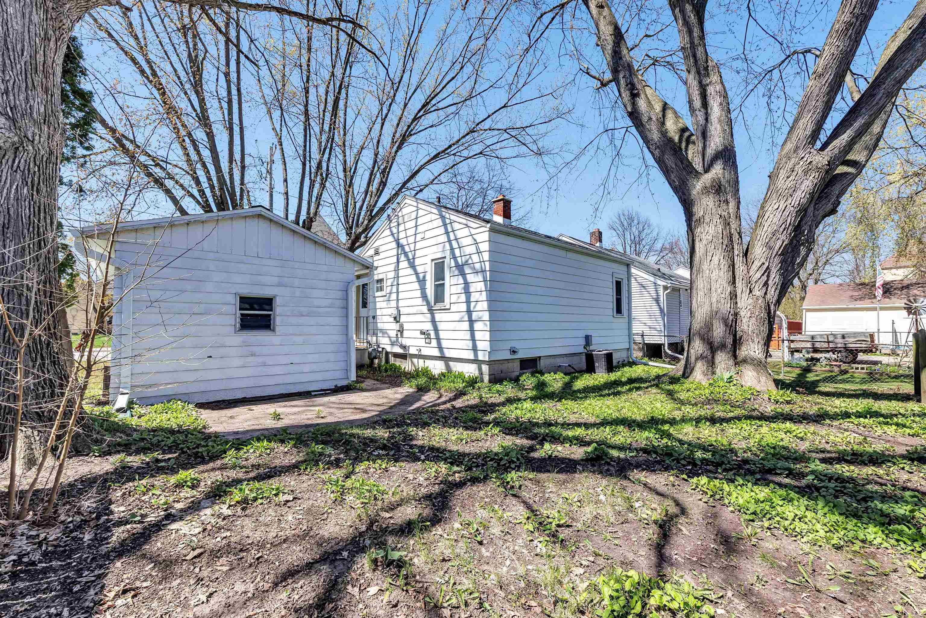Welcome to this charming, well-maintained home full of natural light and classic character. The spacious living room features large windows and cozy carpeting, for relaxing or entertaining. A cute, functional dining room with vinyl flooring offers a bright spot for meals. Bedroom one showcases freshly painted white walls and original hardwood floors, while bedroom two includes hardwood floors, natural light, and a painted chair rail. Enjoy the partially fenced backyard with a concrete slab, for outdoor activities. A detached, one-stallgarage provides stable parking or storage —schedule your showing today! 48 hours binding acceptance.