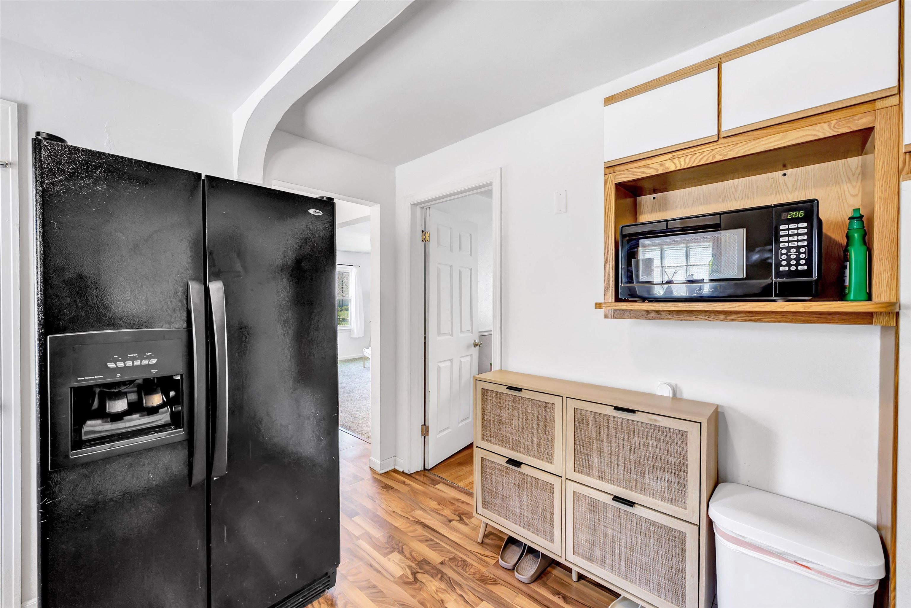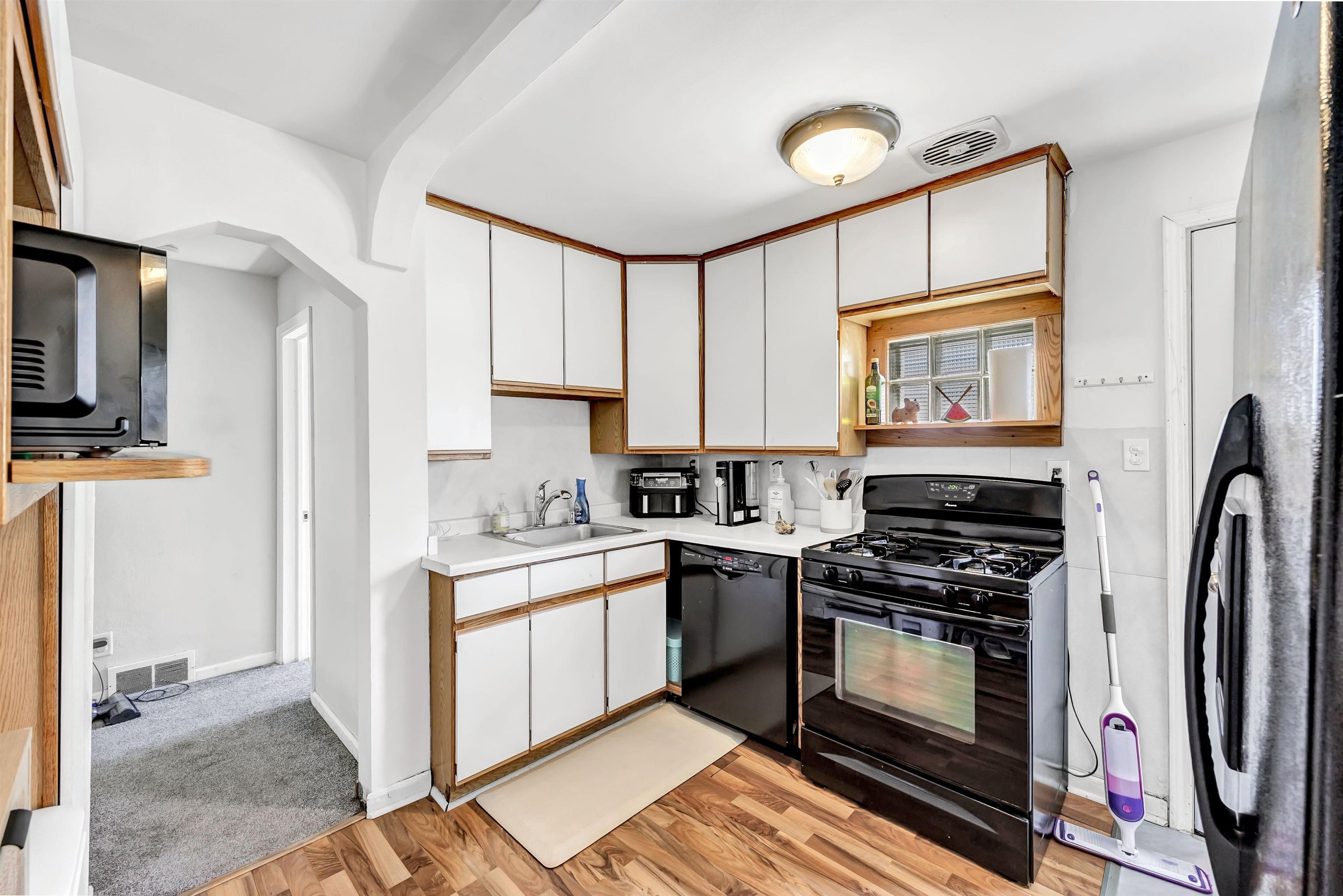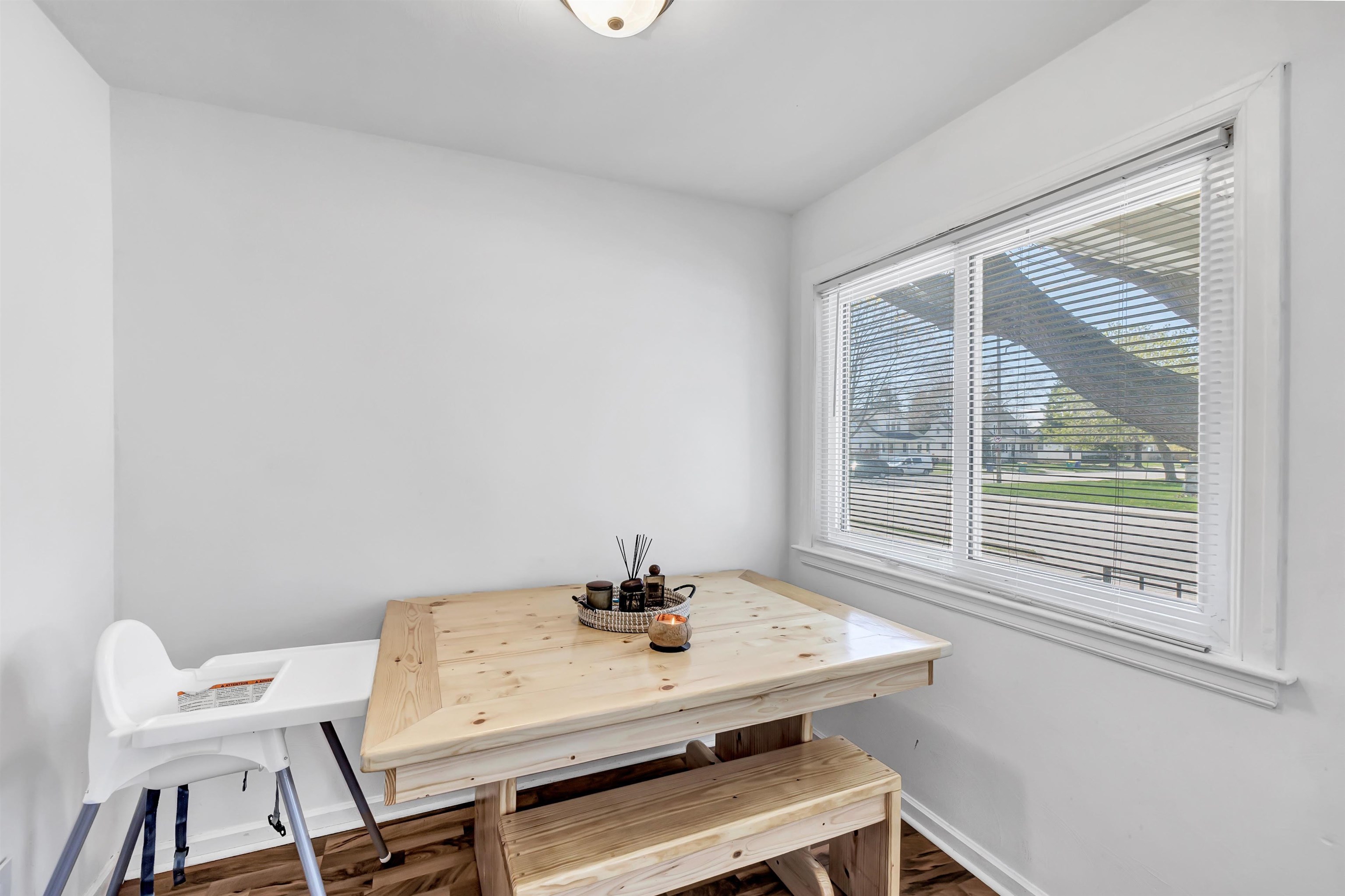 Welcome to this charming, well-maintained home full of natural light and classic character. The spacious living room features large windows and cozy carpeting, for relaxing or entertaining. A cute, functional dining room with vinyl flooring offers a bright spot for meals. Bedroom one showcases freshly painted white walls and original hardwood floors, while bedroom two includes hardwood floors, natural light, and a painted chair rail. Enjoy the partially fenced backyard with a concrete slab, for outdoor activities. A detached, one-stallgarage provides stable parking or storage —schedule your showing today! 48 hours binding acceptance.
