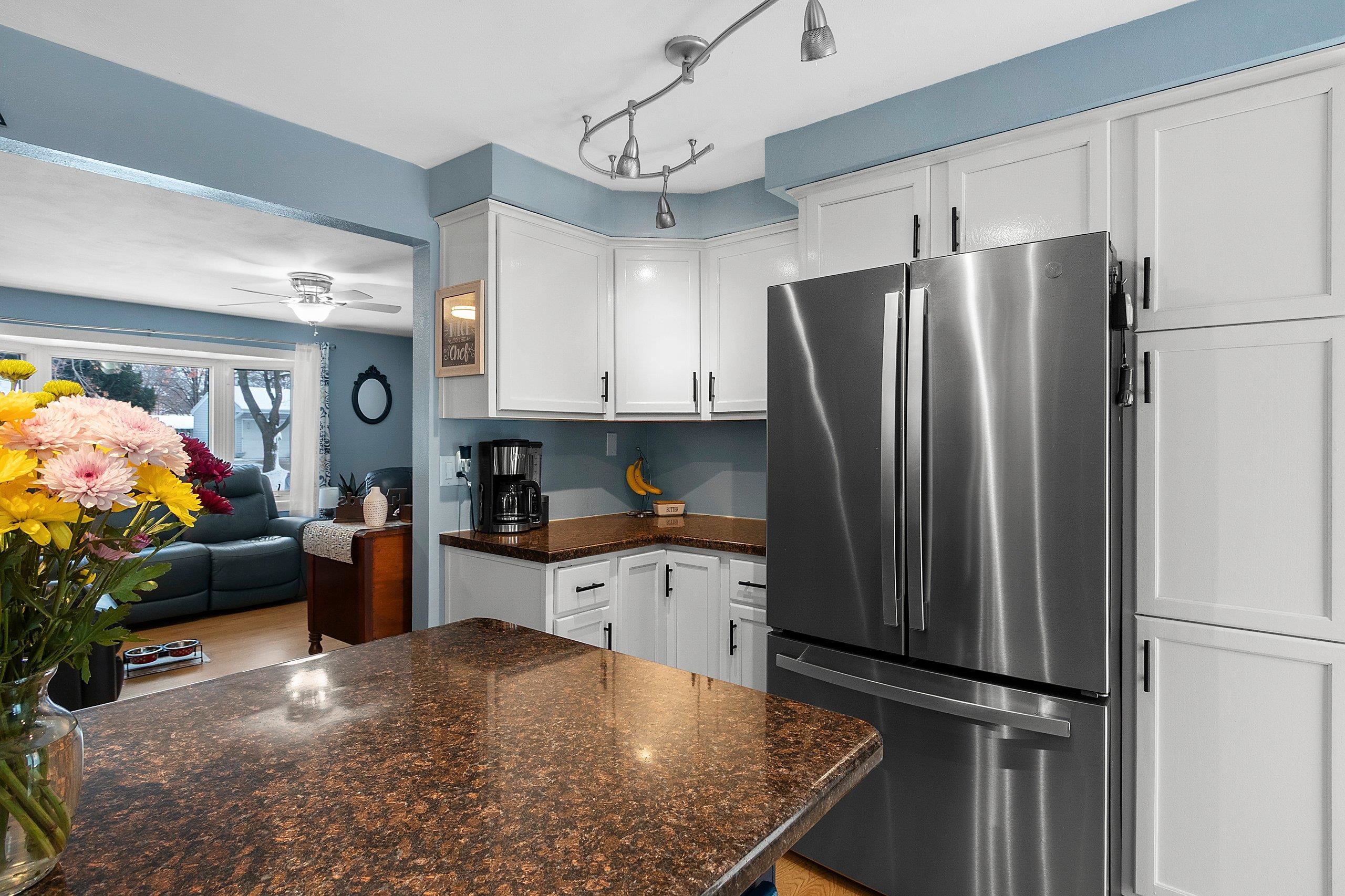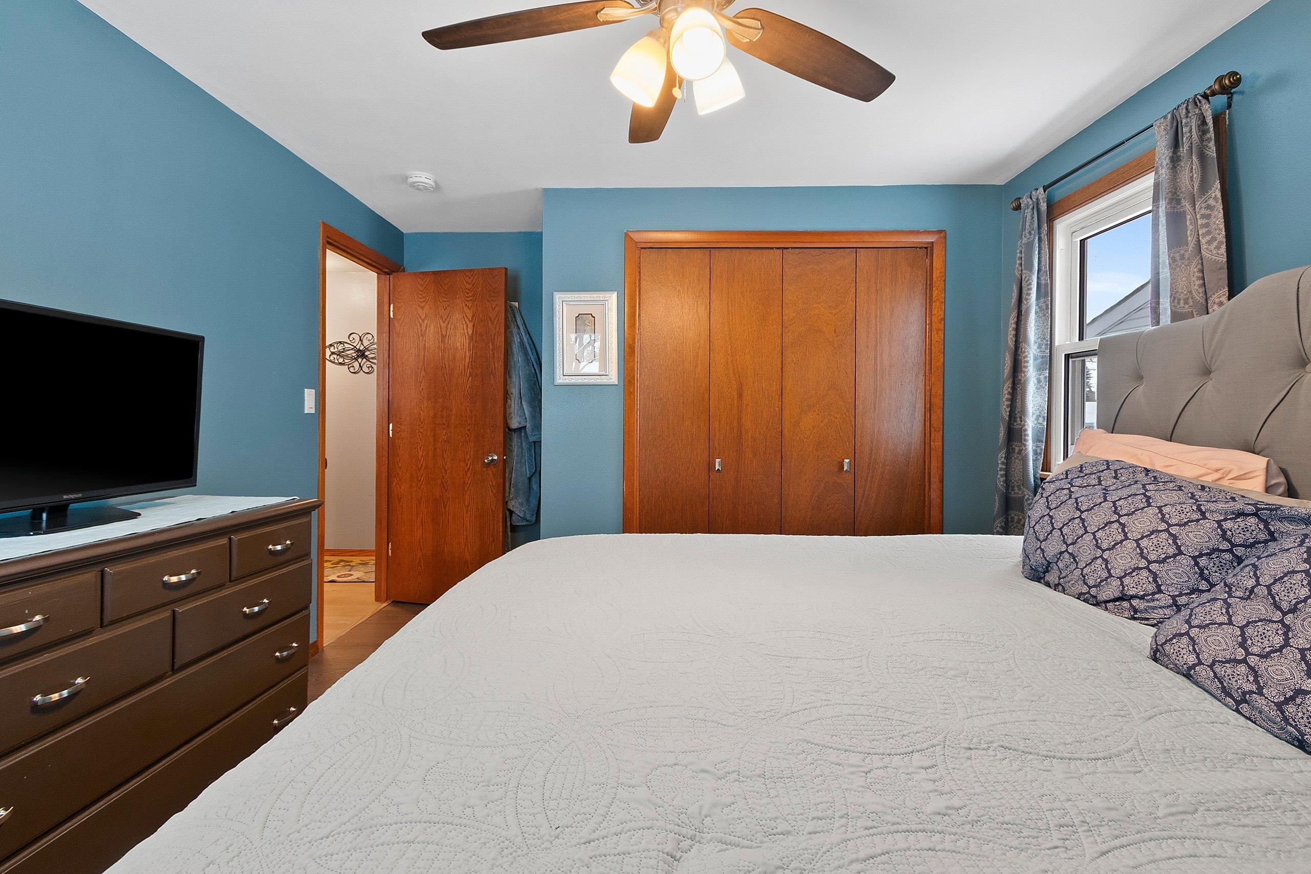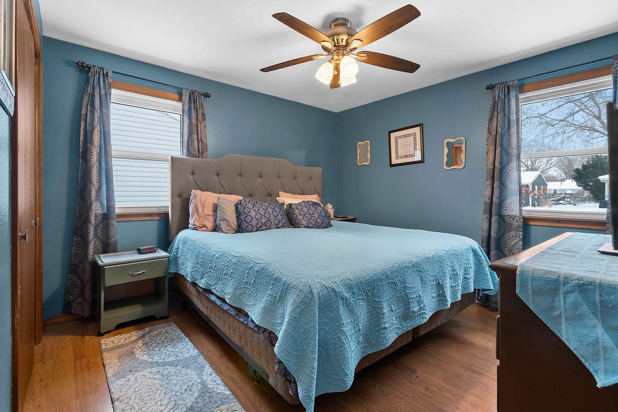 This well-maintained residence features four bedrooms and two bathrooms, with updated windows throughout. The property includes a spacious basement with a bedroom, a bonus room adjacent to the garage, and a private backyard with a large deck and storage building. Centrally located in Green Bay, the home also offers an open-concept layout, a two-car garage, and original hardwood flooring in select areas.