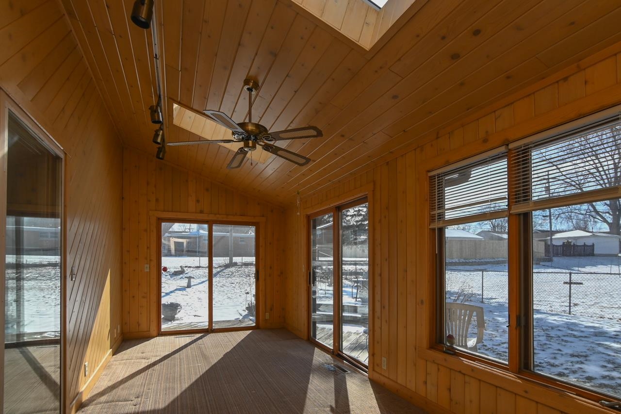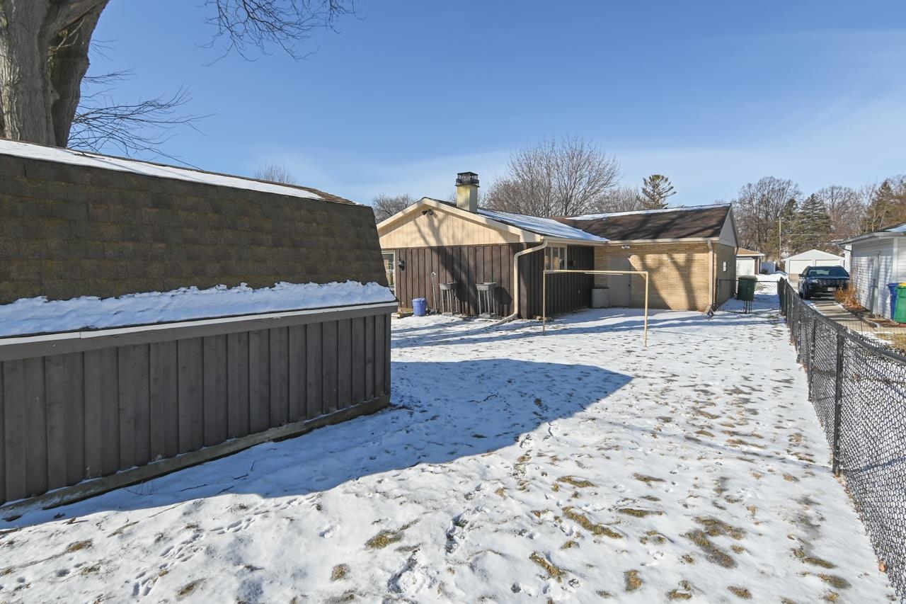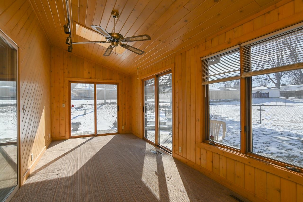 Step into this inviting, well maintained brick Mid Century Modern home w/ plenty of room to roam! This 3 bed, 2 bath home is made for entertaining, w/ a main floor family room off dinette w/wet bar area & fireplace, FR leads to a 4 season room, overlooking a fenced yard with a deck & shed. Kitchen has a plethora of cabinets & even a sm butler's closet. All 3 bedrms have wood floors, built-in cabinet in hallway & cedar closet. Downstairs you will find the 2nd bathrm, rec room & partially fin game rm w/2 painted block walls, unfin laundry area w/cabinets & a lg utility/storage area with shelving. Recent updates in the last 5 years incl new roof, furnace & AC (2022). This is an estate sale & condition of the fireplace is unknown. 48 hours for binding acceptance.