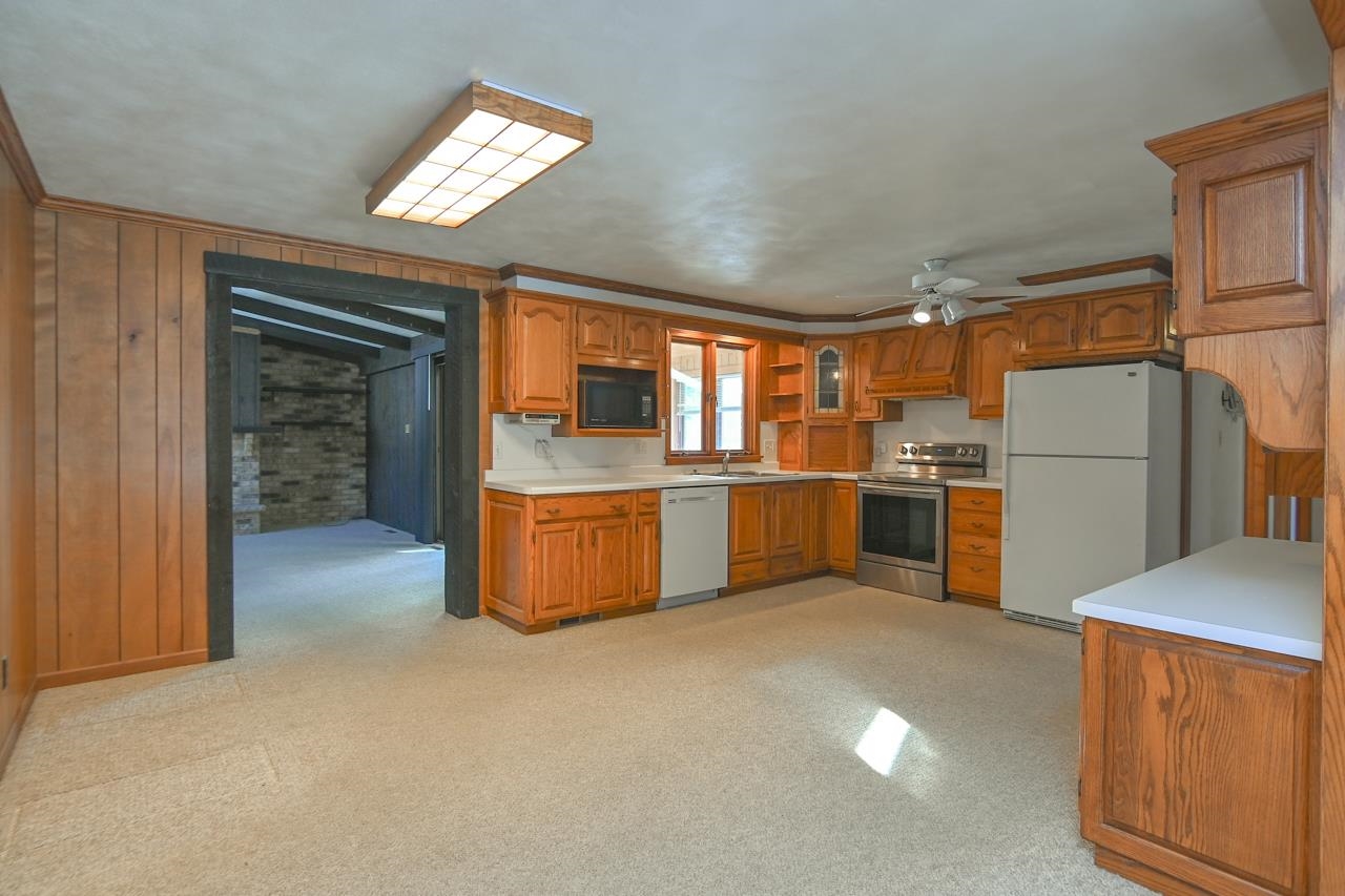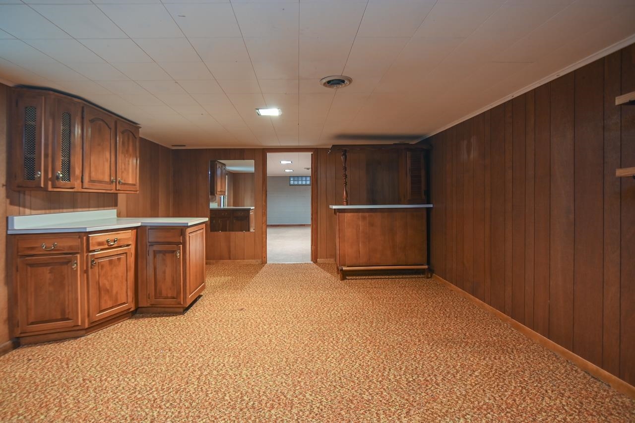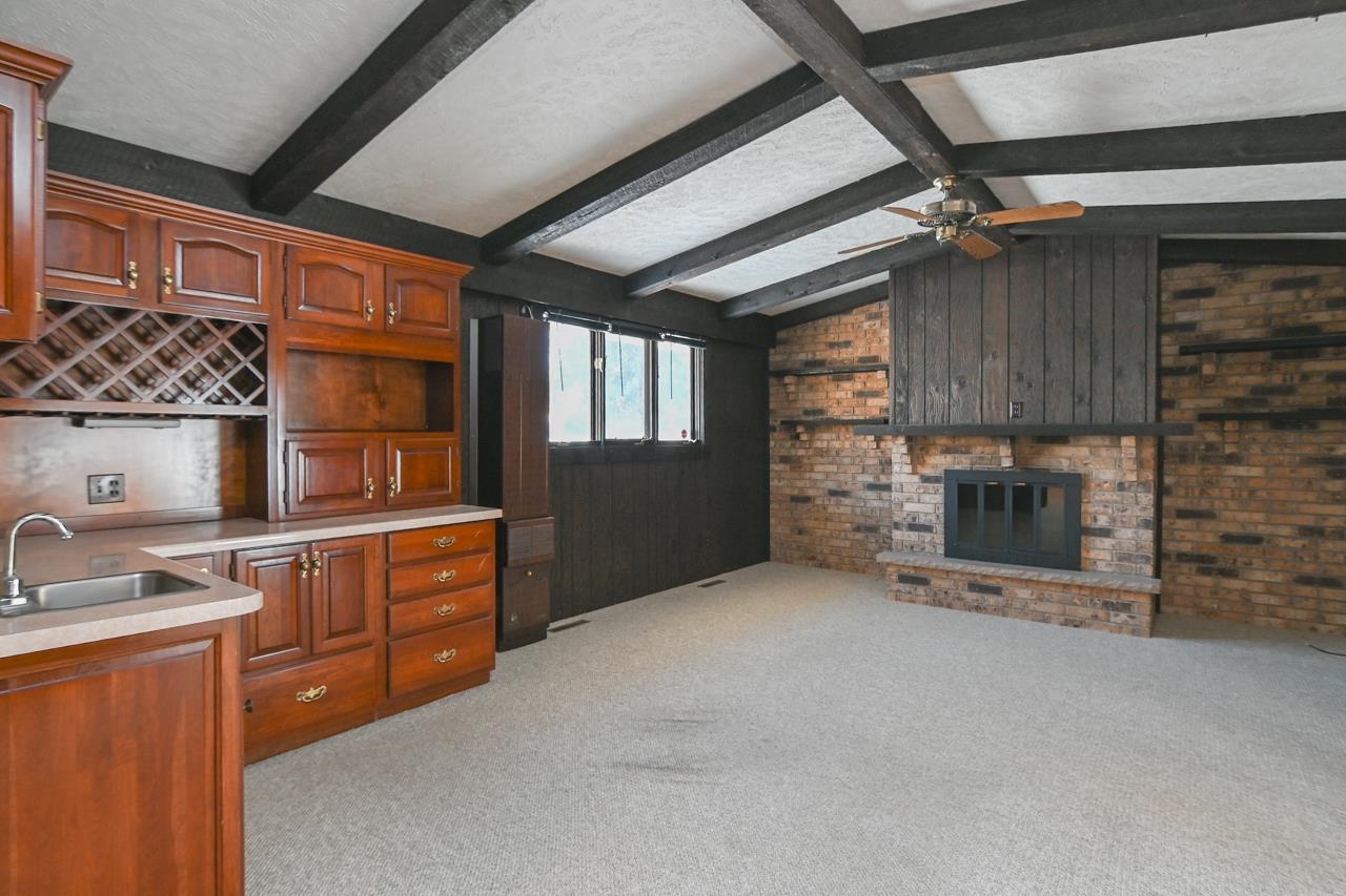 Step into this inviting, well maintained brick Mid Century Modern home w/ plenty of room to roam! This 3 bed, 2 bath home is made for entertaining, w/ a main floor family room off dinette w/wet bar area & fireplace, FR leads to a 4 season room, overlooking a fenced yard with a deck & shed. Kitchen has a plethora of cabinets & even a sm butler's closet. All 3 bedrms have wood floors, built-in cabinet in hallway & cedar closet. Downstairs you will find the 2nd bathrm, rec room & partially fin game rm w/2 painted block walls, unfin laundry area w/cabinets & a lg utility/storage area with shelving. Recent updates in the last 5 years incl new roof, furnace & AC (2022). This is an estate sale & condition of the fireplace is unknown. 48 hours for binding acceptance.