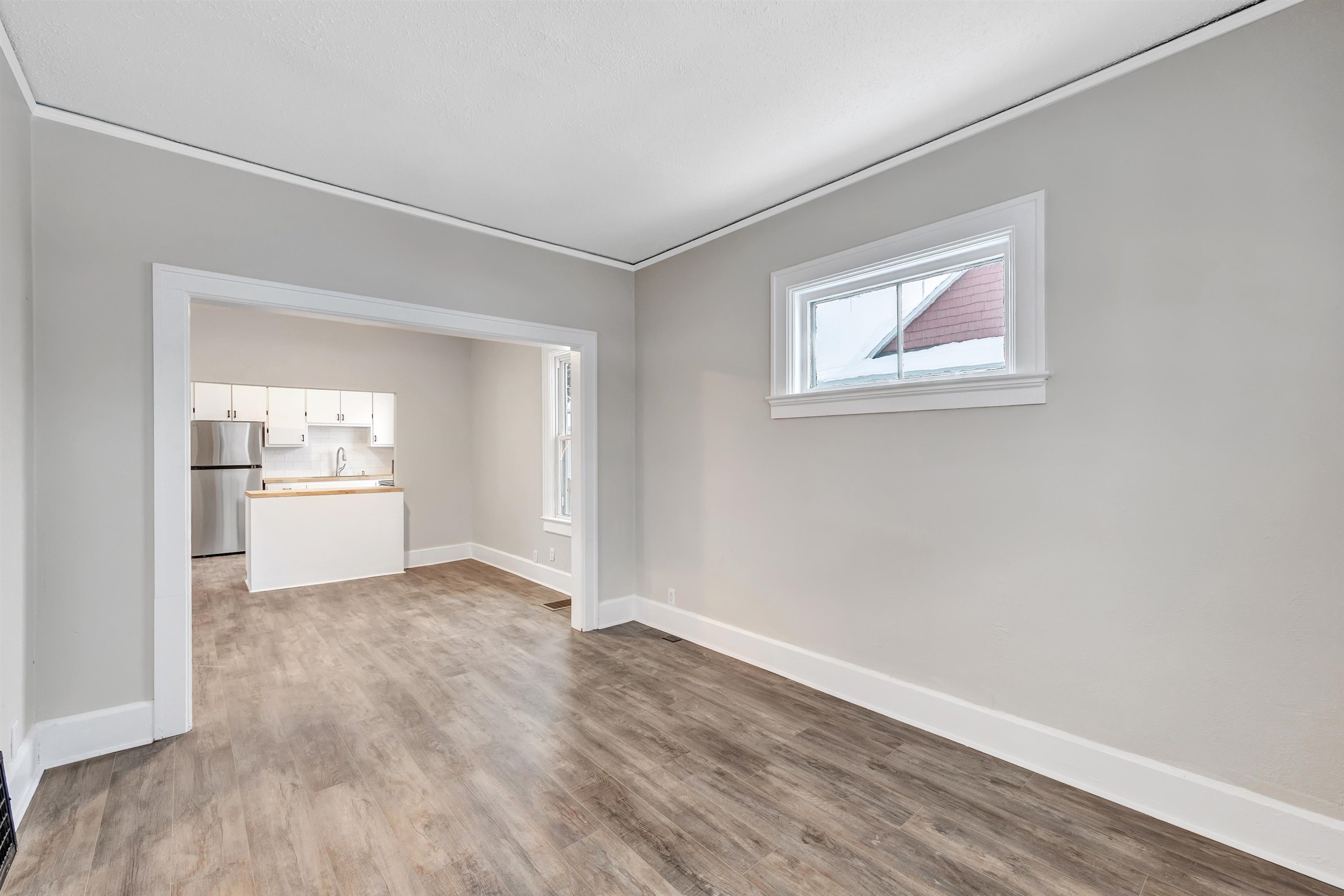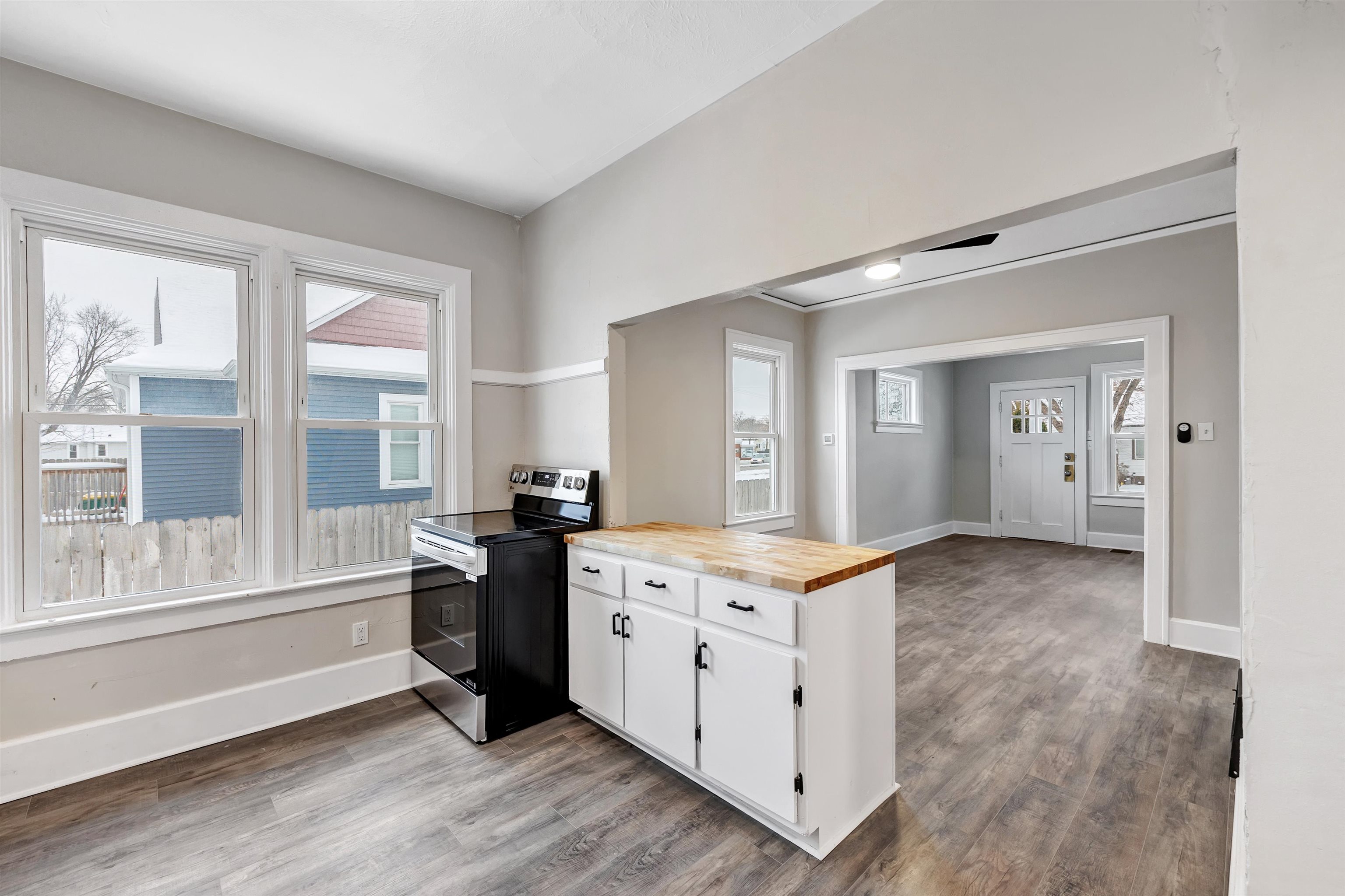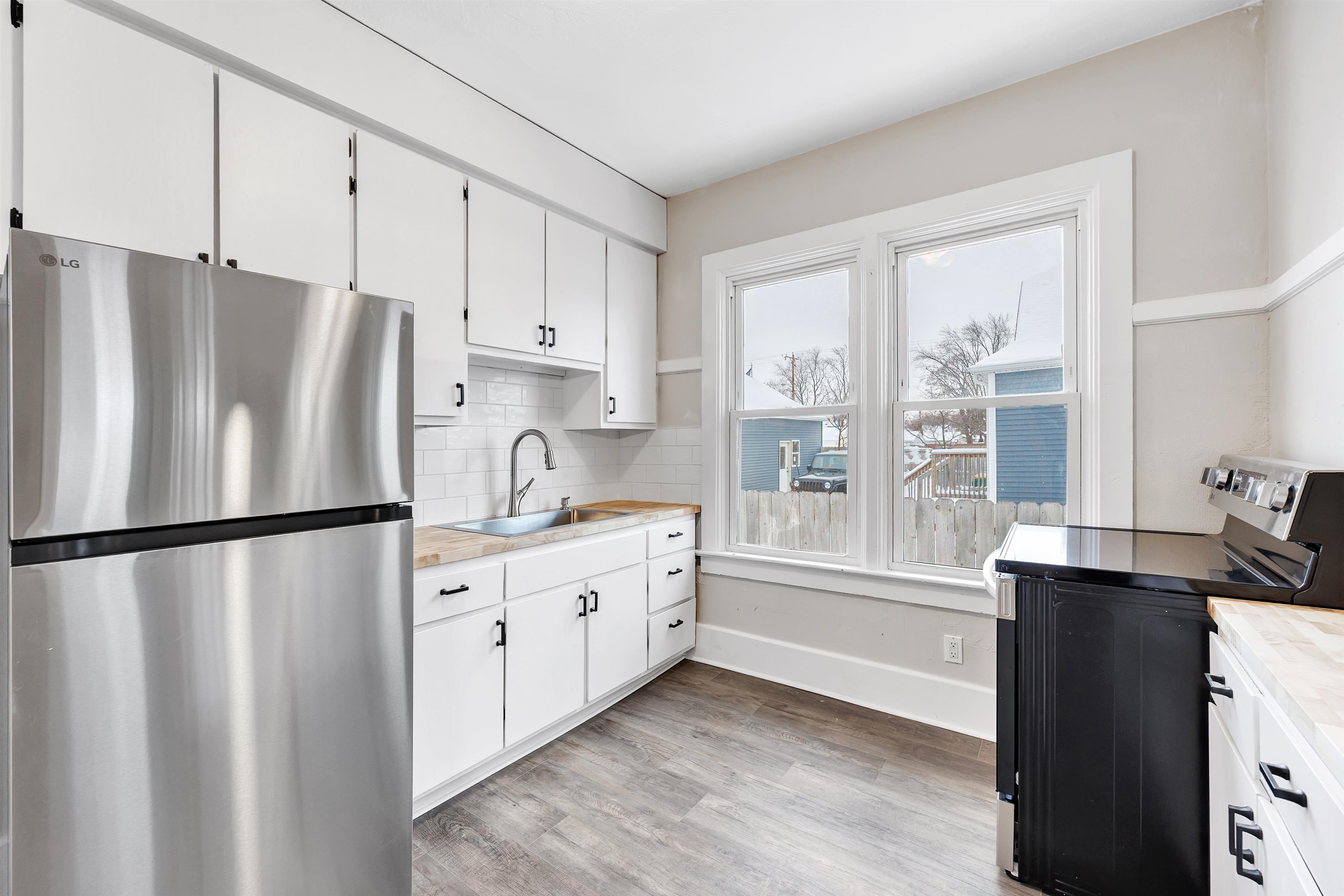 Two bedrooms. One bath. About 680 sq ft of updated, low-maintenance living. The kitchen brings the charm with butcher block countertops, a tiled backsplash, and new appliances that make the space feel fresh and simple to enjoy. The layout stays efficient with easy-care finishes and thoughtful updates throughout.