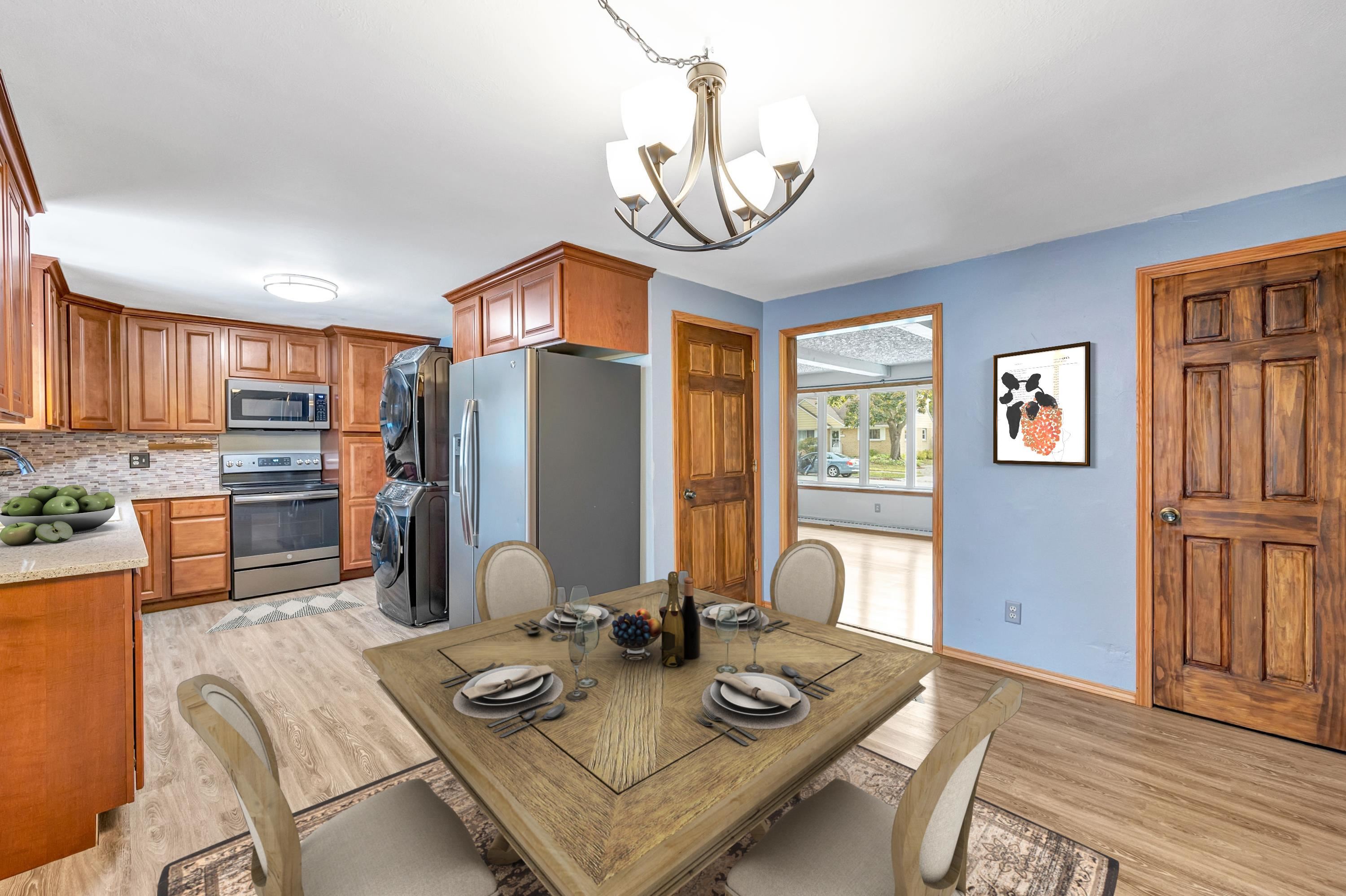 Well-maintained all-brick ranch in a prime Green Bay location near Lambeau Field and the Titletown District. Bright living area, a 9x9 screened room off the kitchen, fenced yard with two sheds, and an inground pool, great for relaxing or entertaining. The pool is closed for the season but has been professionally cleaned and cared for. Lower level features a spacious gathering area, bonus room with storage, sauna, and full bath. Laundry could be moved to the lower level if preferred. Home has been professionally cleaned and offers solid, comfortable living with great potential. Schedule your showing today!