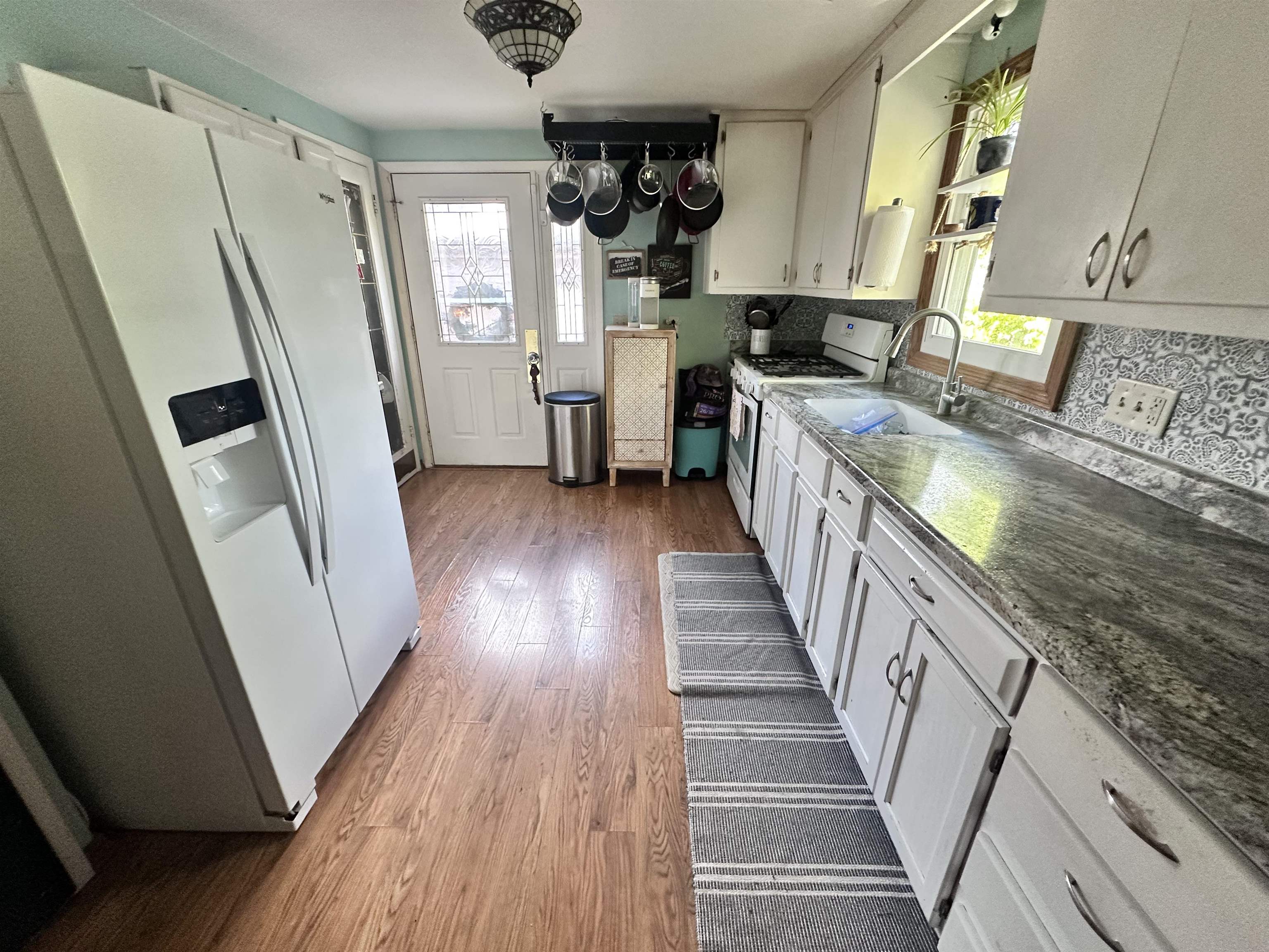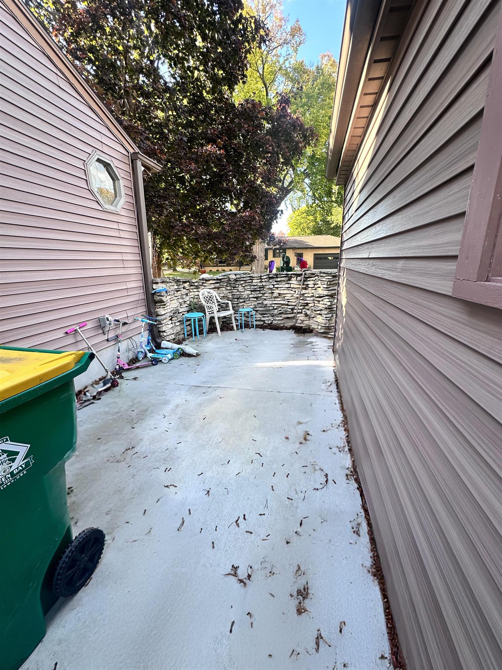 1 mile from Lambeau!!! Check out this great home walking distance to the Stadium District! Light & bright kitchen w/new countertops & backsplash along w/updated LVP floor. Spacious living rm w/hardwood floor & updated ceiling fan/light fixture. 3 spacious bedrooms with hdwd floors, full bath w/walk in shower which is handicap accessible. 2nd bdrm currently set up with 1st floor laundry which buyer could move back to basement if desired. LL w/oversized family room, stone gas fireplace, along with 2nd unfinished room great for office along w/tons of storage! Outside you will find all new concrete, new siding on garage, updated front porch steps & railing, gutter guards, privacy fenced yard & new pergola. See list of updates 1.5 car garage extra deep w/extra slab for parking.