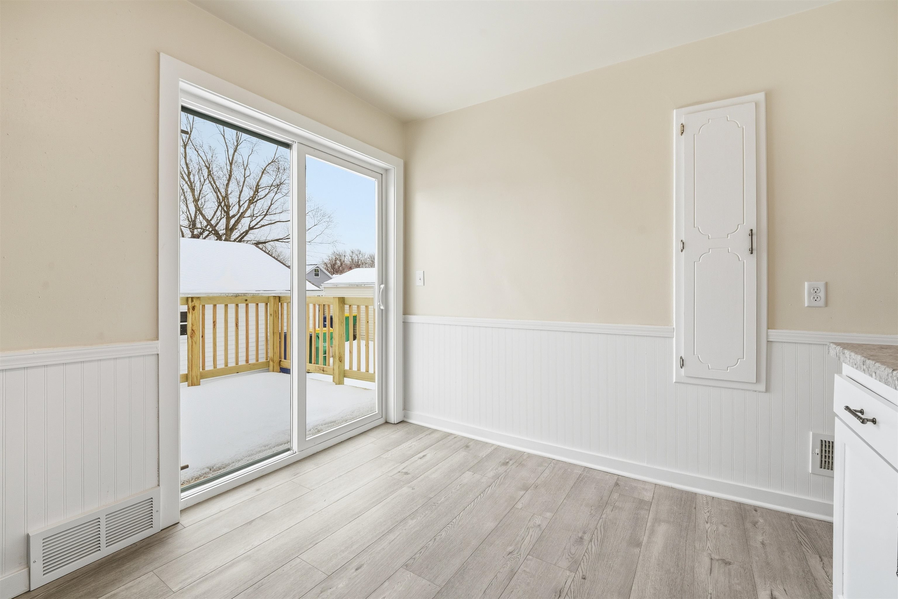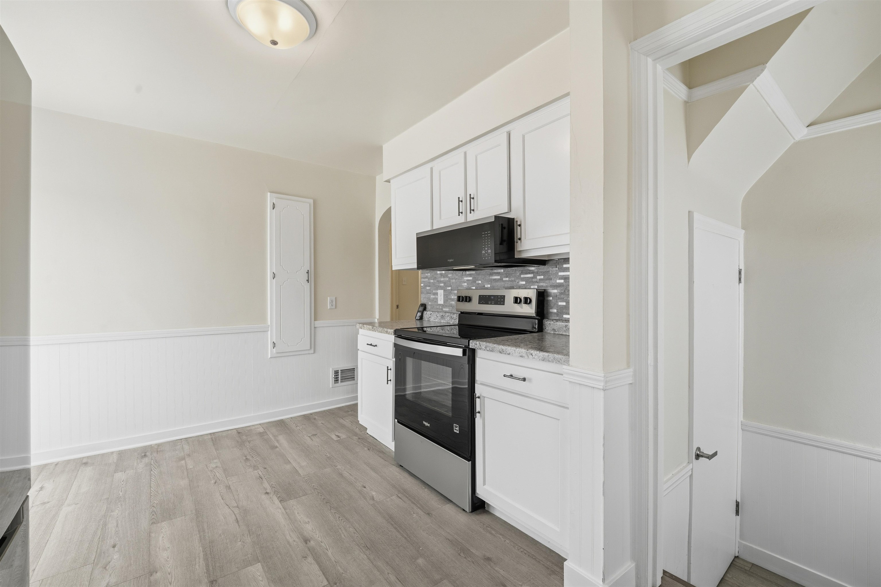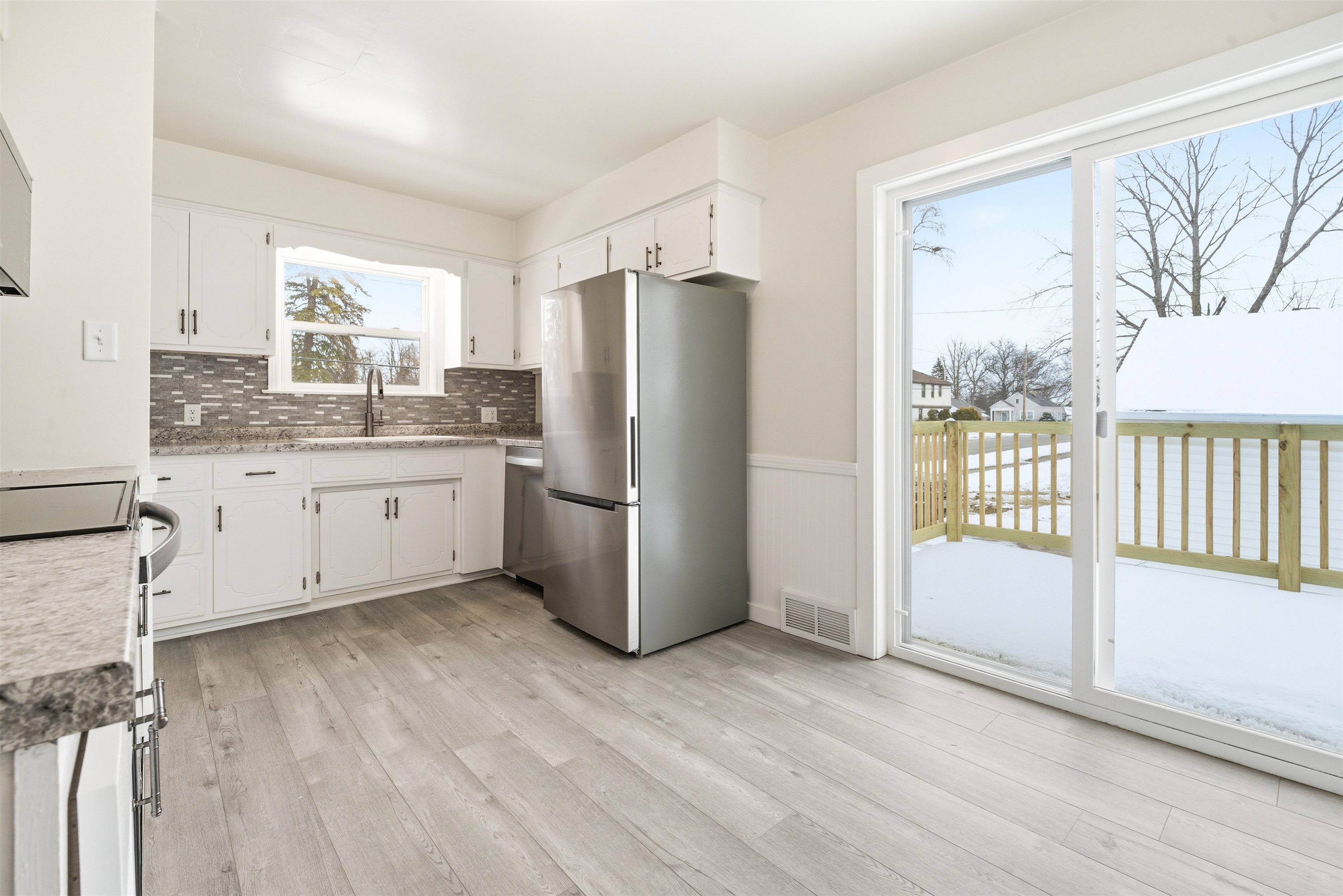 Oh my! You'll love this move in ready, beautiful cape-cod. New rich flooring, fresh paint, updated kitchen with stainless appliances, great windows, and new bath. Patio doors in the kitchen open to a fun deck. With an egress window already installed, the basement is ready for your plans. Big yard and a great location; close to shopping and entertainment.
