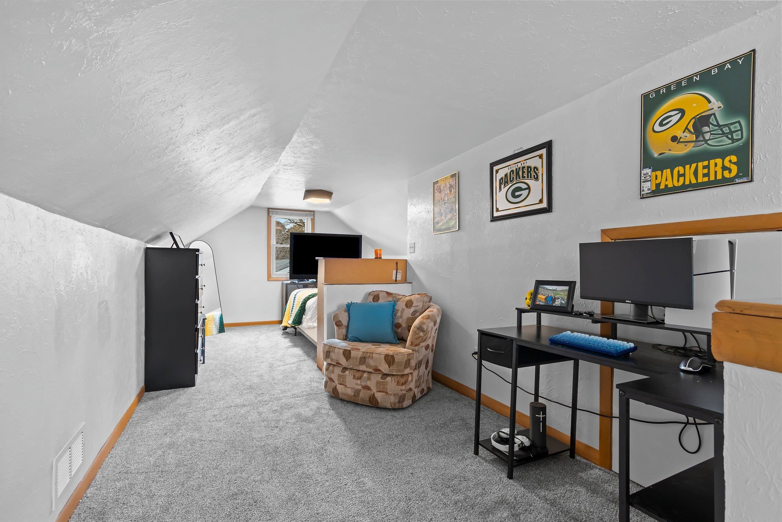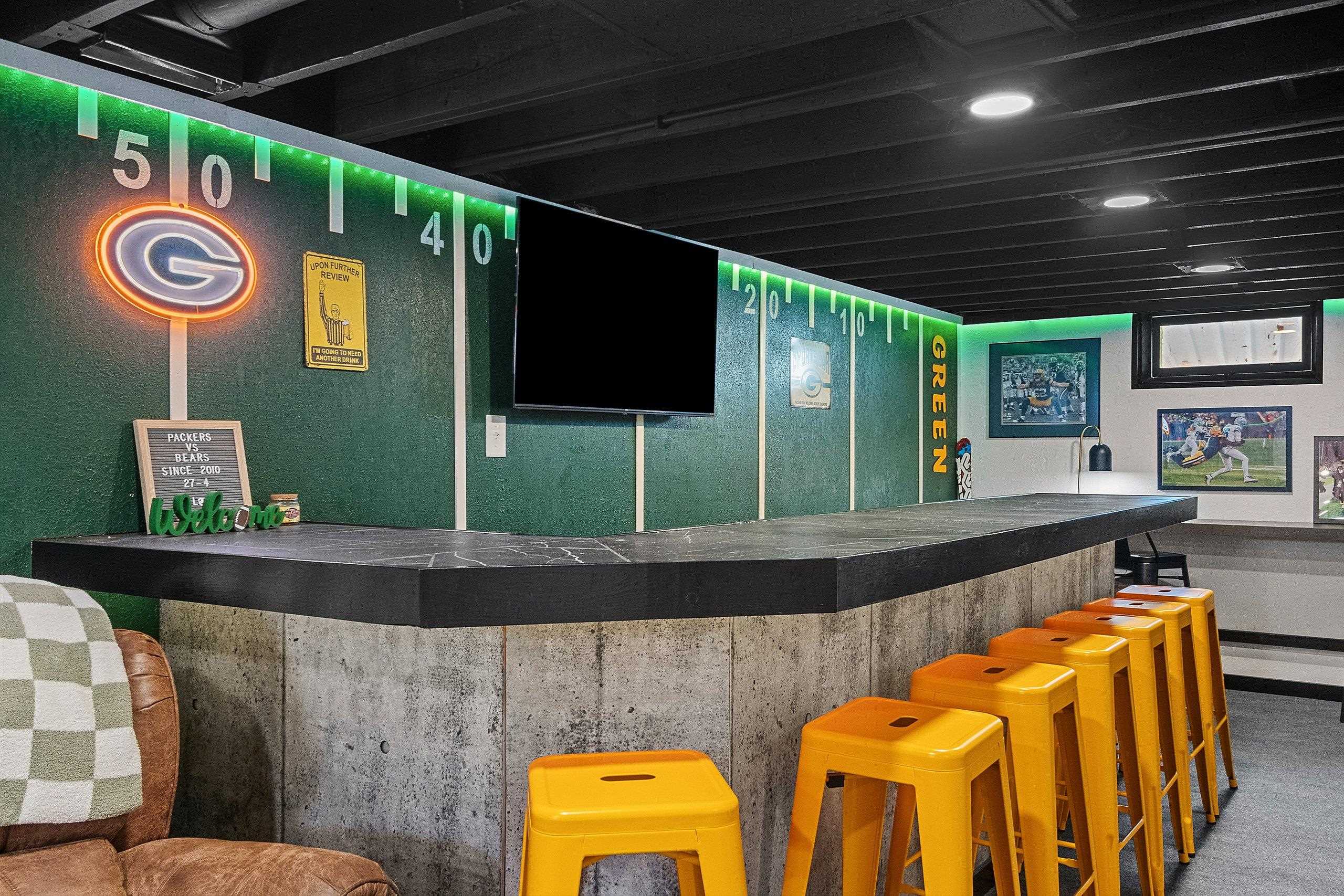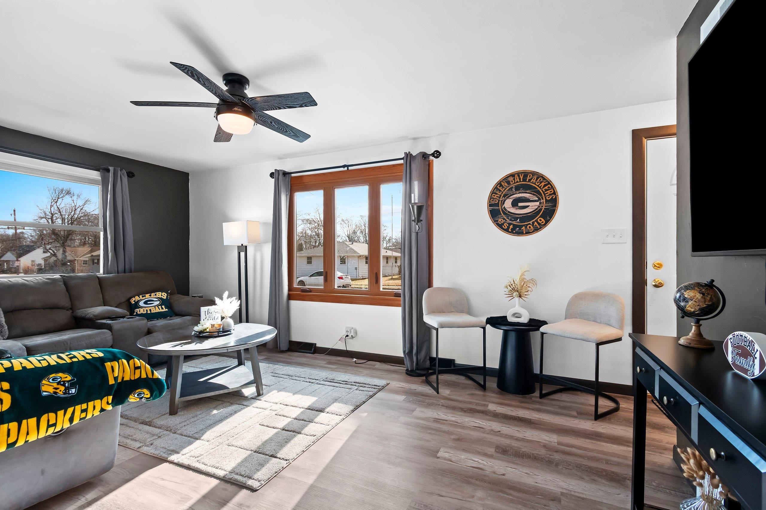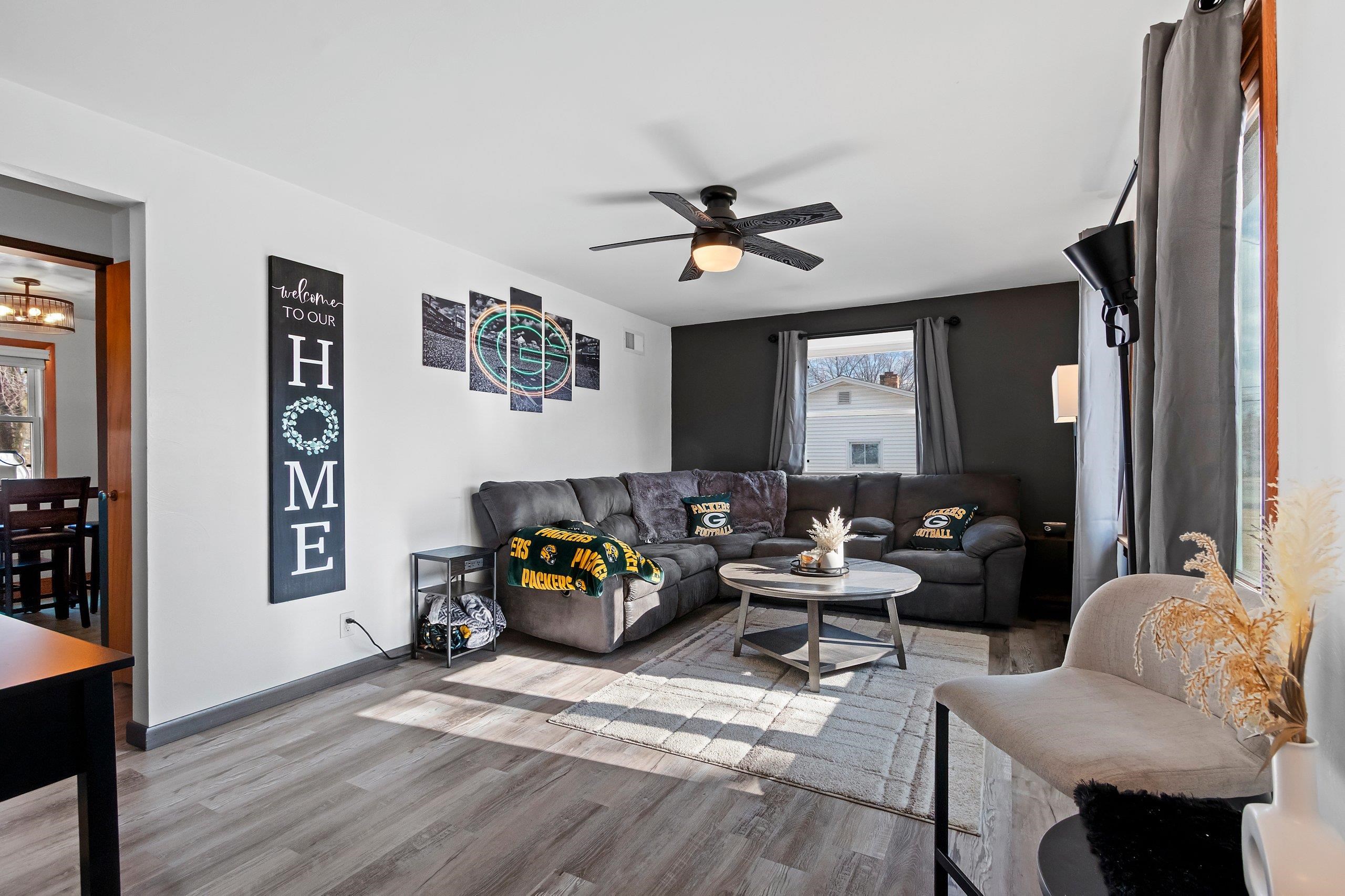 Experience the ultimate Green Bay lifestyle in this stunning 3-bedroom, 2-bathroom home located less than a mile from the iconic Lambeau Field. The interior has been completely transformed in 2024, featuring two modern bathrooms alongside fresh flooring and paint throughout. The living space extends downstairs to a newly finished basement (2024) designed for entertaining. Featuring a custom bar and a spacious living room area, it’s the ultimate hangout for fans or a cozy retreat for movie nights. Major updates provide total peace of mind, including a new roof (2022) and water heater (2019), finished basement with big rec room (painted floor joist ceiling) and much more. Seller is a licensed agent. Whether you’re looking for a primary residence or a high-end rental, this is move in ready.