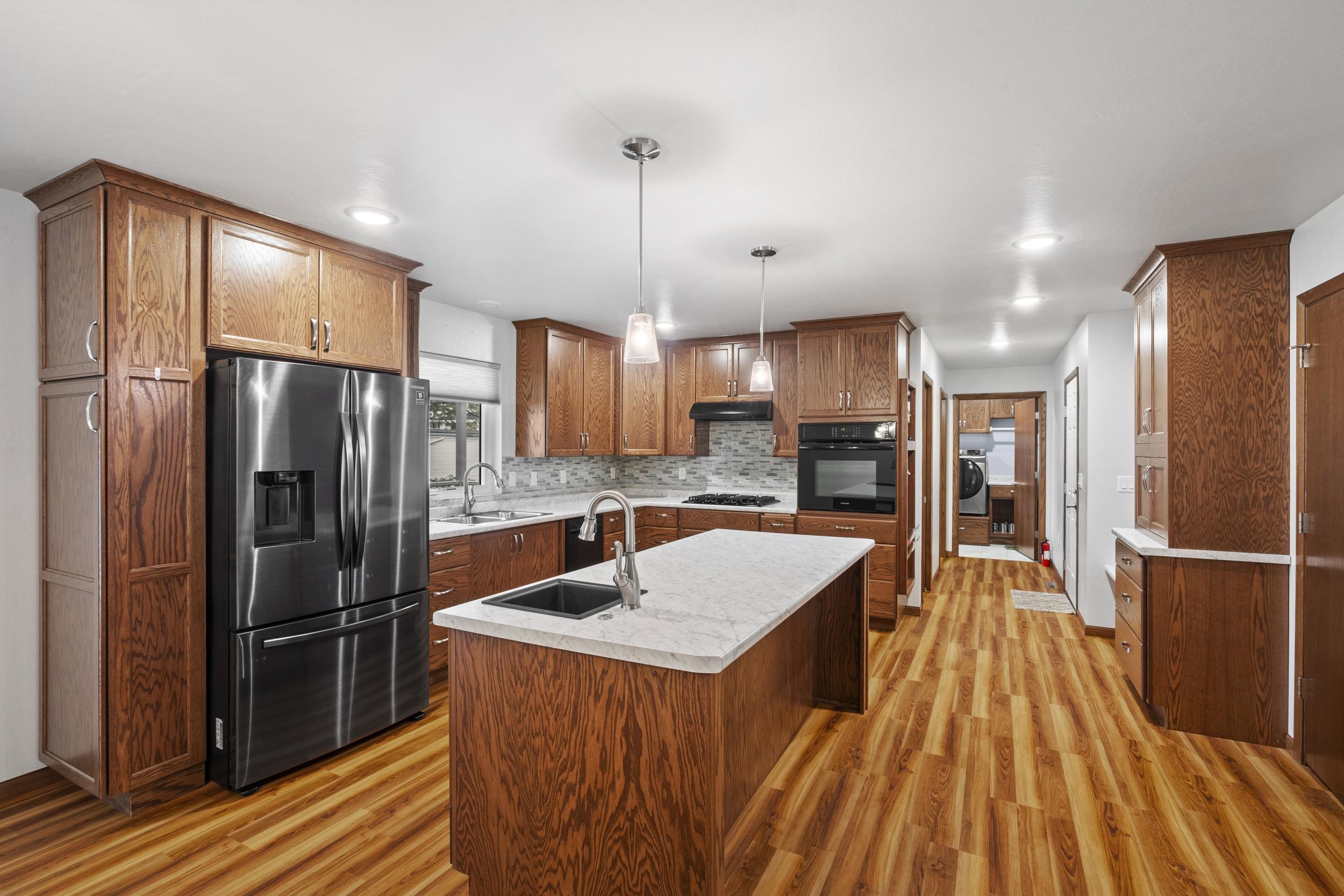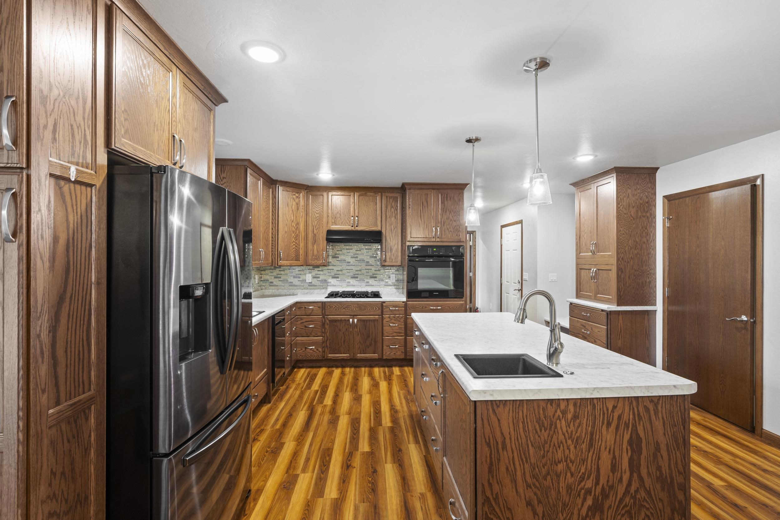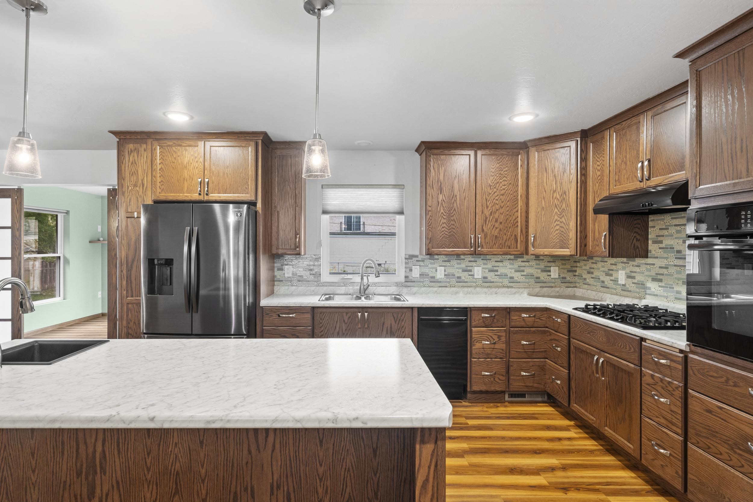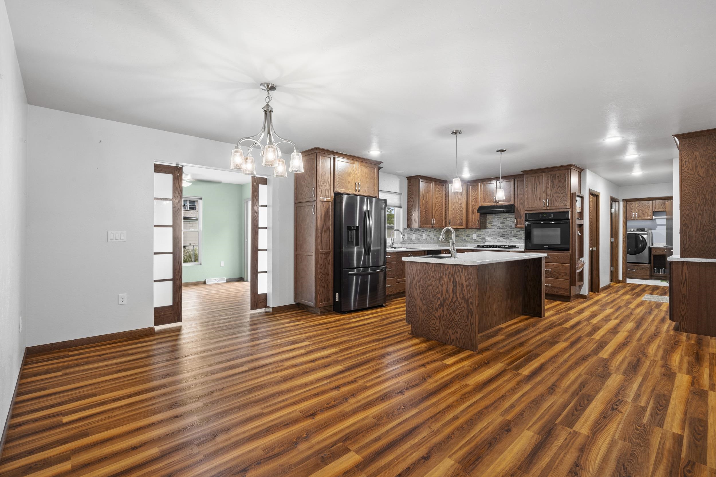 Welcome to this exceptional 4 bedroom, 3.5 bath home offering nearly complete ADA accessibility and flexible living options. The main level features a spacious master suite, full kitchen, laundry, and access to the attached 2-car garage. A second full kitchen on the lower level allows for extended living or potential duplex conversion, with additional laundry hookups and unfinished space for future expansion. Outdoor amenities include a large deck, greenhouse and fully fenced backyard. A versatile property designed for comfort and convenience. Lower level also has electric heaters
