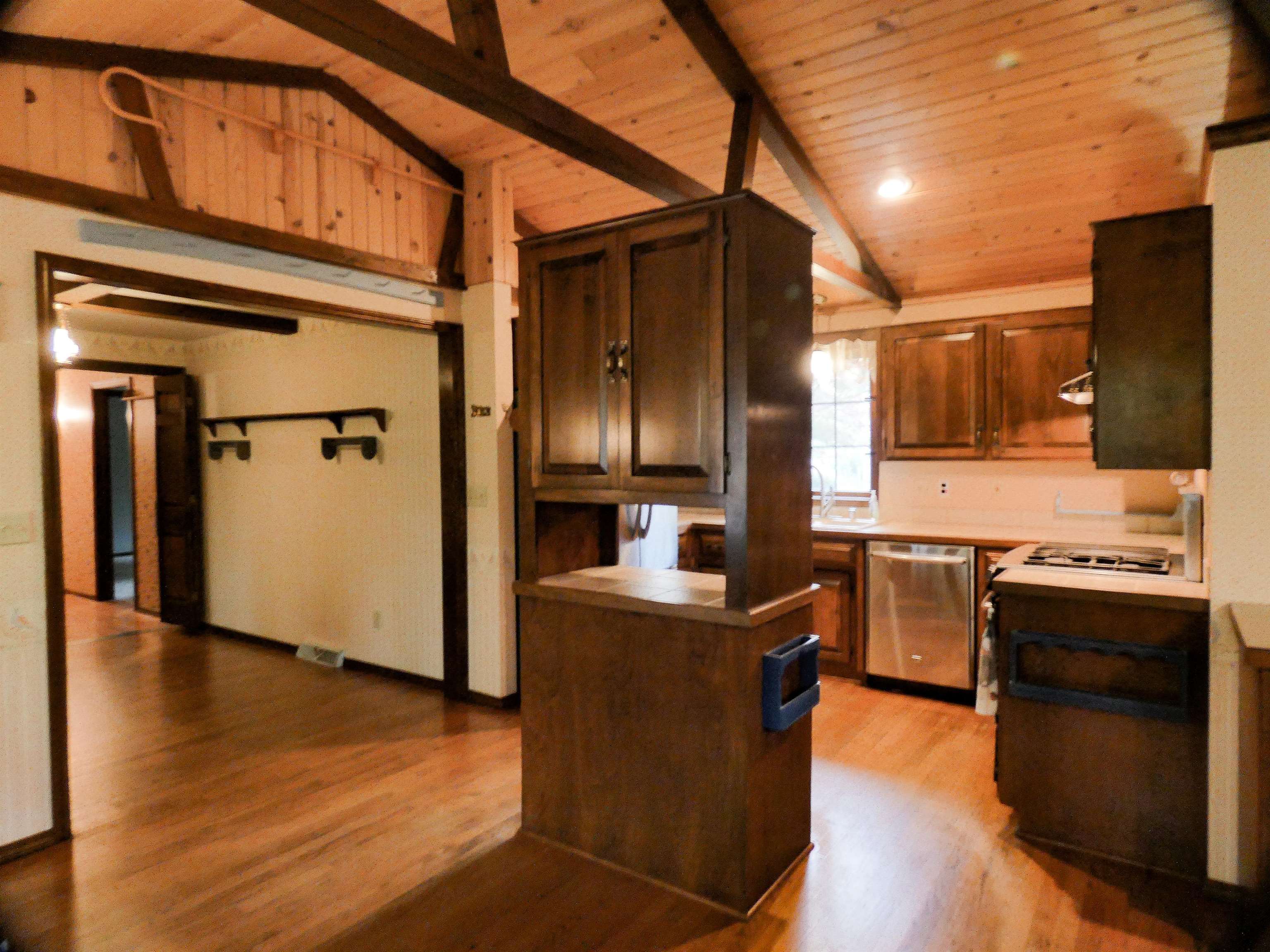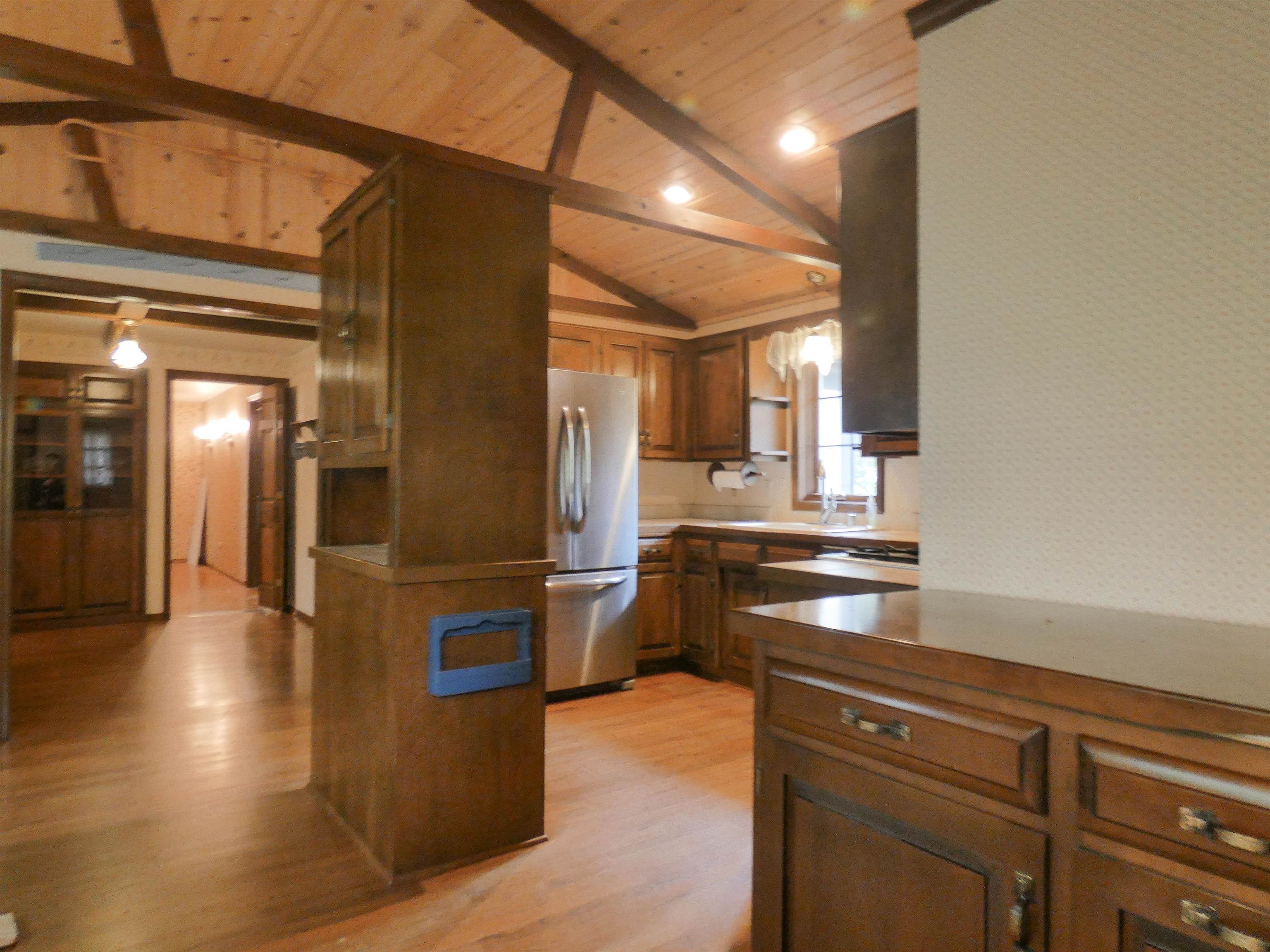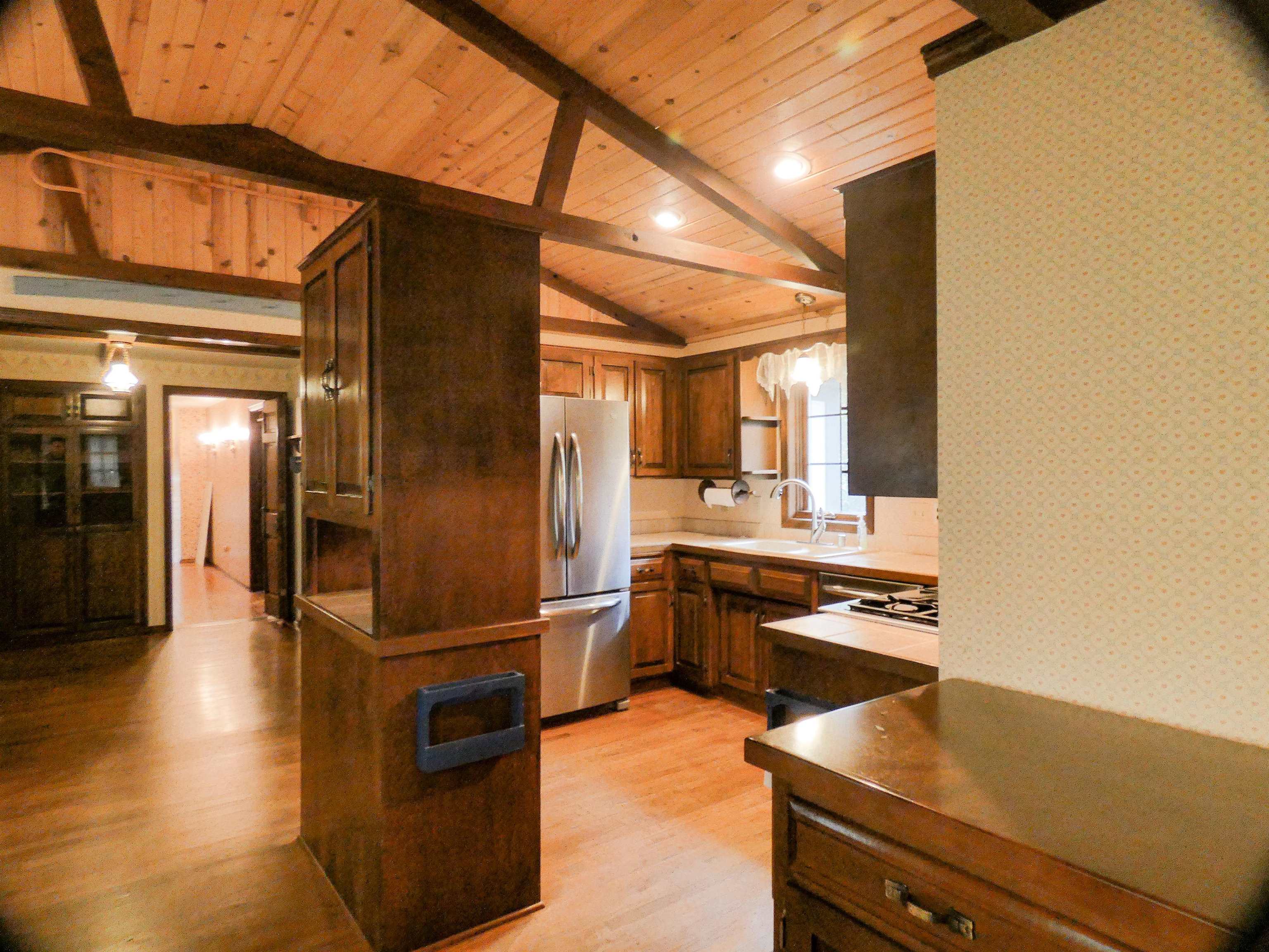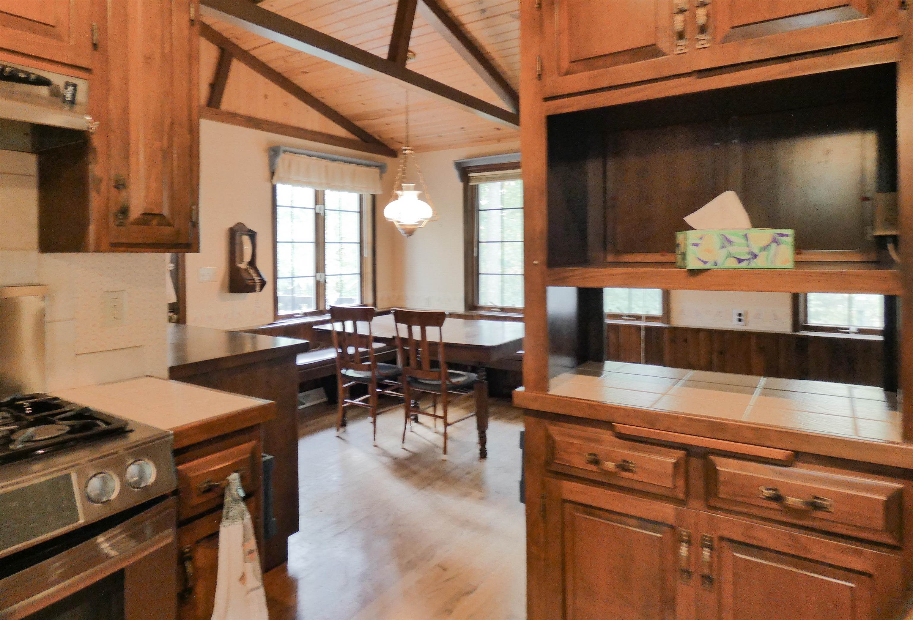 Parkwood Estates. Chalet Style home w/ wooded lot, pathways, potting shed and endless landscaping possibilities. Many Flexible use rooms. Center room adjoins the Kitchen/dining and formal dining... great for office nook. Upper level Loft has walk-n closet for office or possible 3nd bedroom. Main floor 3-season Room could be an art studio with inspiring backyard views. Lower level has Rec Rm/Bar area w/ Wood Stove, cedar closet, storage room, Craft Room and Utility Room. Property has been pre-inspected.