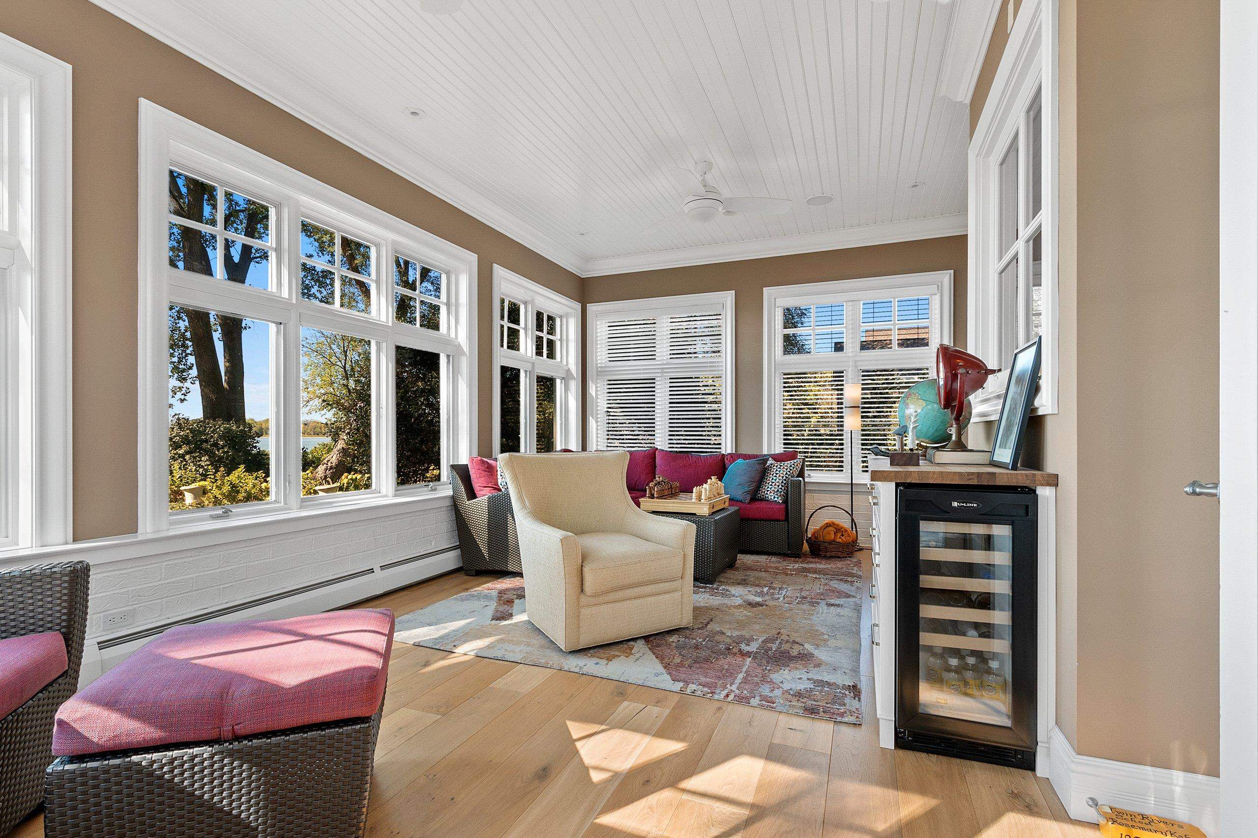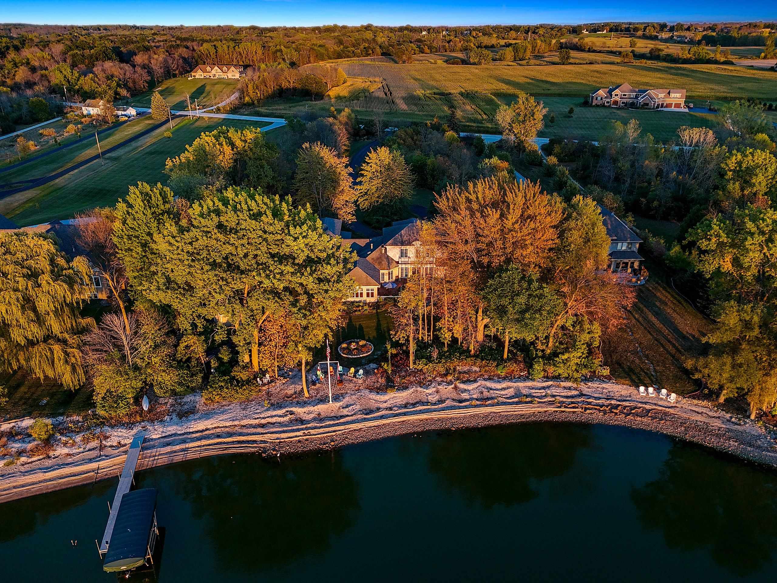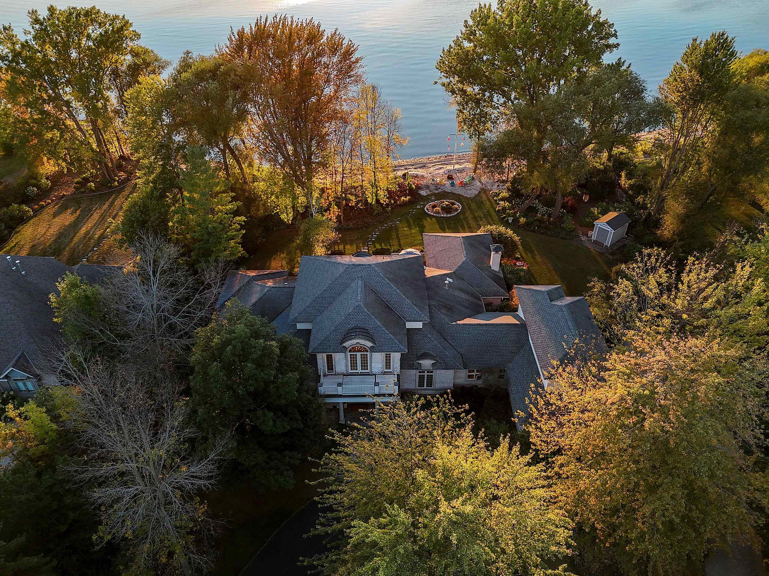 Rare property on the western shore of lower Green Bay. This immaculate home sits on 200ft of sand beach & 2.99 priv acres! Over 6400 sqft interior features 4 bds & 5.5 bths, each bd is its Own Suite! Split bd, 1st flr spacious mstr w/WP tub, wk-in shwr, lrg wlk-in closet. Great Rm area boasts coffered clg, flr-to-ceiling stone gas FP, Lux kitchen incl granite c-tops, custom cabinetry, lrg breakfast bar & cooking island, pantry w/2nd refrigerator & high-end applncs. Built & renovated by DeLeers Const. In-flr heat 1st flr & garage. Relax & enjoy beautiful sunsets in the 4 seasons rm, patio or evening bonfire overlooking the Bay. Highly desirable shoreline protection from Point au Sable Peninsula natural area offers opportunities for boat/lift & unparalleled bird viewing.