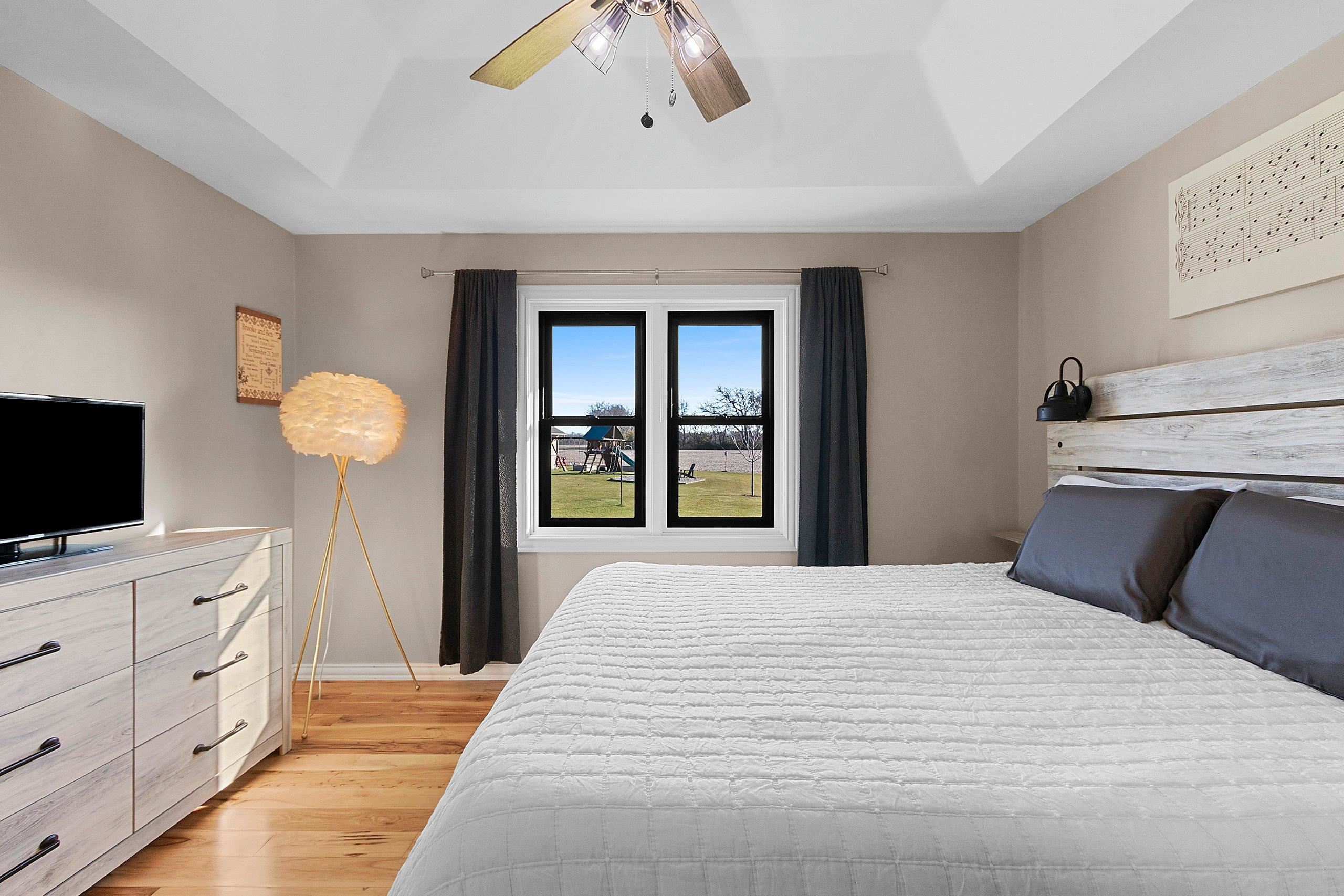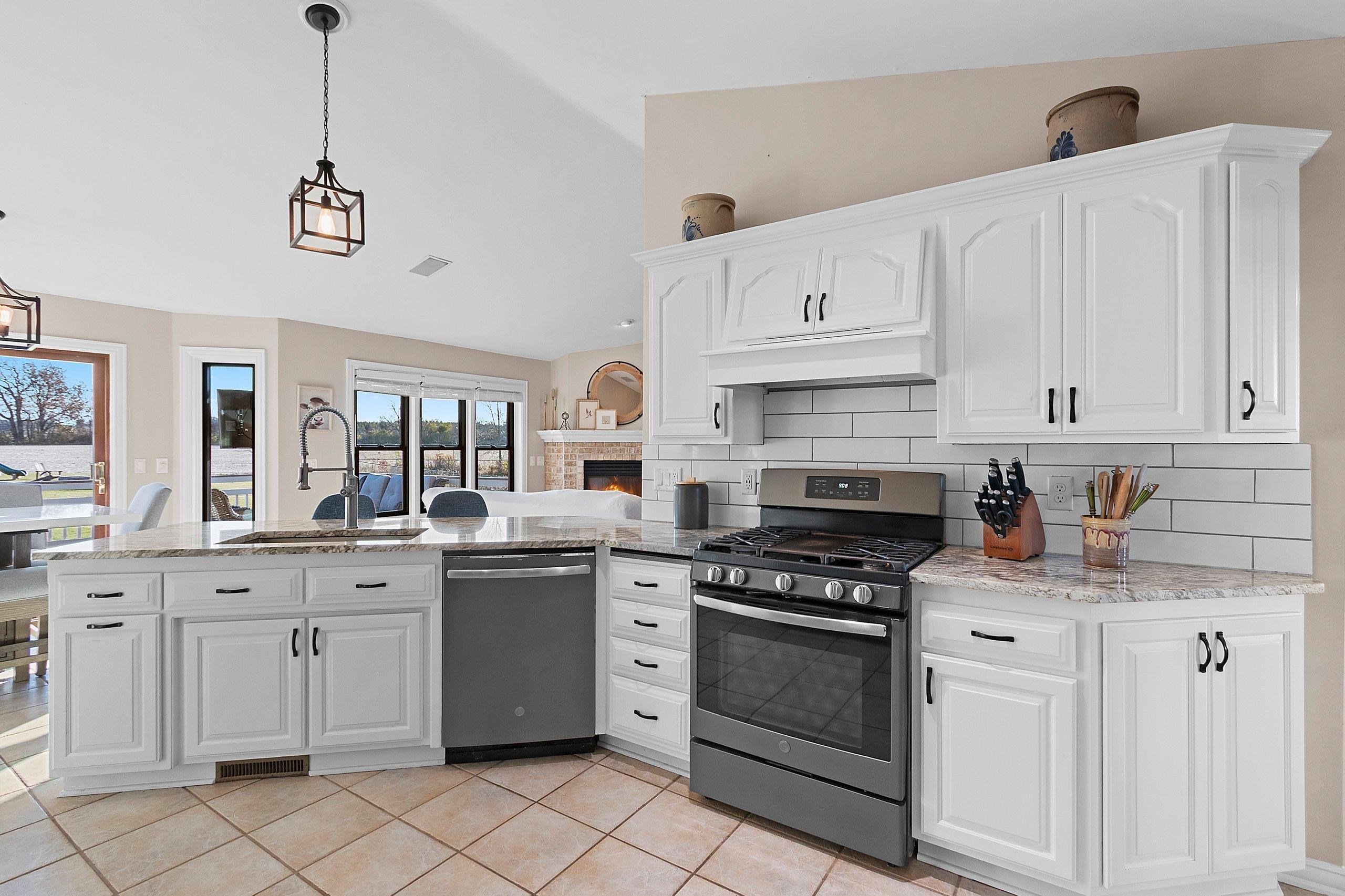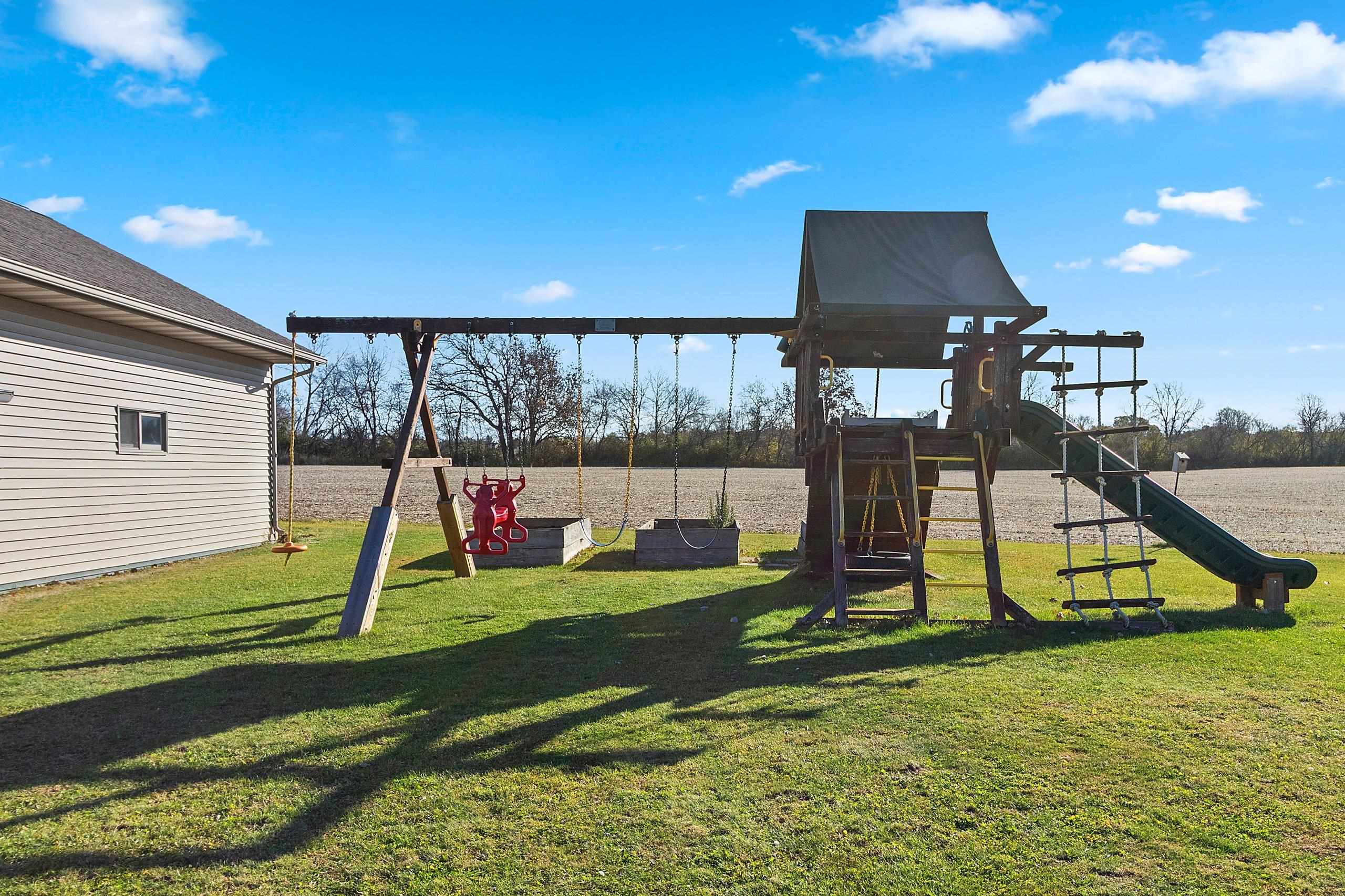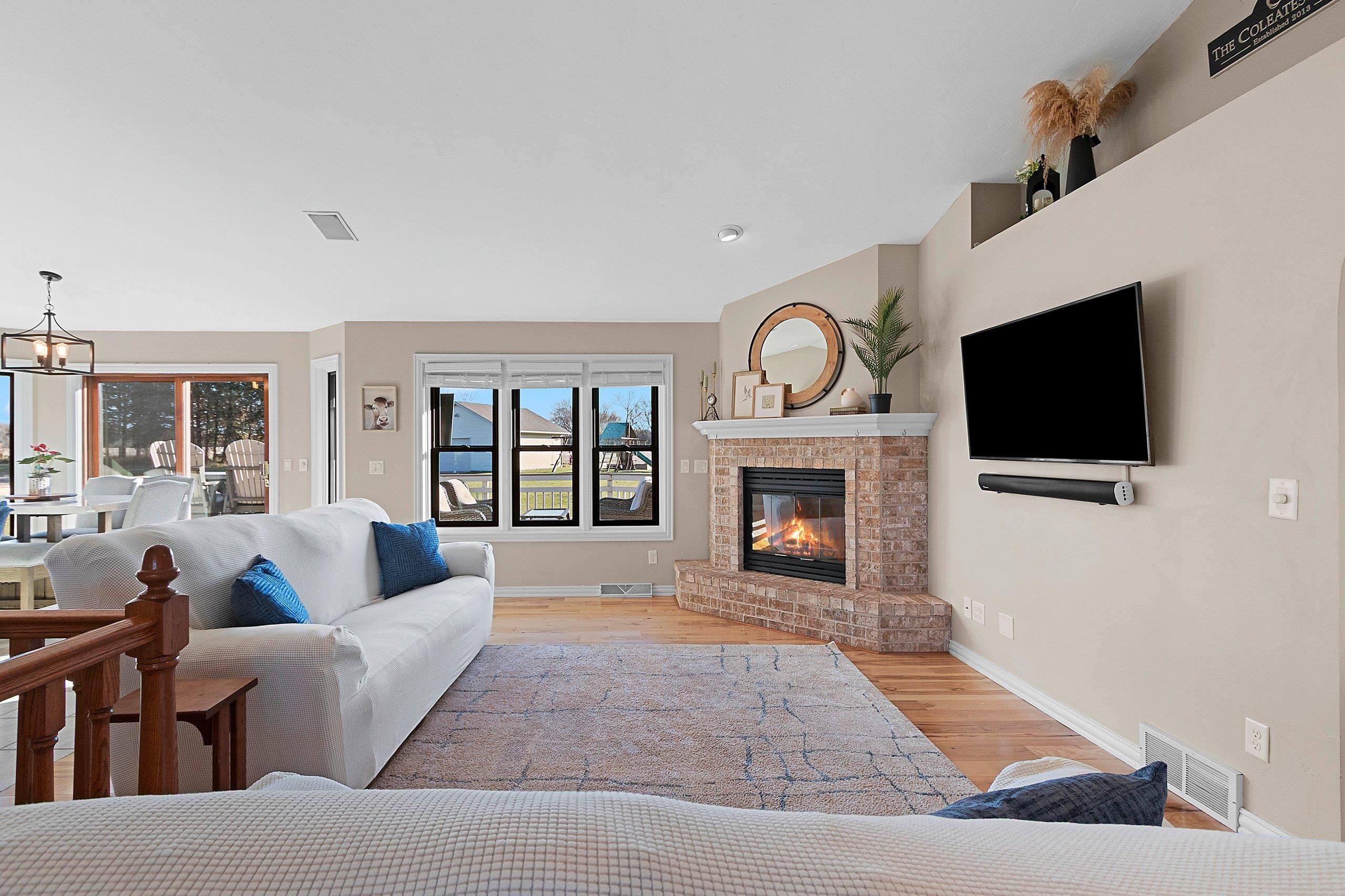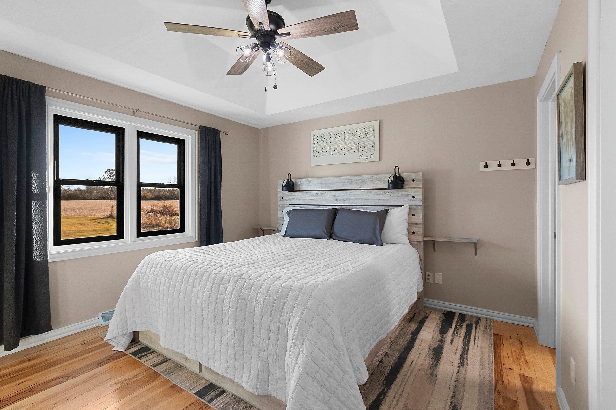 Stunning open-concept home set on a 1-acre lot offering the perfect blend of convenience and tranquility. Enjoy sunrises over the backyard and sunsets across the bay. The main level features a primary suite with a walk-in closet and private bath, plus two additional bedrooms and laundry room. The airy kitchen and dining area flow seamlessly to the deck and patio—perfect for entertaining. The finished lower level includes a family room, bedroom, full bath, office, and bonus room. Enjoy a heated 3 stall attached garage with basement access, plus a heated 2.5-stall detached garage for extra storage or workspace. Surrounded by open fields and visiting wildlife, this home offers peaceful privacy with bay views just minutes from town amenities. Close proximity to Eagles Nest Boat Launch