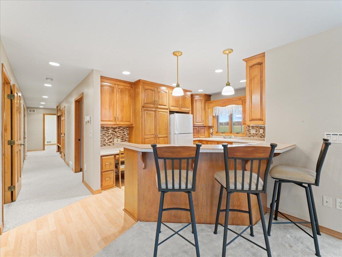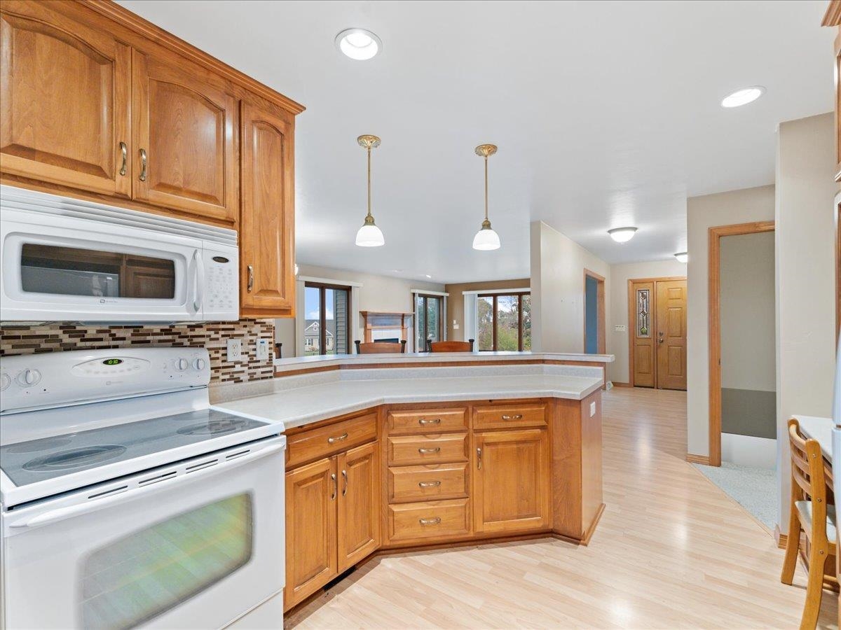 Experience comfort and quality in this beautiful 3-bedroom, 2.5-bath brick-front home near Nicolet Drive with scenic Bay views. The spacious layout features a warm gas log fireplace, fully applianced kitchen with rich wood cabinetry, and a convenient breakfast bar. Enjoy a generous 3-stall garage for vehicles and hobbies, plus a backyard storage shed. The unfinished basement provides ample room for future expansion. Well-maintained landscaping and a peaceful setting near the Bay make this property the perfect blend of function, style, and location.