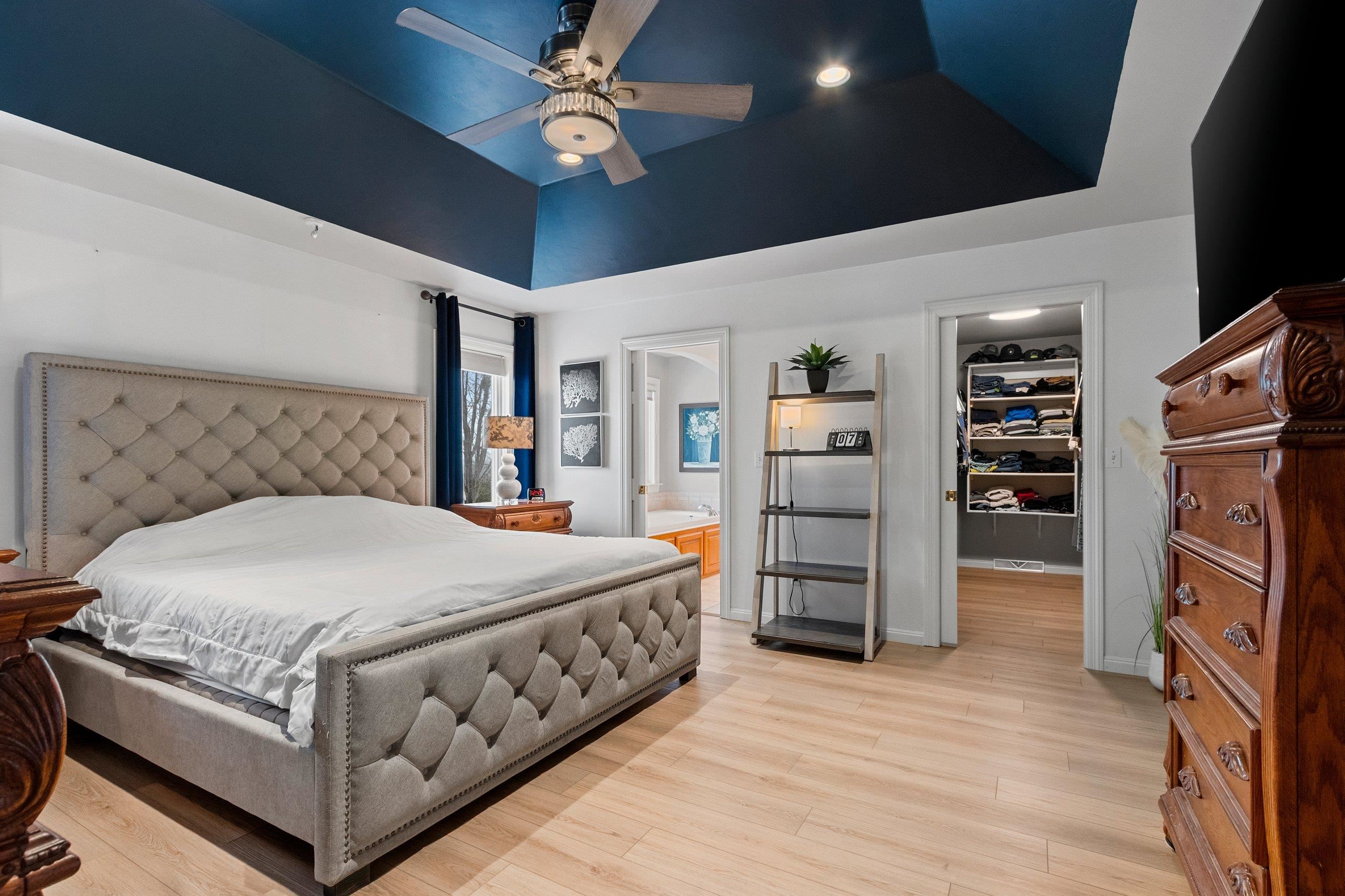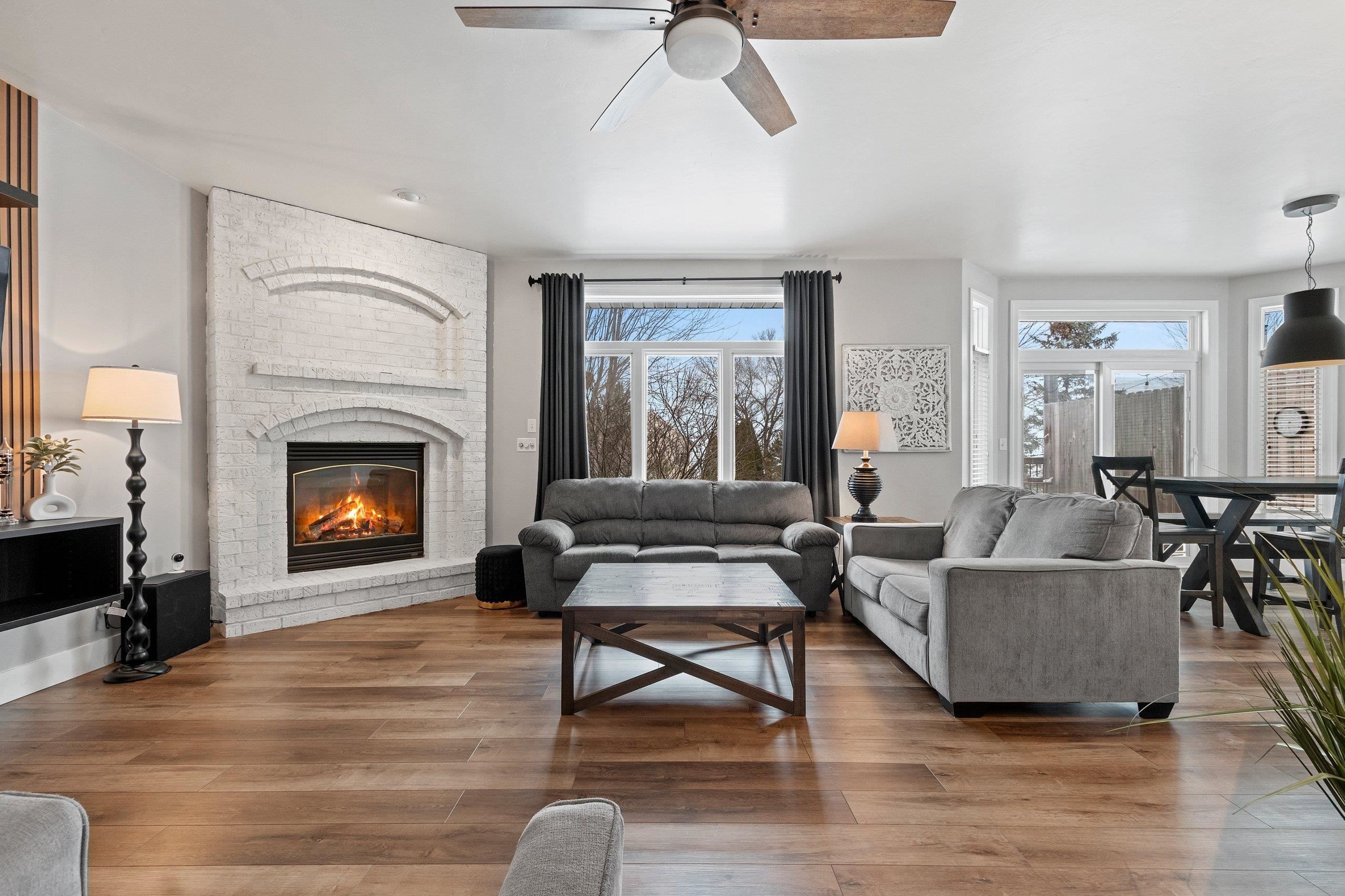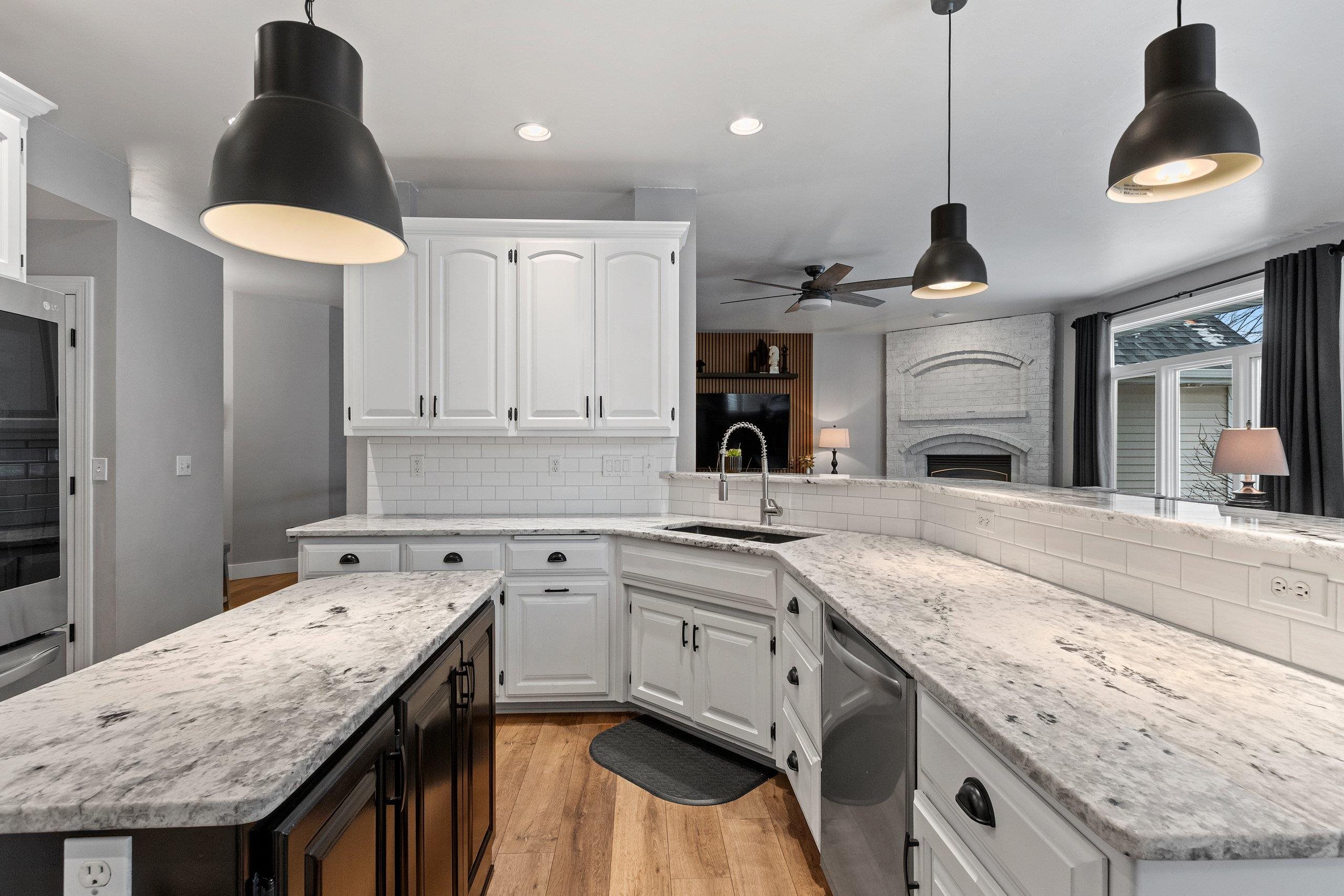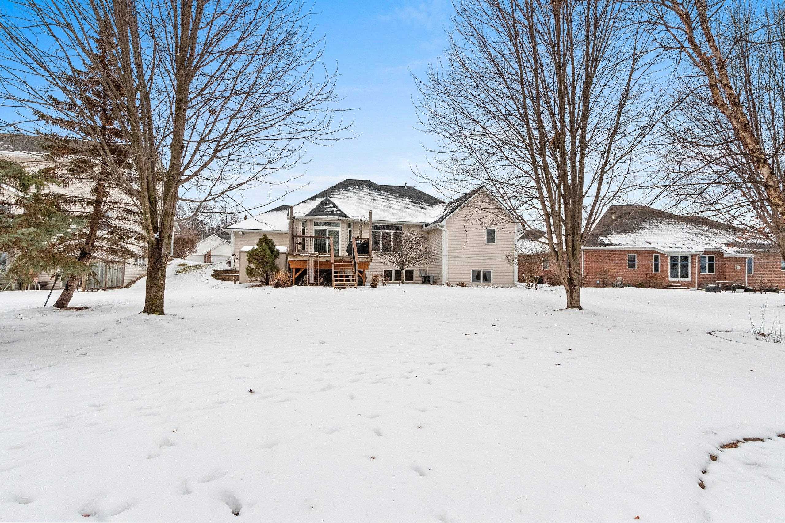 You will fall in love with this beautiful custom-built four-bedroom home with two fireplaces. Walk into the foyer and be impressed by the open-concept living room and kitchen, with fantastic light from the numerous windows/patio door. Updated LVP, lighting, white cabinetry, granite, appliances, paint, carpet, fireplace, etc., will impress you. Pantry, FF laundry, 6-panel doors, base access, egress windows & wet bar in the basement, and 4th bedroom/office leads for one to enjoy the extra space while still having great storage. The Main suite is large with a tray ceiling, a walk-in closet, a shower, and a bath. Large kitchen island and cabinet space. Updated siding, roof, and gutters. Private deck and landscaped yard with a shed. Pride of ownership! Call today for your private showing