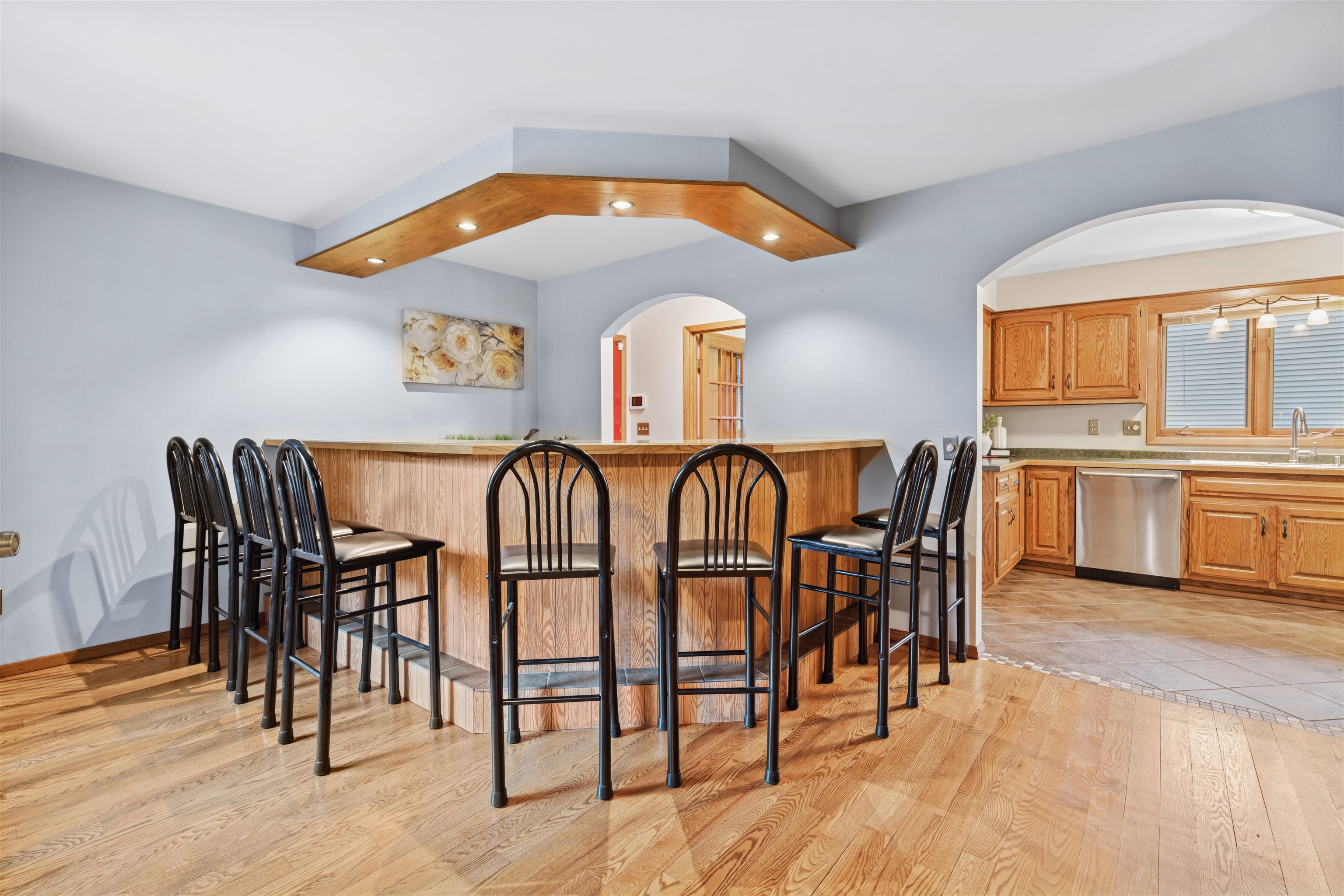 Beautiful walk-out condo in Bay Highlands! Enjoy a brand-new roof, gutters with guards, new deck and almost all new windows. The open layout features hardwood floors, a formal dining room currently used as a bar and a spacious living area flanked with gas fireplace and totally private wooded backyard. Plenty of storage in the kitchen w/ SS appliances, convenient main-floor laundry includes washer and dryer and half bath. Upstairs offers 2 large BRs, including primary with balcony and ensuite with dual vanities and whirlpool tub. The LL has a family room, 3rd BR and is stubbed for a future full BA.