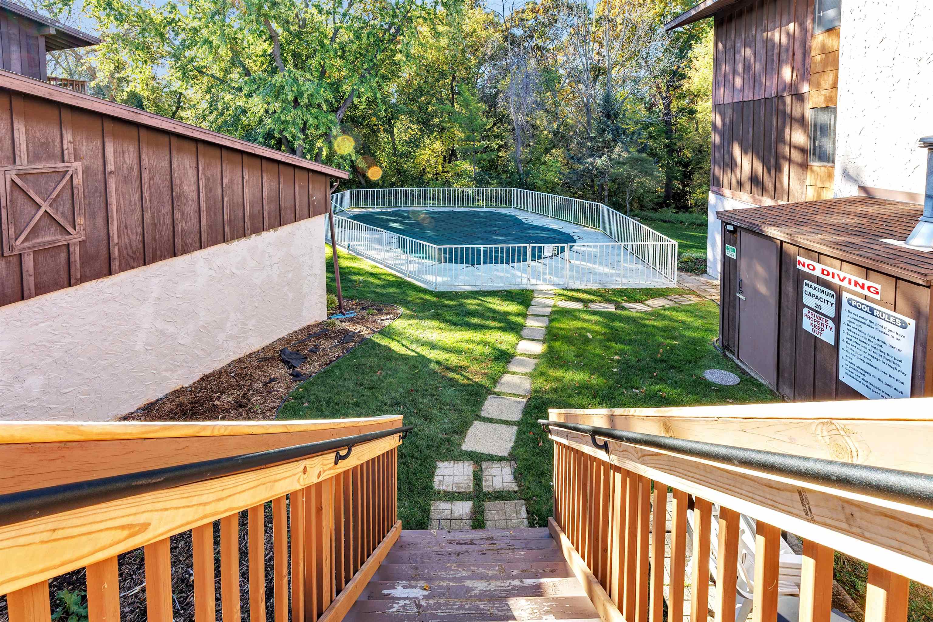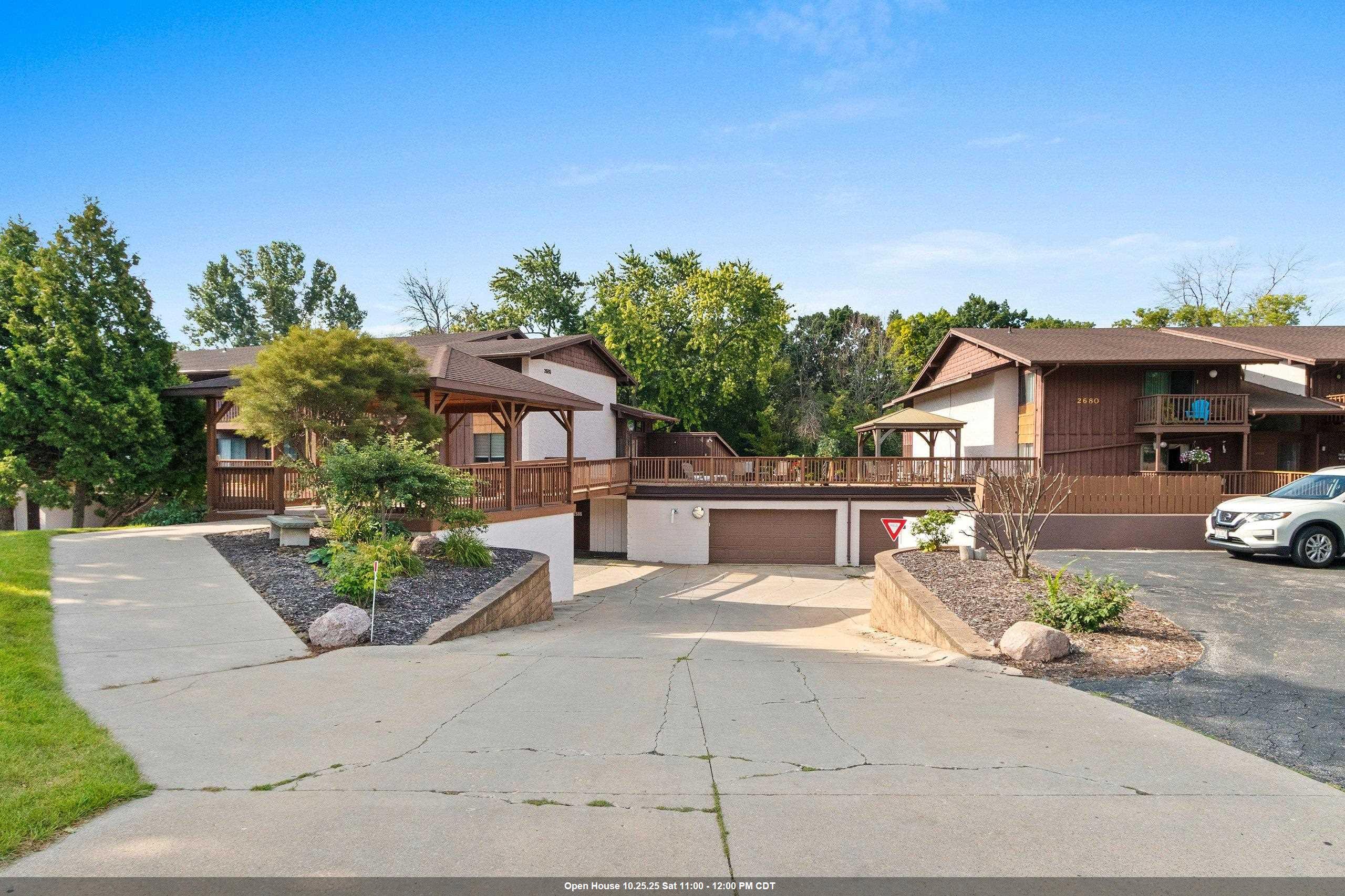 Exceptionally maintained FIRST floor condo with a detached 1 car garage space! The only unit in this whole building with NO unit above! Boasting many updates throughout including newer carpet, laminate flooring, quality cabinetry with soft close drawers, top notch doors & trim, custom pantry, new counter tops, new AC units, to name a few. A spacious open floor plan with the comfort of home, this unit is equipped with 2 large bedrooms including a Primary Suite with walk-in closet and it's own half bath! Step outside to your private deck with a view of the quiet wooded landscape and only steps away from the outdoor pool. Private storage also included. Situated conveniently close to Festival Foods, other shopping, and quick access to HWY 41! This unit is surely a must see!