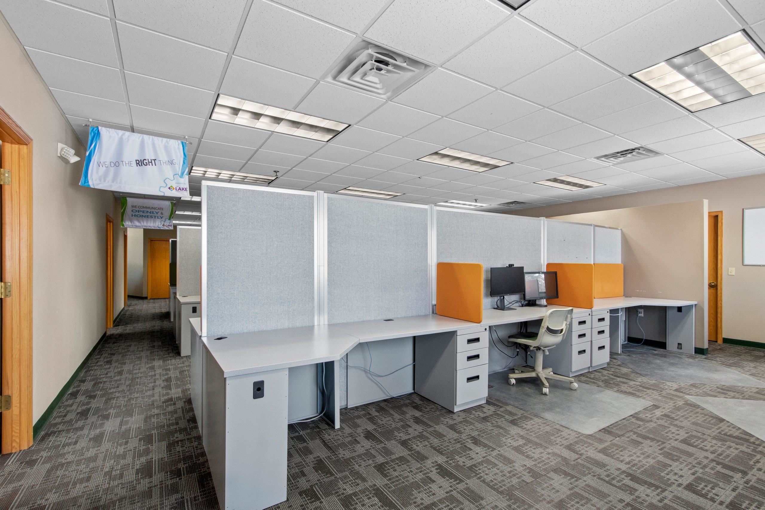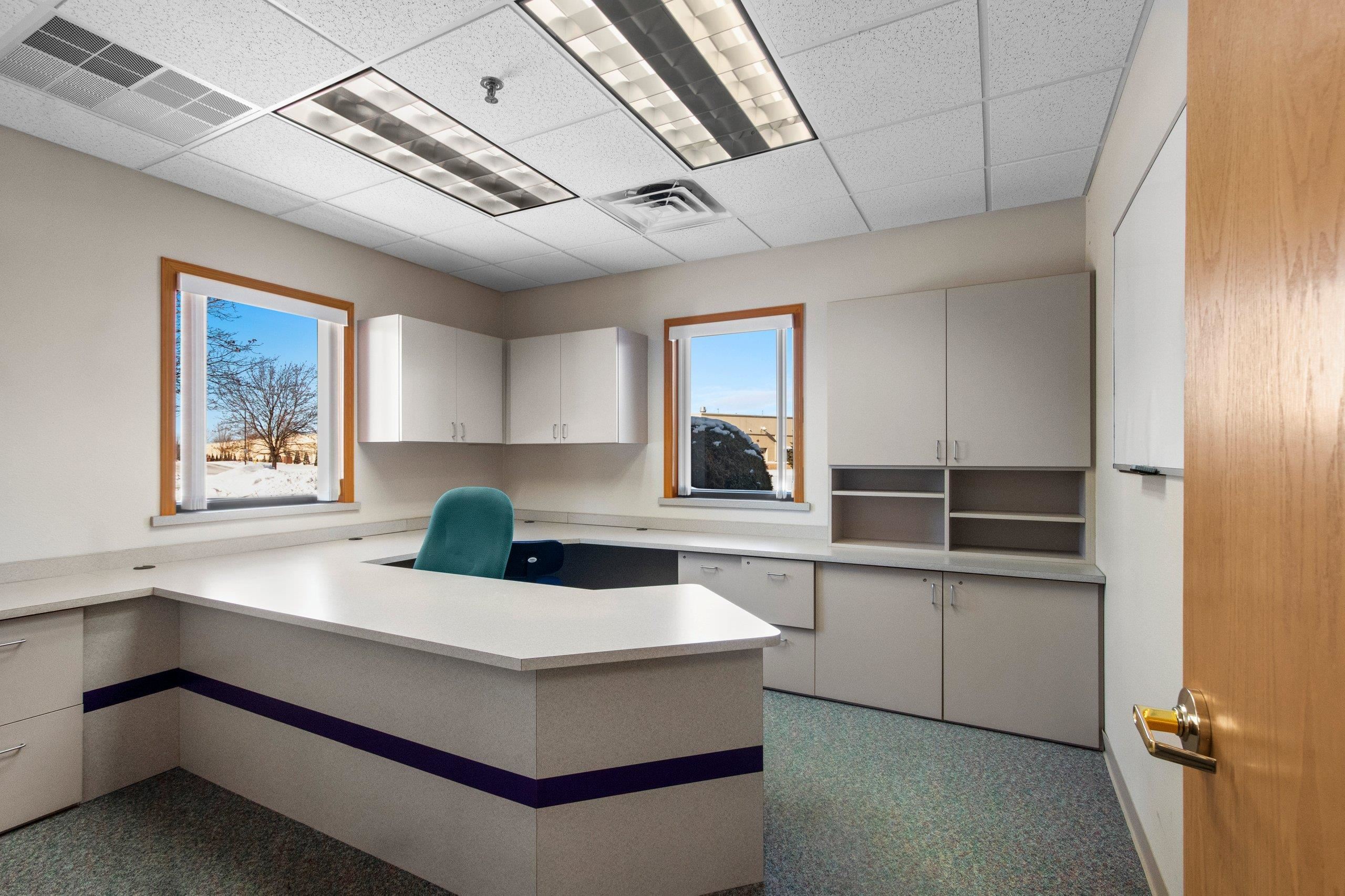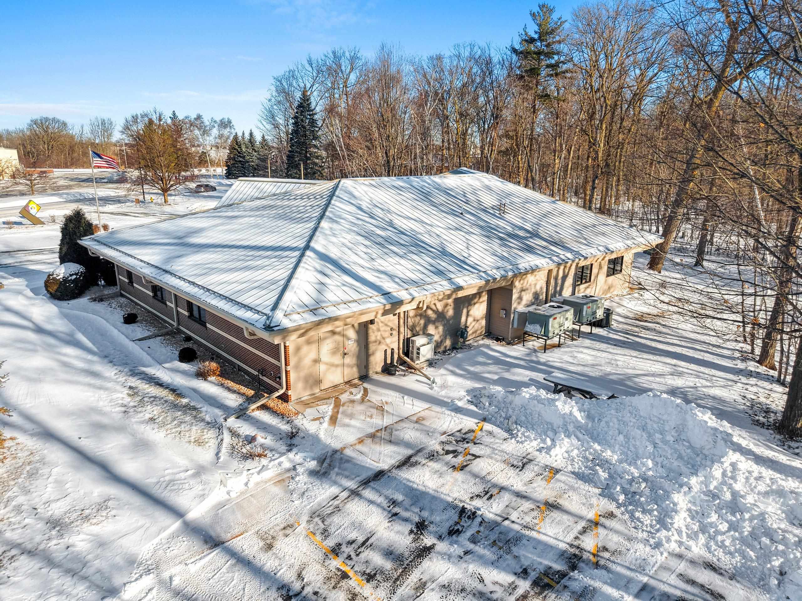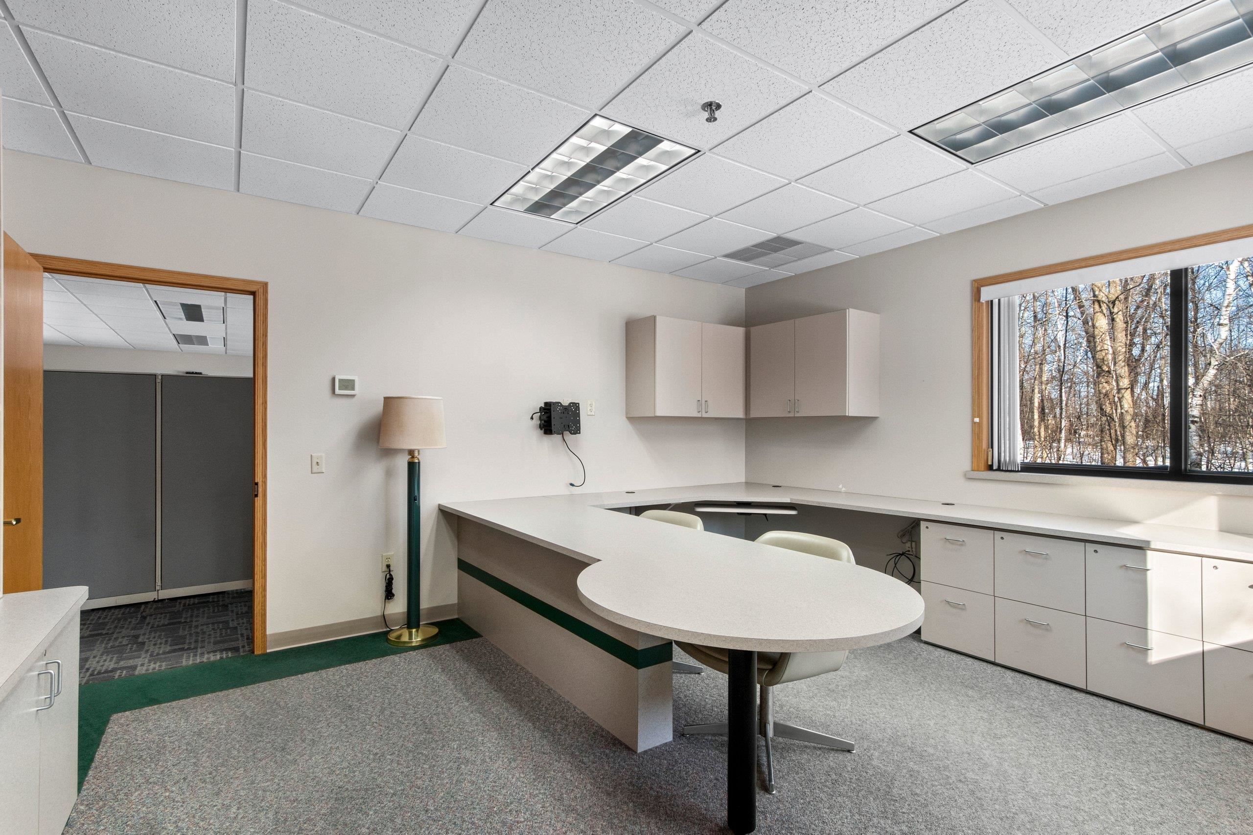Exceptional Class A office opportunity in a premier Green Bay location. Situated on a 2.6-acre parcel with a wooded backdrop, this property offers a rare combination of professional presence, functionality, and room for future expansion. The site provides ample parking and is well-suited for an owner-user or growing organization. The building features a thoughtful layout with two wings offering open floor areas with cubicle systems in place, along with private offices and conference rooms. A welcoming reception area anchors the front entry, while a centrally located collaboration center serves as the hub of the building. Constructed with quality and longevity in mind, the property features brick construction, a steel roof, and a full fire suppression/sprinkler system.