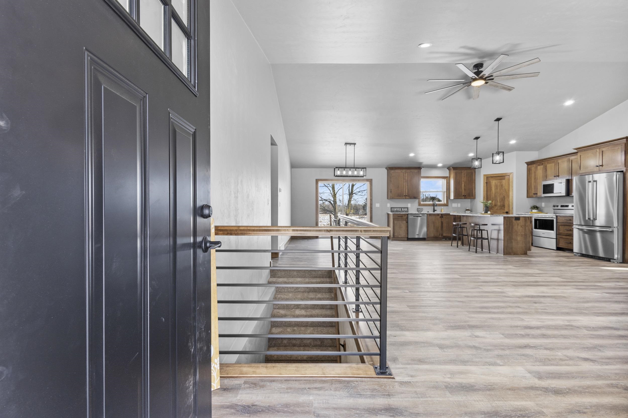 Experience the perfect blend of space & sophistication w/this thoughtfully designed 3-bedroom, 2.5-bathroom home. No detail has been overlooked, from the soft-close cabinetry and granite surfaces to the seamless flow of open-concept layout. The primary suite is impressively sized, while the functional mudroom and laundry area provide the organized lifestyle you've been looking for. One of the most incredible features is the massive attached garage with an overhead garage door to the backyard & spanning over 1,200 sq. ft. featuring stairs leading directly to the basement which is already prepped with an egress window and plumbing for a future bath. Concrete driveway, & walkway to front porch are all included. 48 hours for binding acceptance, listing agent has an interest. PICS ARE SIMILAR