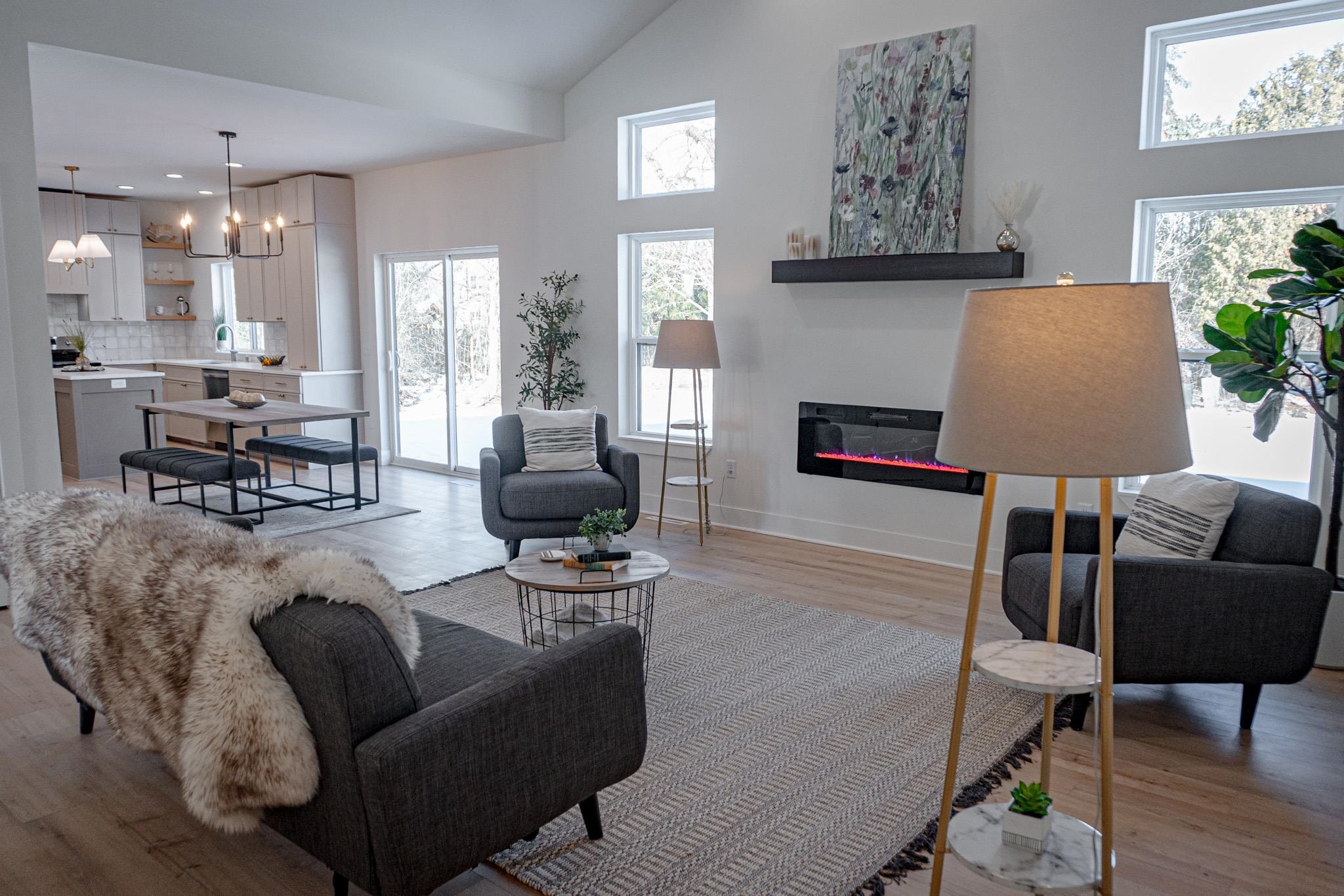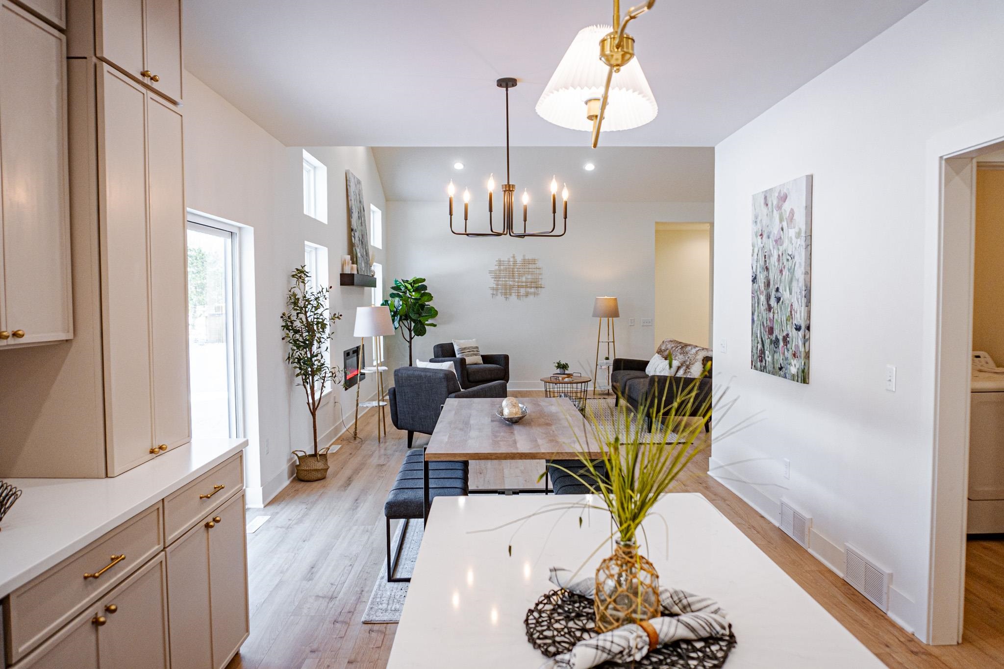 Beautifully designed 3 bed, 2 bath new construction home with a 3-car garage in the highly coveted Red Smith school area. This open-concept home features cathedral ceilings, luxury finishes, and a sleek modern fireplace anchoring the living space. The kitchen offers quartz countertops, Custom Range Hood, stainless steel appliances, custom cabinetry, and a large walk-in pantry. Full Appliance Package including washer and dryer included in Sale. Enjoy a customizable primary walk-in closet and a 1,674 sq ft unfinished basement with potential for an additional bedroom and bathroom. Concrete driveway, sidewalk, and right-of-way to be completed in spring. Close to schools, parks, and local amenities—an exceptional opportunity in a prime location.