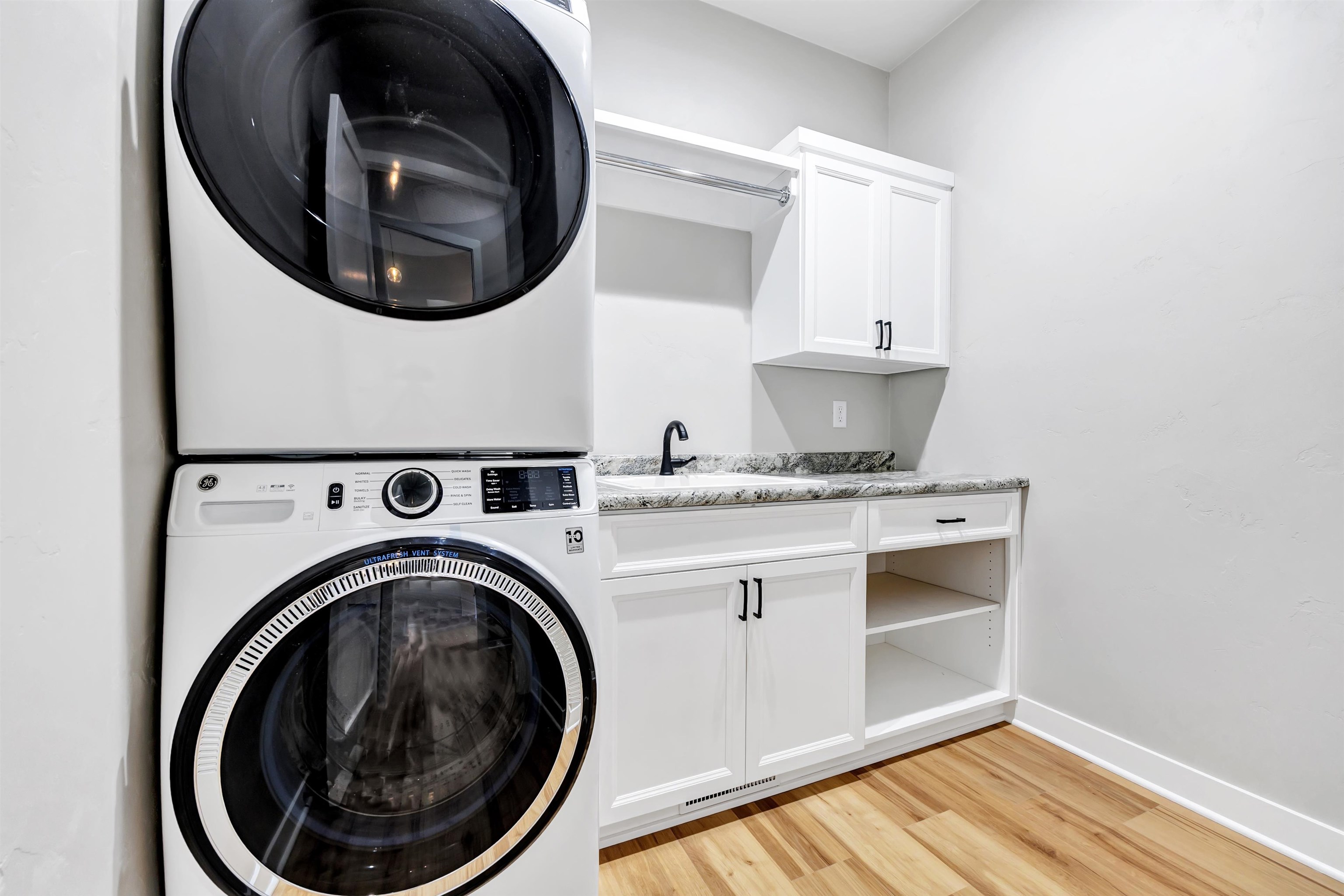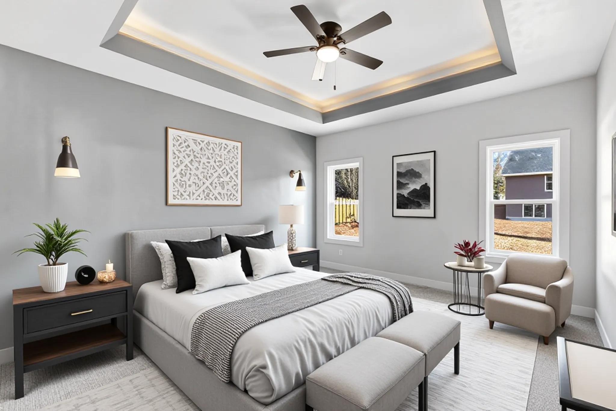 You will love this brand-new 3 bedroom home on a cul-de-sac lot w/ stone front accent, lrg covered front entry & stylish wood garage drs. Bright open-concept layout w/ white kitchen cabinets, marble counters, stainless appliances incl. gas range, center island/snackbar, stunning tile backsplash & walk-in pantry. Living rm features cathedral ceiling & electric FP w/ sleek surround. Open staircase leads to LL. Primary suite w/ tray ceiling, walk in closet & spa like bath w/ dbl vanity, quartz counters, freestanding tub & a huge, tiled shower & heated tile floors. Lrg 1st-flr laundry w/ stackable washer & dryer included, cabinets, sink & hanging rod. Finished garage stubbed for heat + floor drain. Covered back porch, seeded lot & more! Some photos virtually staged. 48 hrs binding acceptance.