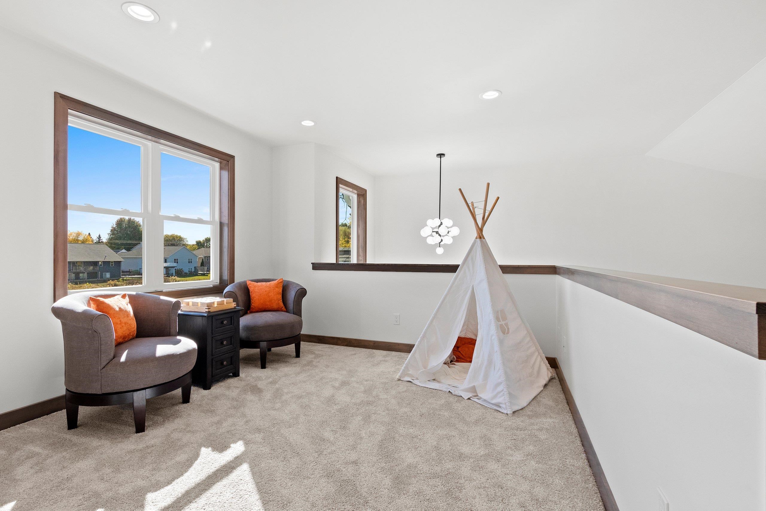 Check this beautiful story & half design w/ 2,163 sq ft living space. Feature great RM w/ vaulted ceiling, dining area, large kitchen w/ solid surface counter tops & tile backsplash. & tile backsplash. 1st floor MBR suite includes large walk-in closet, dual sinks, tile shower. 2nd floor has 2 BR, BA, loft area overlooks great room, great for kids. Lower level w/ e-gress windows & roughed-in BA, potential 830 sq ft living space. 1st floor laundry. Fully finished 3-stall garage, & patio. Seller financing available - 5 year 2.5 % mortgage with a balloon payment at the end of 5 years. See developer for details