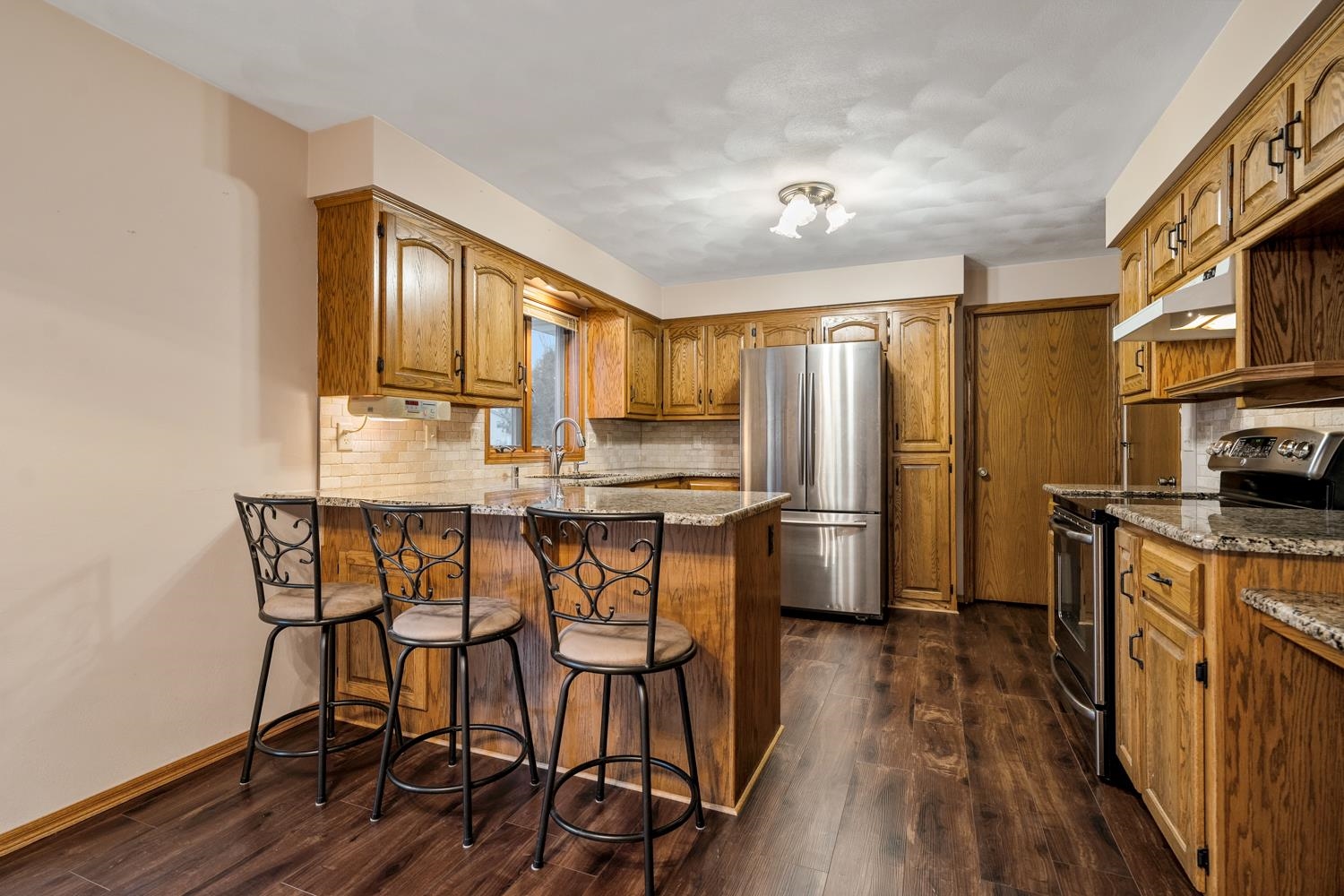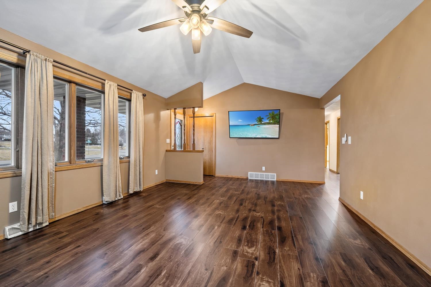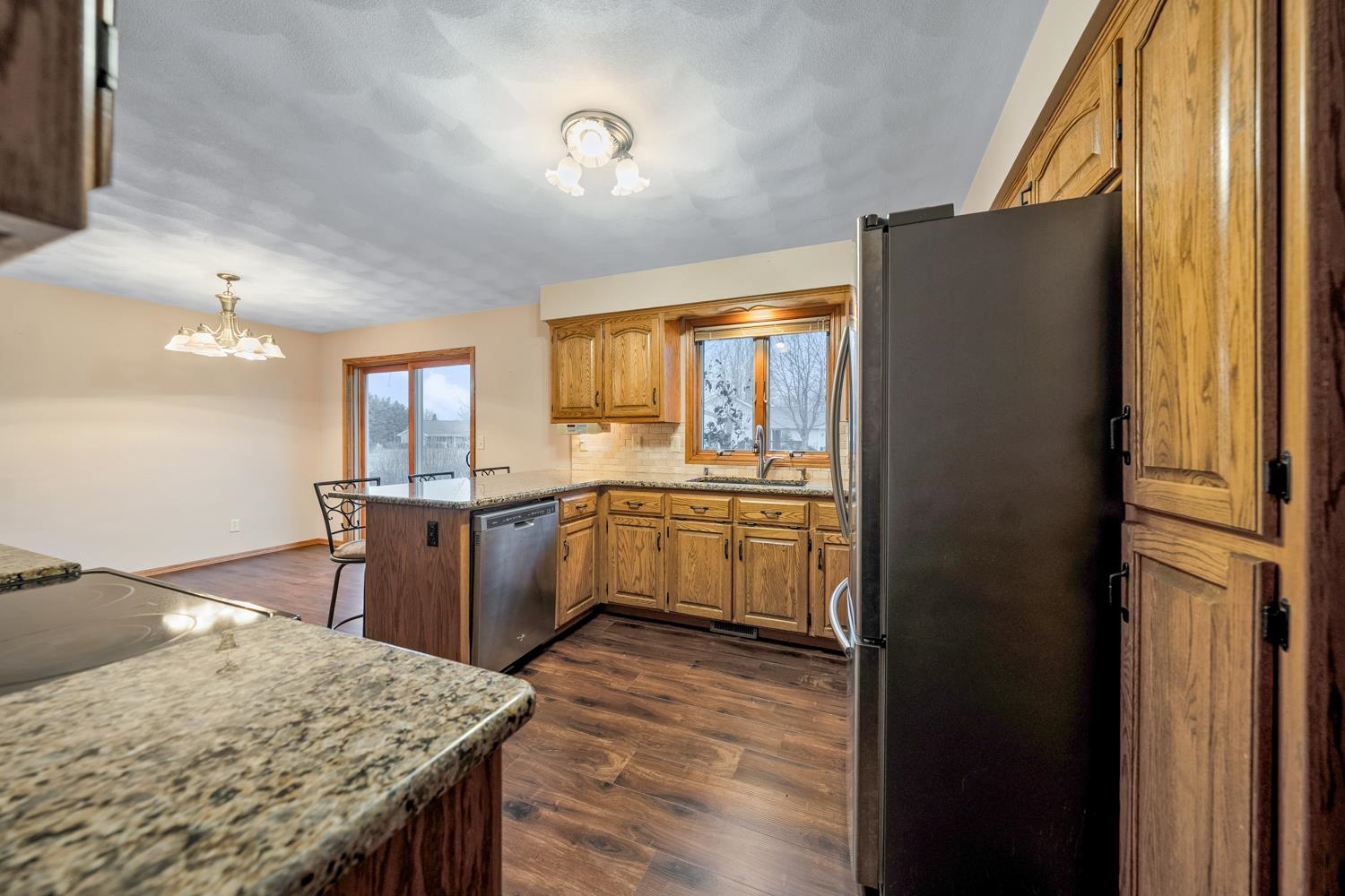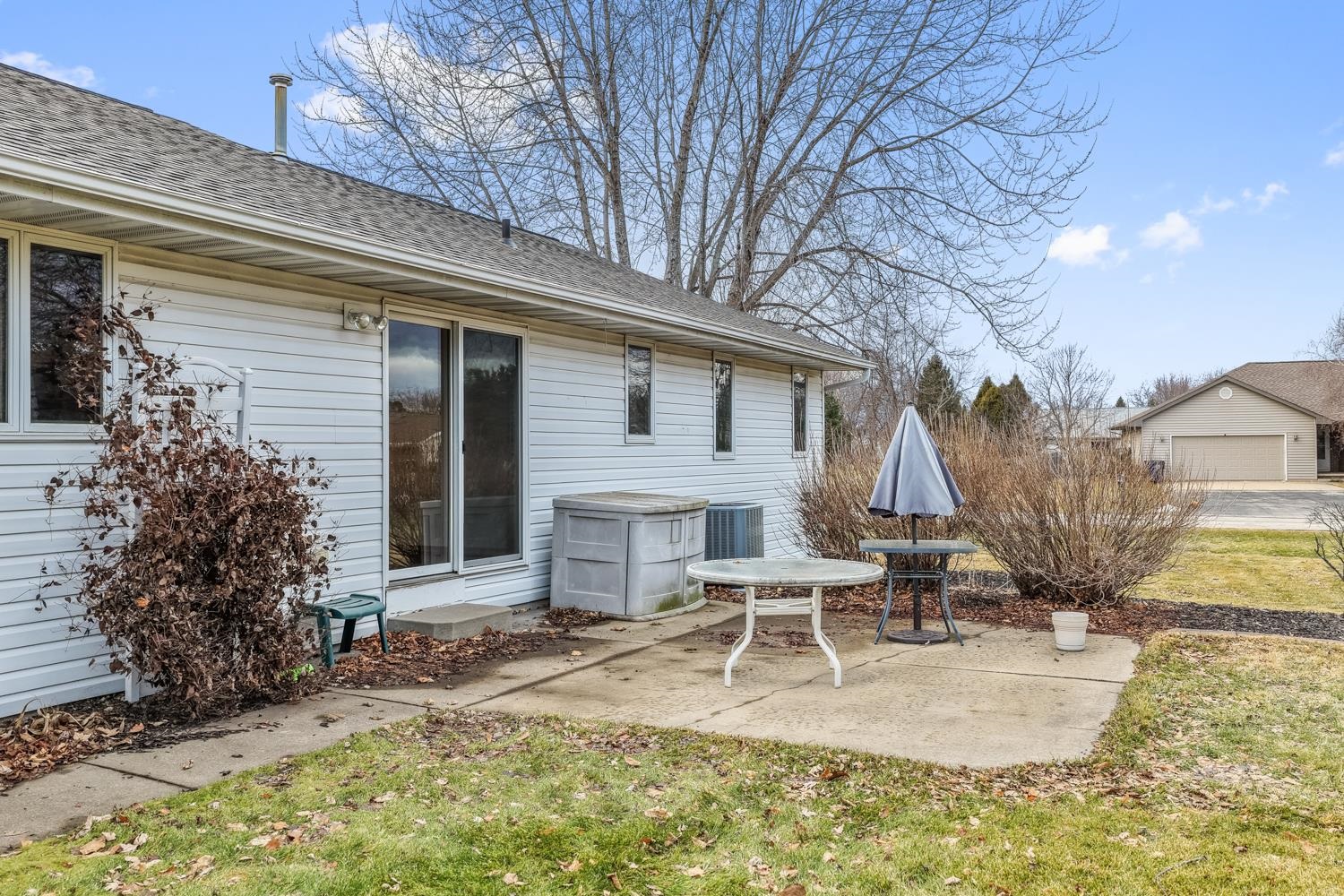 Well-appointed 3BR/3.5BA ranch home on a corner lot greets w/ cathedral ceilings & living room w/ large brick-faced gas FP. Kitchen w/ pantry, ample oak cabinetry, granite tops, snack-counter, and stainless-steel appliances. Sliding door opens from dining area to patio & spacious yard. Convenient 1st floor laundry w/ half-bath. Primary bedroom w/ ensuite bath. Bedrooms 2 & 3 share a 2nd full bath w/ granite-topped vanity. LL boasts nearly 1200 sqft of additional finished space composed of an extra-large fam-room w/ gas stove, multi-use den/lounge, and office w/ potential for a 4th bedroom. 3rd full bath w/ walk-in shower completes the lower level. Huge 2.5 stall attached garage is 35' deep for parking up to 4 cars. Well-kept & move-in ready! Buyer responsible for re-keying property.