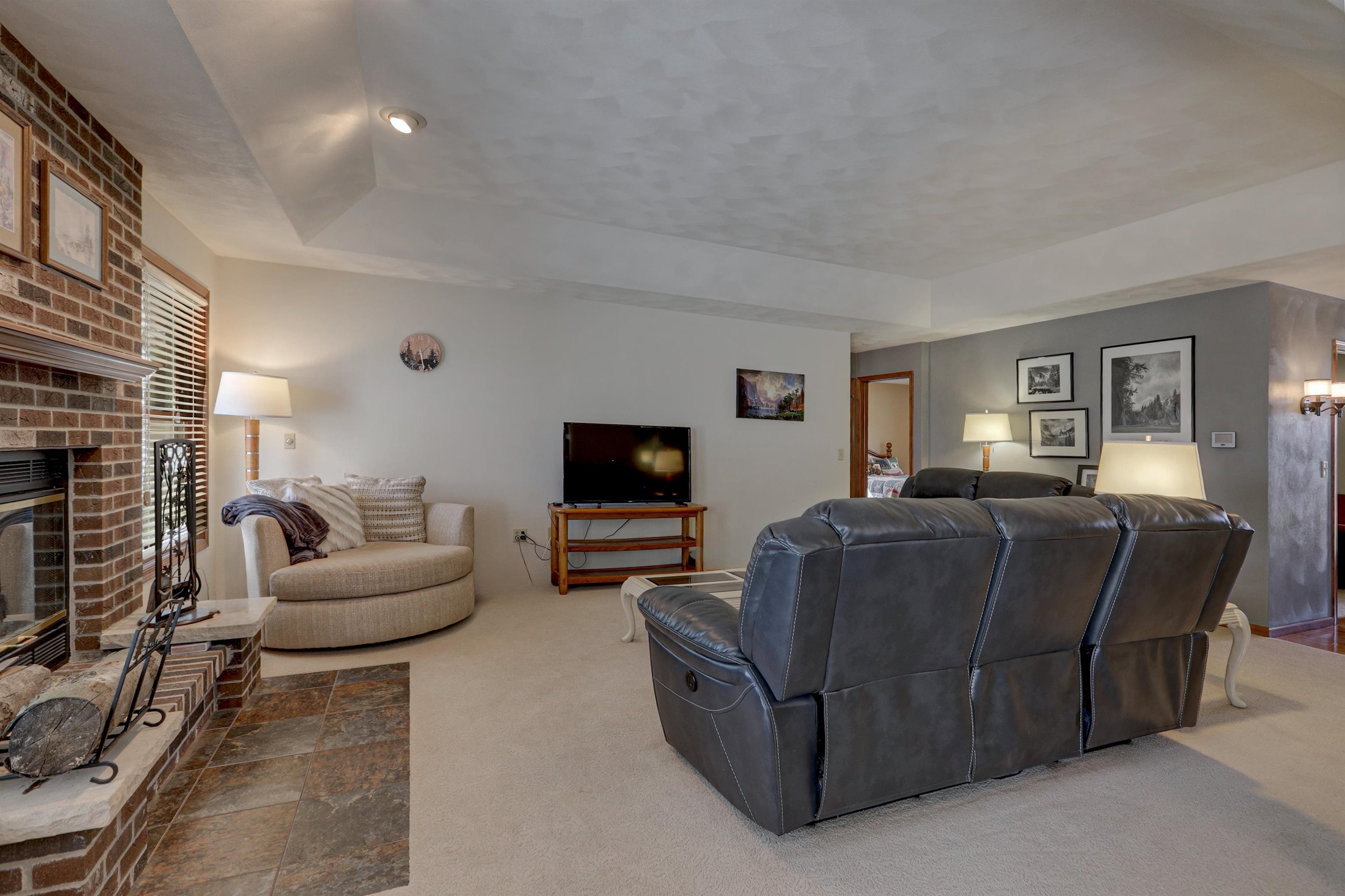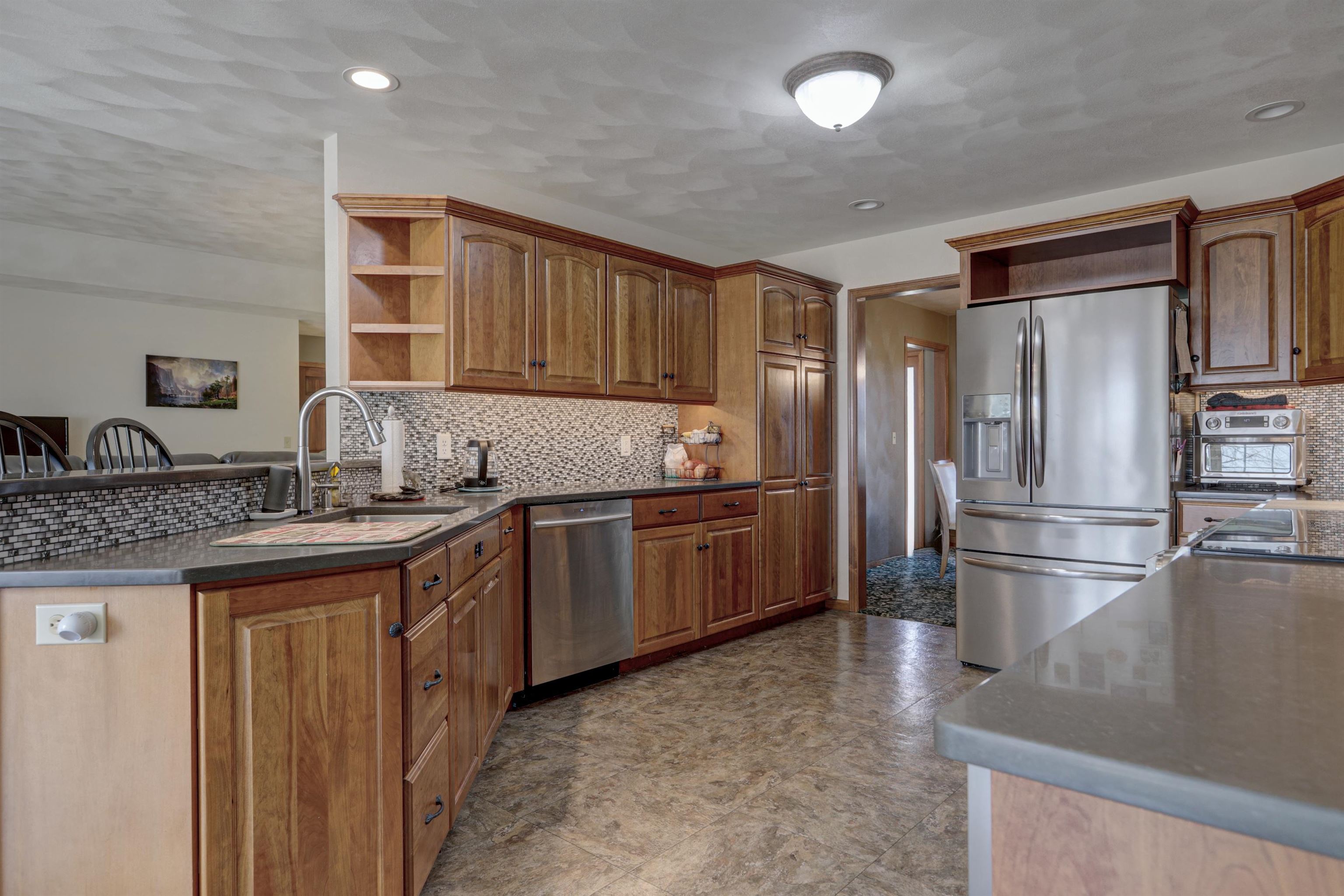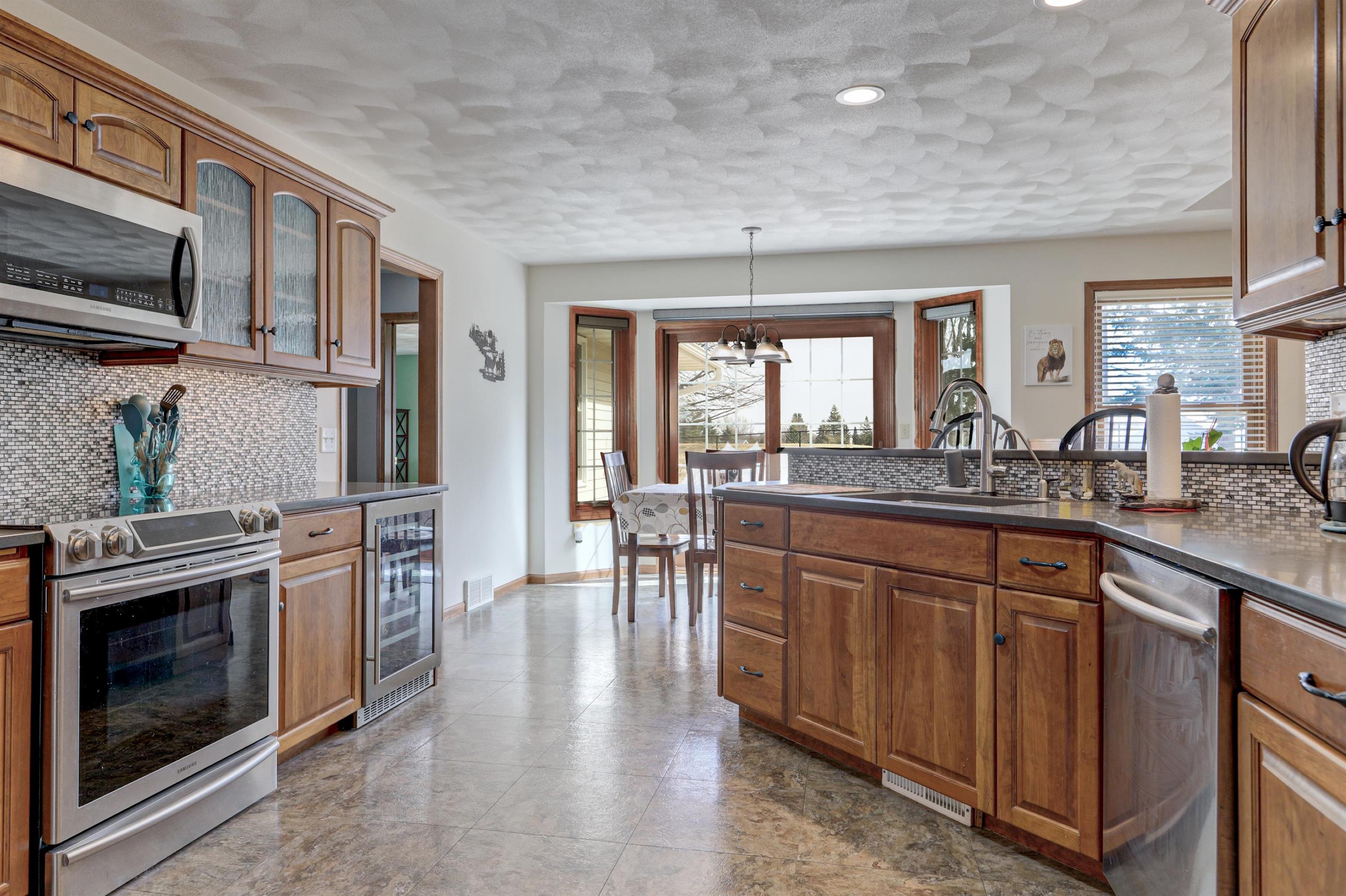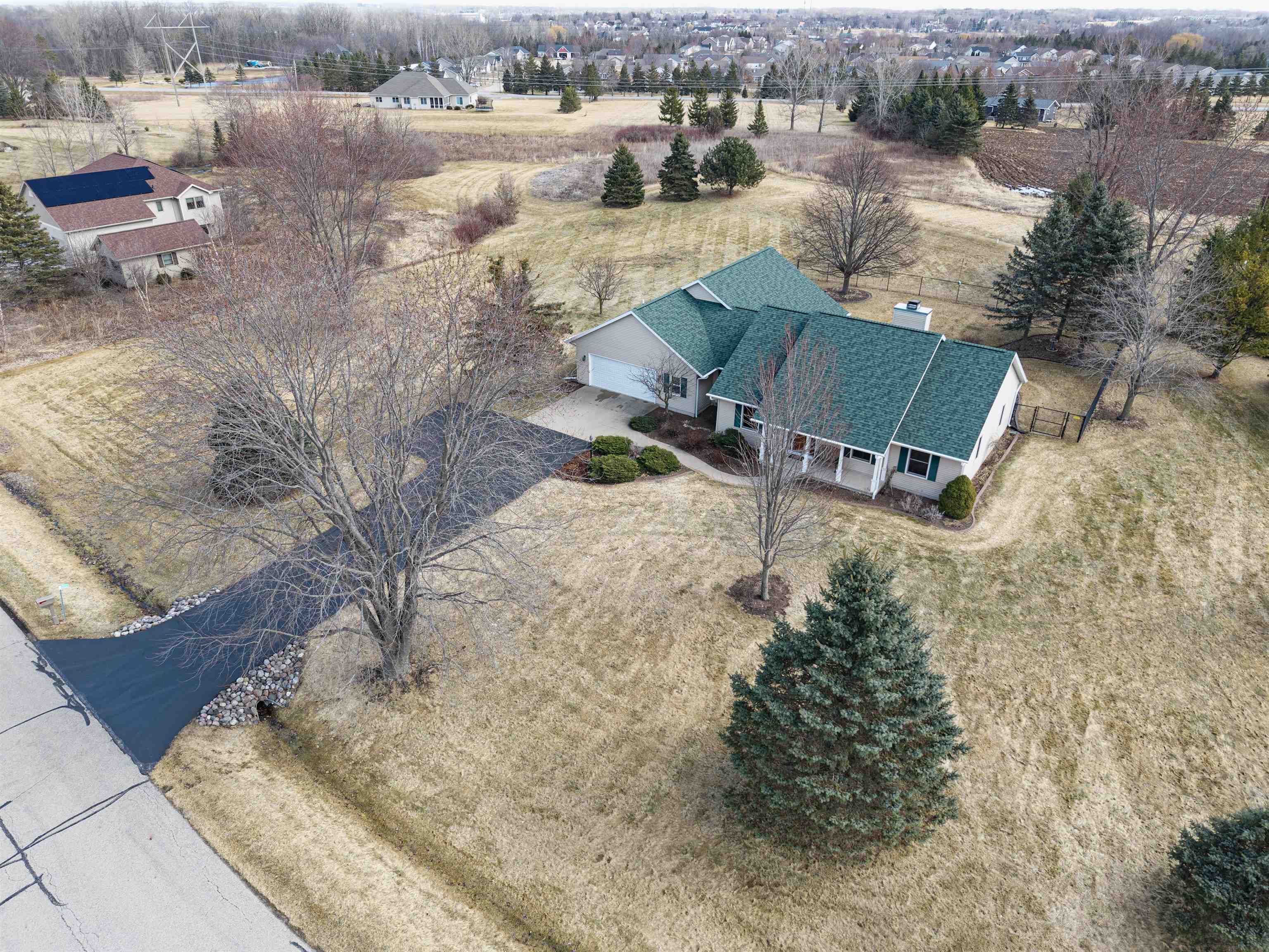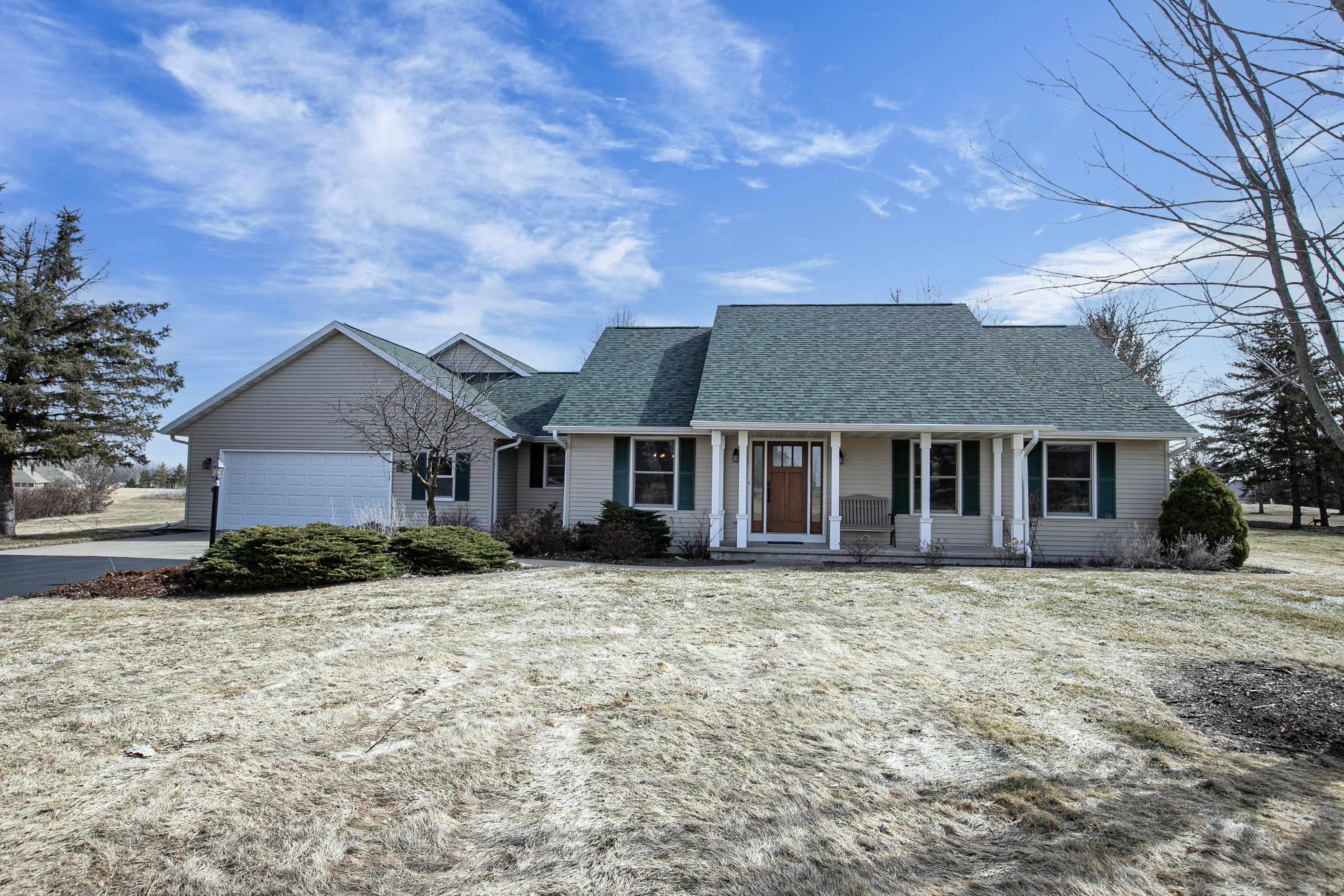 Beautiful country ranch on nearly 2 acres in Greenville! This thoughtfully designed home features a split-bedroom layout, stunning kitchen, wood burning fireplace, an office that could be converted into a 4th bedroom, formal dining, first floor laundry, and an extended width garage for all the toys with epoxy floor. The finished lower level offers a large rec room and additional family room-perfect for entertaining and a large unfinished space that could add more sq ft. Walk out your patio doors to a fenced backyard and patio for relaxing or gatherings. Recent updates include a new roof, water heater, water softener, and radon motor. Mound system & private well to make outdoor watering convenient. Full kitchen and laundry appliance packages included! Schedule your showing today!