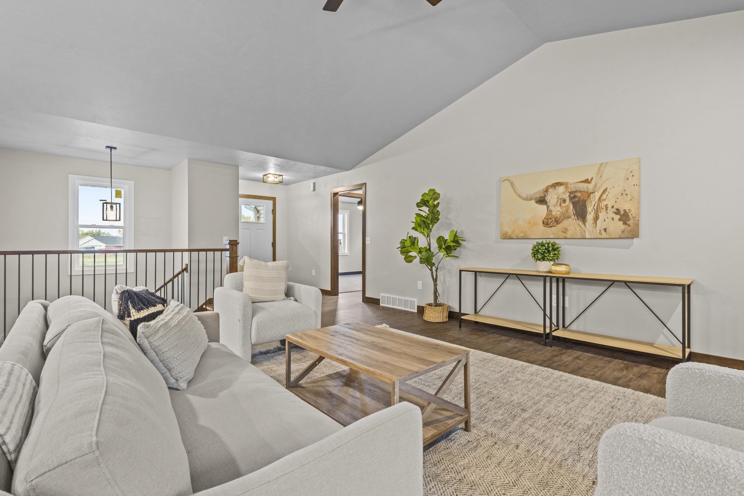 Brand new ranch home offering modern finishes and a smart, efficient layout on a .50-acre lot. This 3 bedroom, 2 bathroom design features vaulted living space, finishes that feel custom, and an inviting open main level. The kitchen is highlighted by quartz countertops, tile backsplash, and full appliance package, making it truly move-in ready. The primary bedroom includes a 9’ tray ceiling and a beautifully finished tile shower. Exterior details include stone accents and the sidewalks and concrete driveway included, while garage-to-basement access adds convenience and future flexibility. A great opportunity to own new construction with space, style, and room to grow — schedule your showing today.