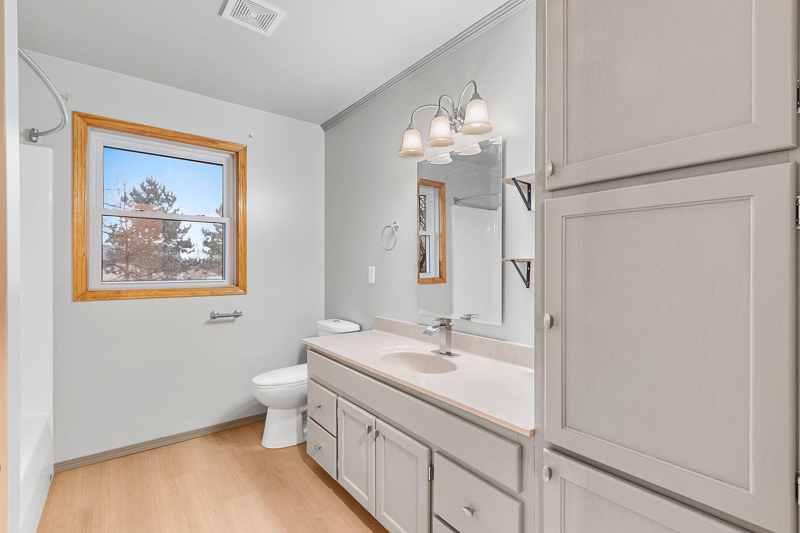 Move-in-ready home featuring an updated kitchen with island, spacious living area, and a large master suite with walk-in closet and full bath. Enjoy a 2-stall attached garage, generous yard space, and comfortable living. Home has a newer metal roof. A perfect blend of updates, space, and convenience! *Assessor only has total finished square ft for whole home, square footage per level is estimate, buyer to verify * *To best of seller knowledge it is poured concrete for foundation, all basement walls finished. *