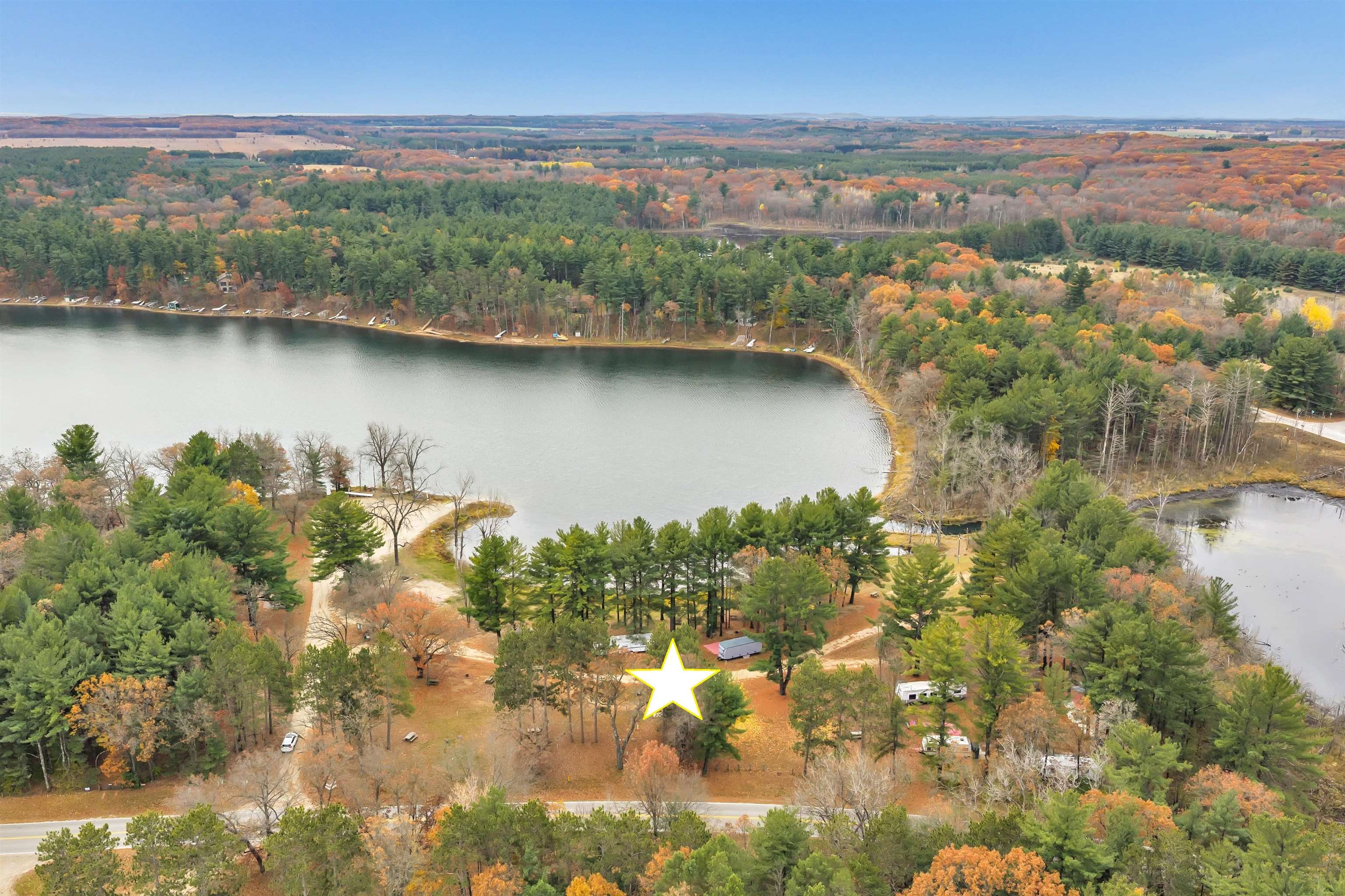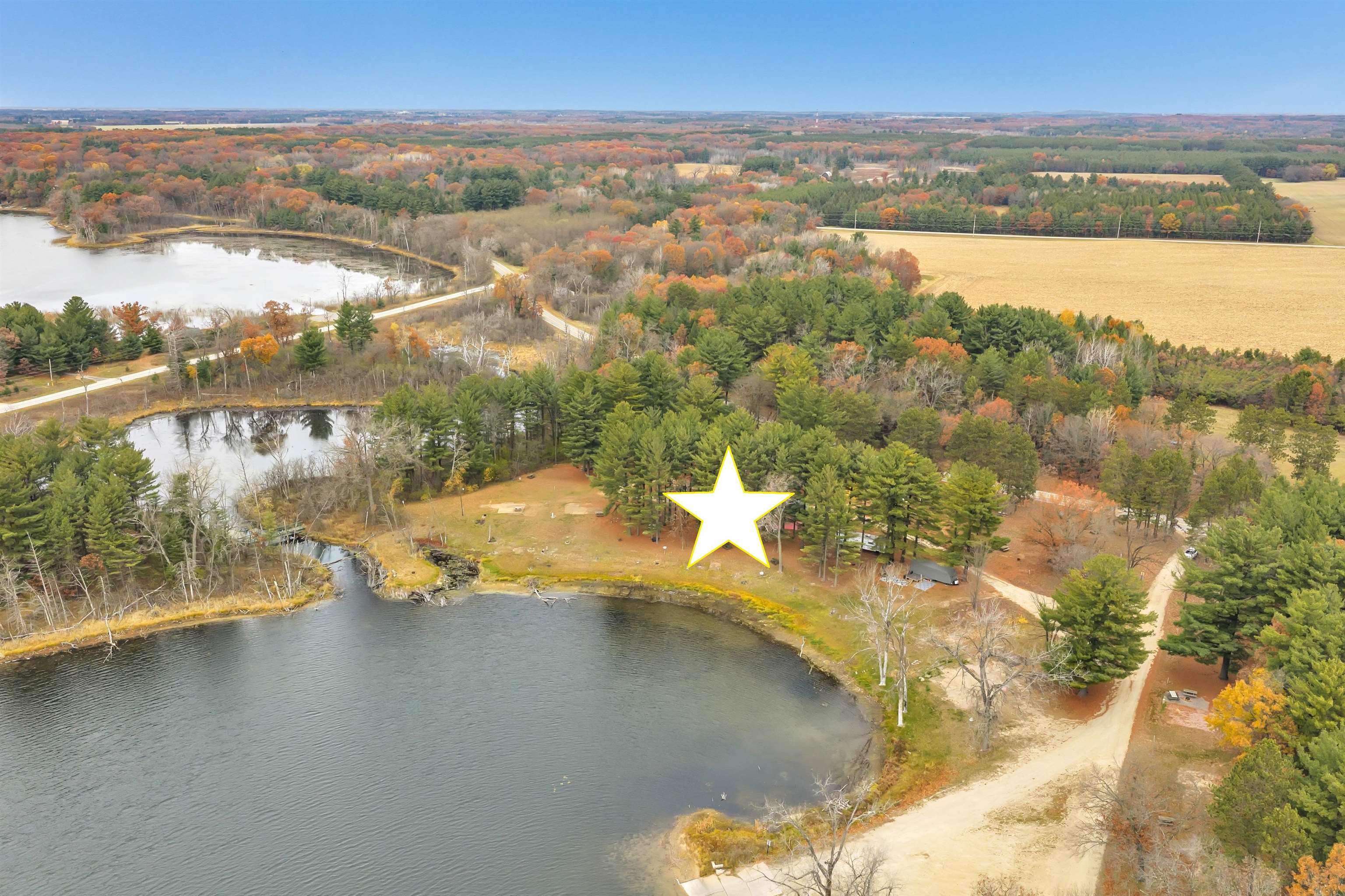 FIRST TIME LISTED! Incredible opportunity to own an established CAMPGROUND on 4+ acres with over 700'+ of waterfront on crystal-clear Fish Lake in Hancock, WI! This property is being sold as a campground first and foremost, featuring 38 sites with electric hookups, partial water hookups, restrooms (no running water), and a pump station. Endless potential—continue operations, expand the campground, or later develop into private lakefront retreats. Fish Lake spans 153 acres with a max depth of 37’, offering excellent fishing for Bass, Panfish, Walleye, and Pike. The Village maintains the public boat landing with right-of-way access for new owners. Conveniently located minutes from I-39, 30 minutes from Stevens Point an hour from Madison. Frontage estimated by Listing Agent—Buyer to verify.