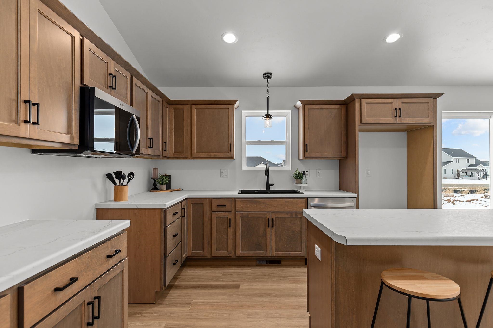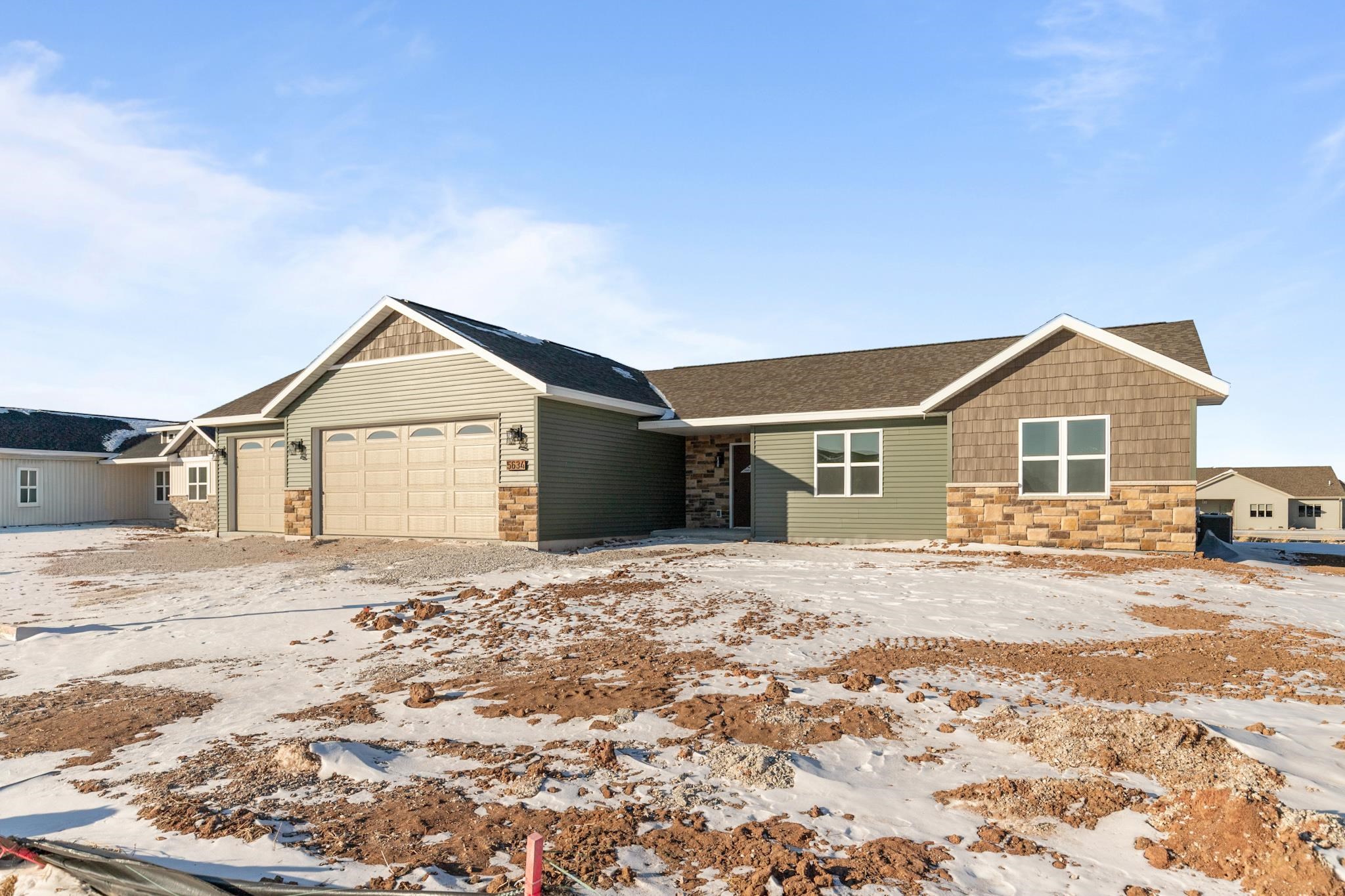 Enjoy a FREE snow blower or lawn mower with purchase—a welcome perk for Wisconsin living. This new construction ranch offers clean design and comfortable living in a highly desirable location. Vaulted ceilings enhance the open main living space, creating an airy setting for both everyday life and entertaining. The kitchen features a central island designed for function and flow. A mudroom and laundry area just off the ZERO STEP ENTRY garage keeps daily routines organized. The private primary suite includes an en suite bath and walk-in closet designed for efficiency. Complete with a 3-car garage, this home is located in the Kimberly School District and close to parks, walking trails, golf, shopping, and entertainment.