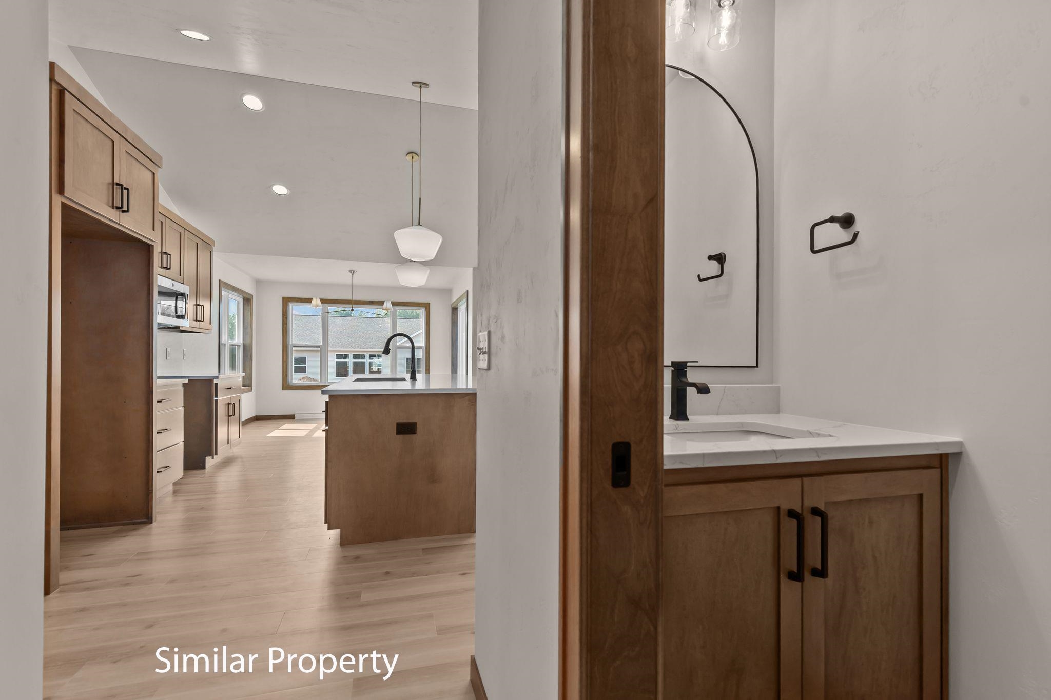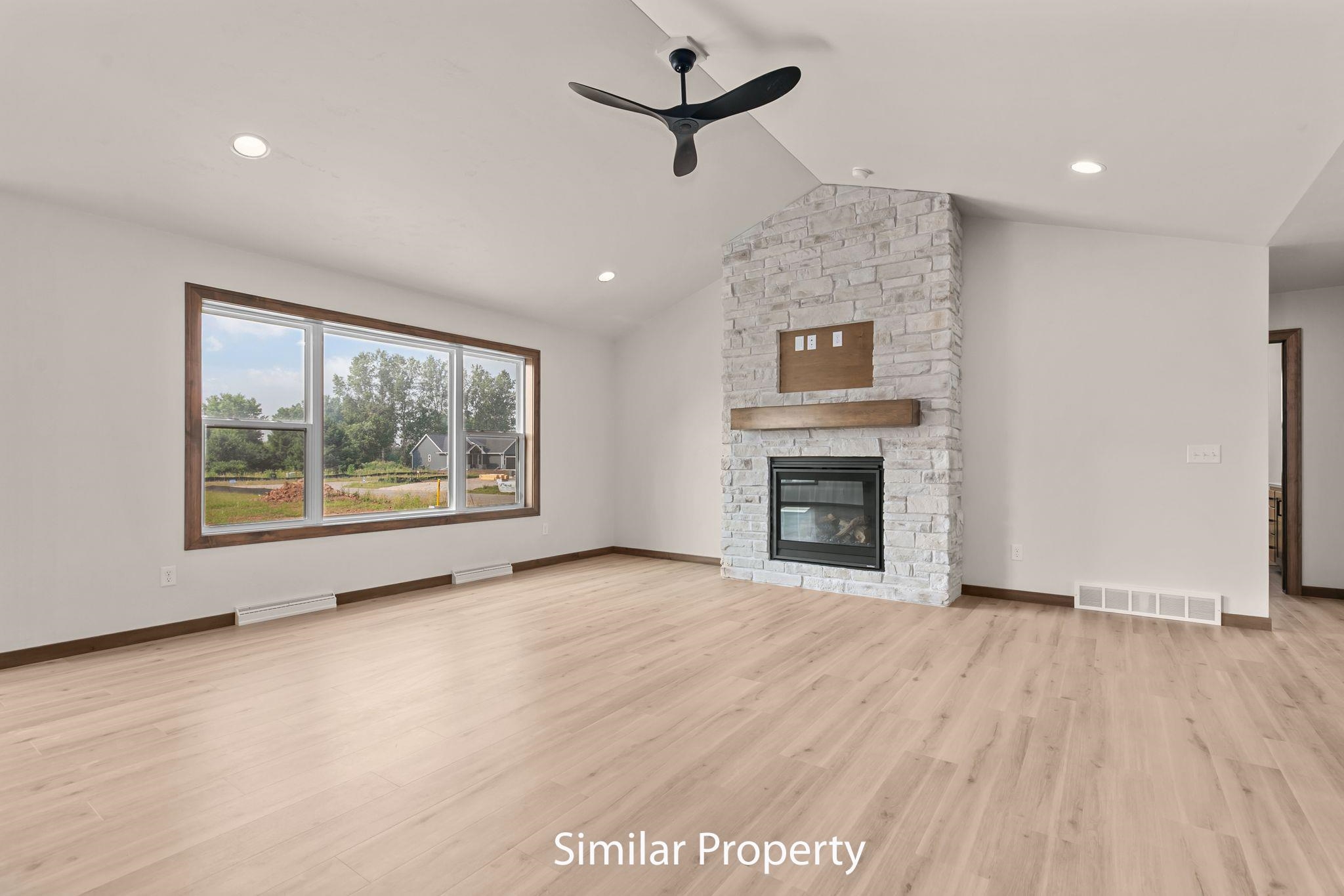 Keystone Homes offers this open-concept 3 bed 2.5 bath Ranch in Harrison. Kitchen showcases Quartz countertops, tile backsplash, large island, and stunning walk-in pantry. Living room has vaulted ceiling and beautiful fireplace. Quartz countertops throughout. 3.5 car garage has basement access. Basement has egress, plumbing stubbed in, and plenty of room for future living space. 500 sq ft concrete patio. Street and Sidewalk assessment included. Call to schedule a showing today and experience the Keystone Difference!