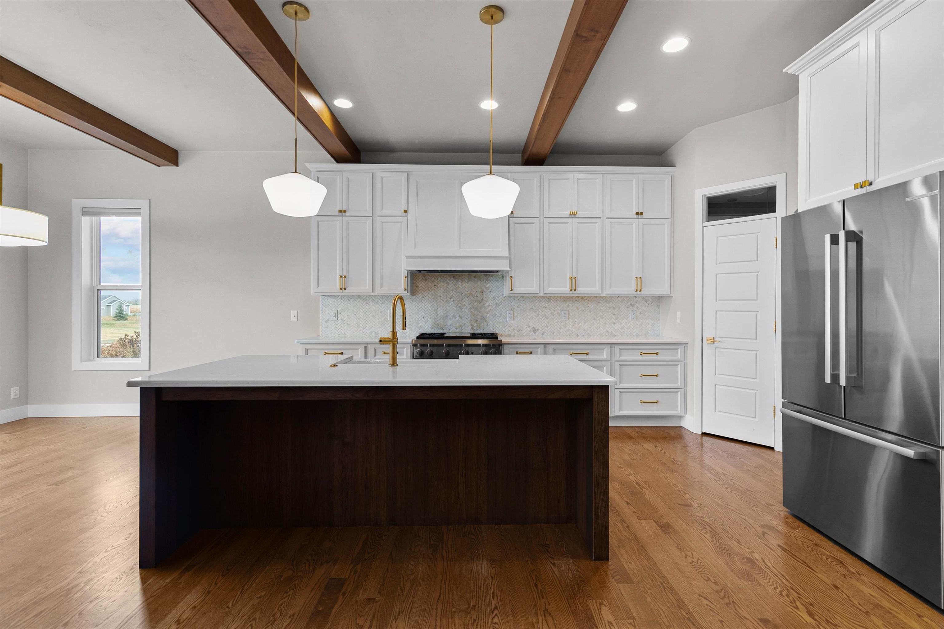 Move right into this Semi-Custom nearly new home built by Cypress Homes! Entertain in this open concept Kitchen with beautiful granite countertops, 36" Wolf Range with 4 burners/infrared griddle and Kohler sink and fixtures. This home is set up to impress with Ann Sacks Tile and hardwood floors, power shades with Lutron switches. Other custom features of the home is the cabinetry with soft close, upgraded lighting fixtures and Kohler fixtures added. Main level primary suite offers soaking tub, dual sinks with quartz countertops, tile walk in shower and wood closet organizer. Upstairs offers 3 bedrooms and a full bath. LL offers rec room and can add a 5th bedroom and full bath and garage to basement access. Home is professionally landscaped and street assessment is paid. Virtually Staged.