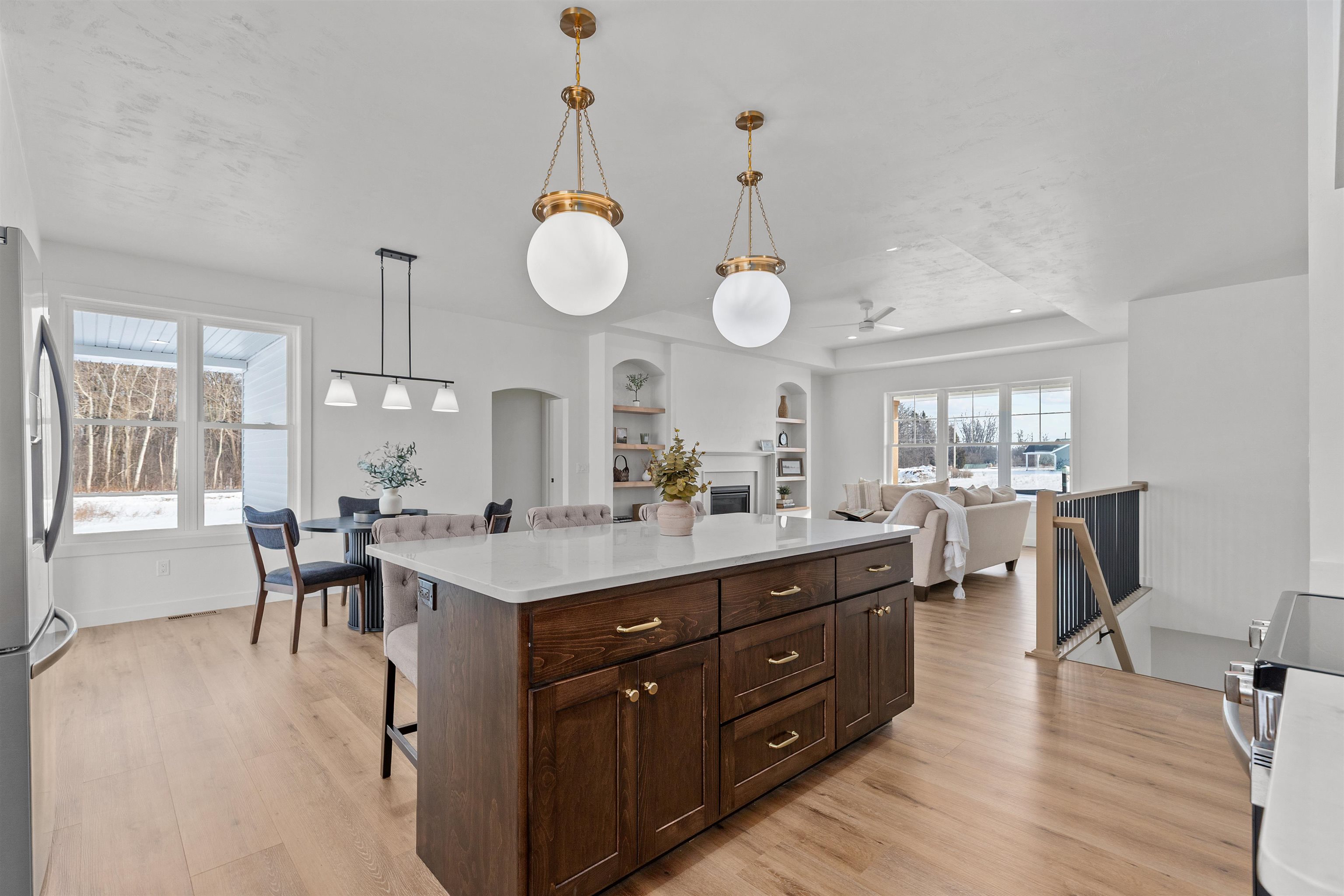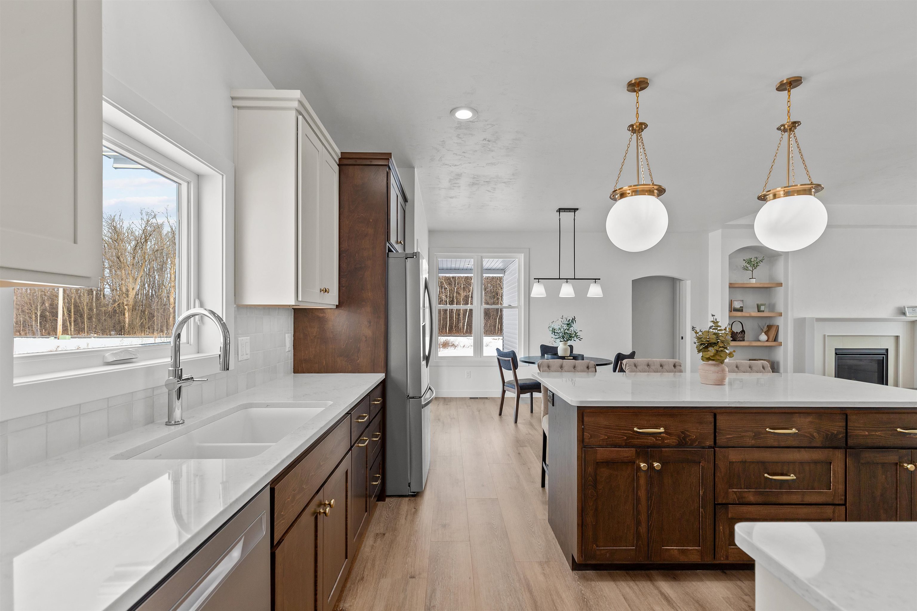 Featured in the Winter 2026 Parade of Homes, this Village of Harrison home has it ALL! Kimberly Schools! 4 bedroom 3 bathroom home with almost 3,000 sq feet of finished space & 3 car HEATED garage. Living Room with tray ceiling, gas fireplace with symmetrical shelving set in arched openings, & LVP floors flowing to your kitchen & dining. Kitchen with custom cabinetry, quartz countertops & center island, tile backsplash, drywall finished range hood, and spacious 5x9 walk in pantry. Primary suite with quartz counters & 13x8 walk in closet. Split bedroom design & 1st floor laundry. Finished lower level with flexible floor plan & wet bar! 4th bedroom and large 3rd full bathroom. Basement access from garage. Zoned heating. Pella windows throughout! Radon Mitigation. Massive covered back patio!