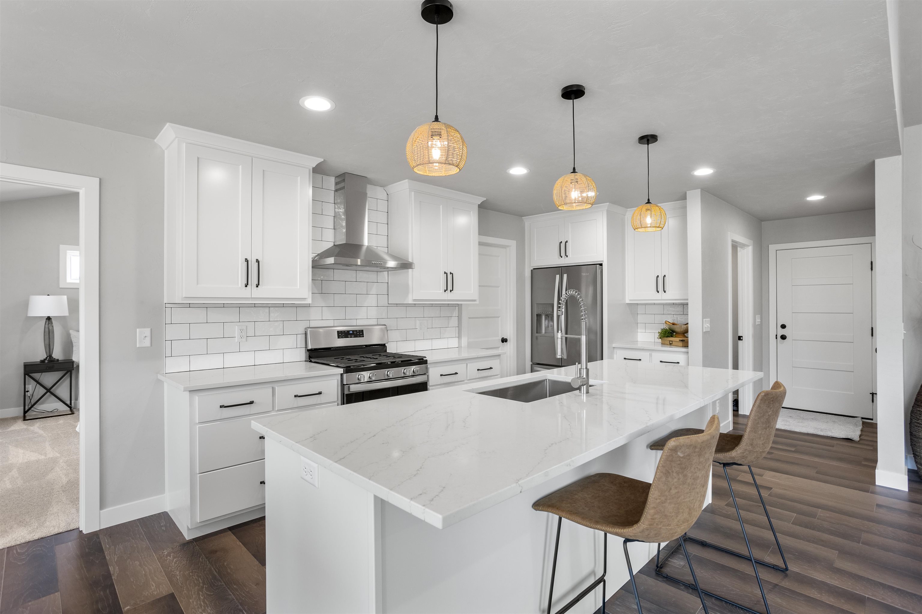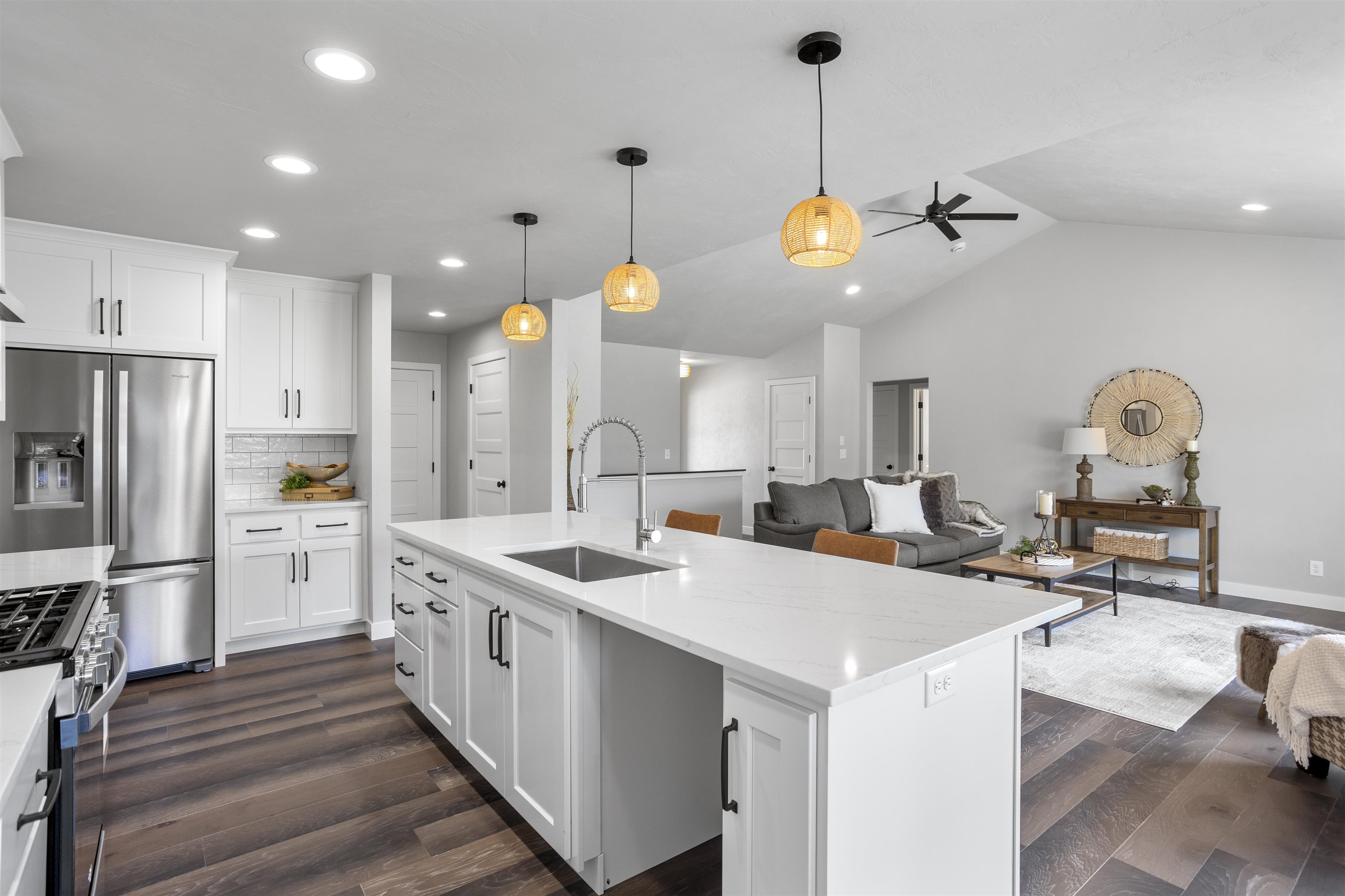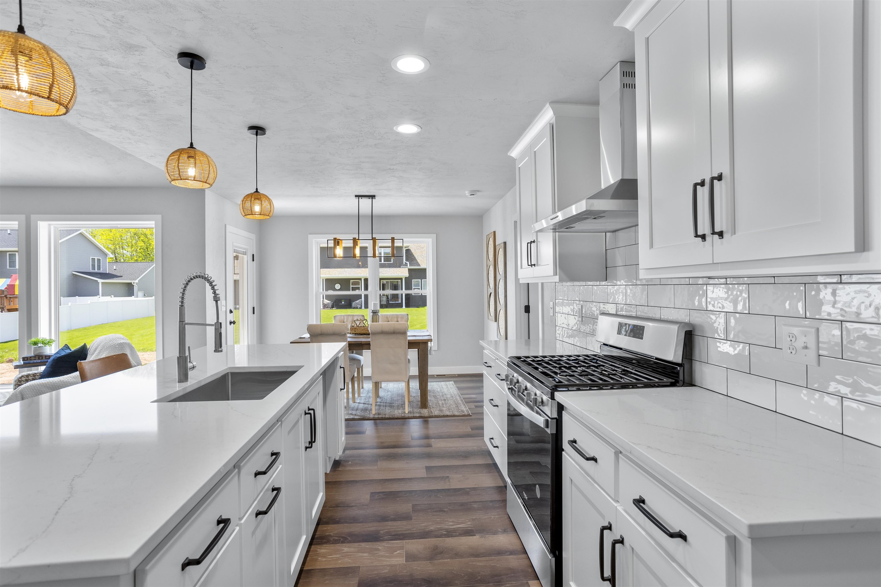 This luxury split bdrm ranch offers an open concept floor plan designed around the space where life is most lived! Step inside to be greeted by foyer w/access to home office. The GR features volume ceilings, tall windows & gas FP. A chef's kitchen includes SS appliances, quartz counter, center island, HUGE walk-in pantry & subway tile backsplash. The bump out dining area is surrounded by windows & includes a glass door to the backyard. The primary suite will sure be the favorite retreat w/tile shower, quartz dual vanity & California closet. Enjoy split bdrm design w/2 bdrms & common full bath on the opposite side of the home. Additional features include: FF Laundry, LL w/FR w/FP, 4th bdrm & 3rd bath, Engineered hardwood floors, 3 car garage & Kimberly Schools! Photos of similar home.