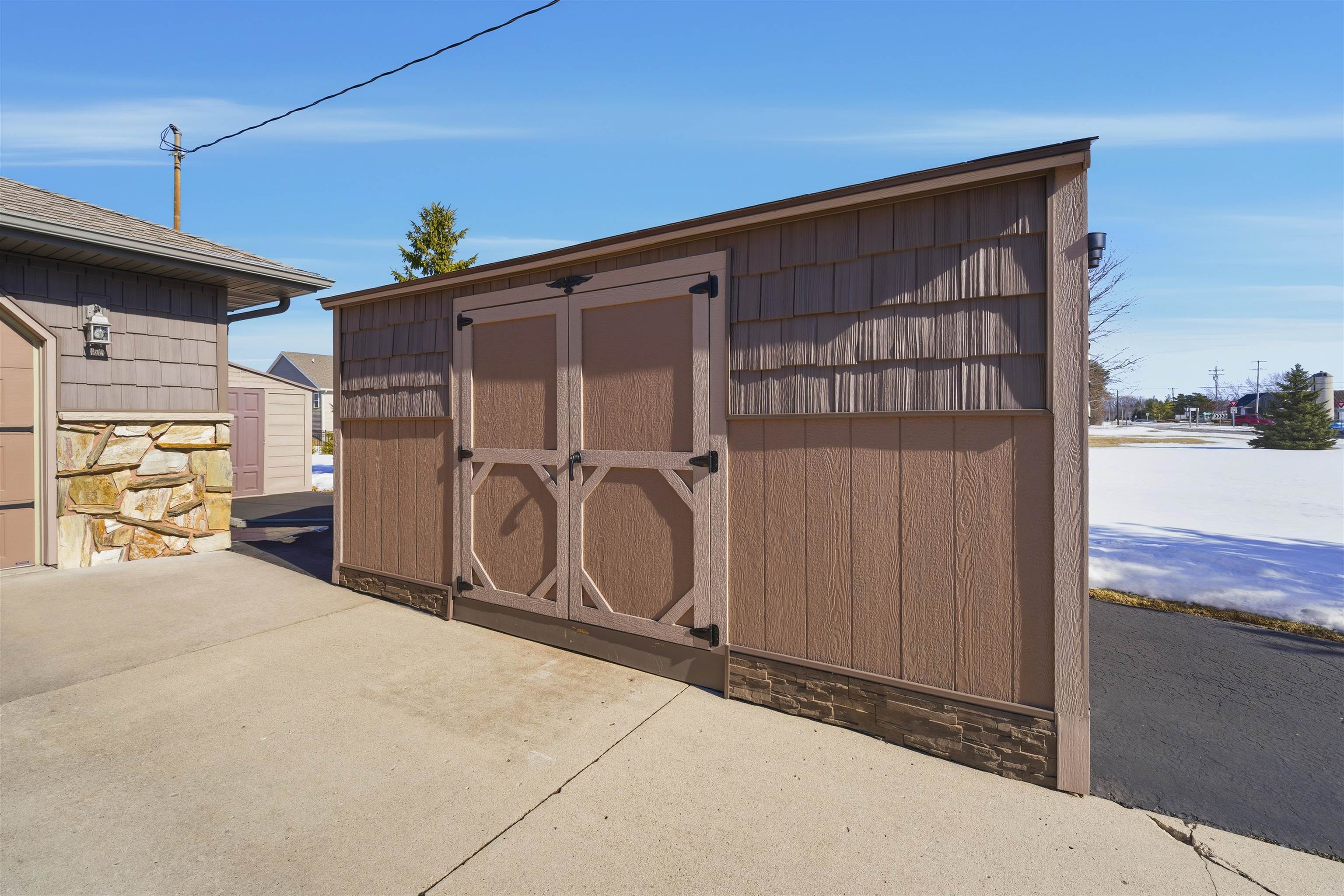 Appleton Schools! Nestled on a sprawling 1.20+/- acres in the Village of Harrison near walking trails, this updated 3BR, 1.5BA ranch offers 2,719+/- sqft of energy-optimized living. Stamped concrete covered porch welcomes you to the GR w/refaced wood-burning FP. The fully appliance eat-in kitchen is stocked w/cabinetry & opens to deck w/pergola. Main floor includes 3 spacious brms w/king-sized primary + remodeled full bath by Portside Builders, FF laundry, 3-season rm & convenient ½ bath. Finished LL adds 989+/- sqft w/bar area & LR w/gas FP. Additional highlights include a 2.5-car finished garage, 16x10 Tuff Shed, plus two additional sheds (12x12 and 10x10). Impeccably maintained and thoughtfully updated, this home is truly a must-see!