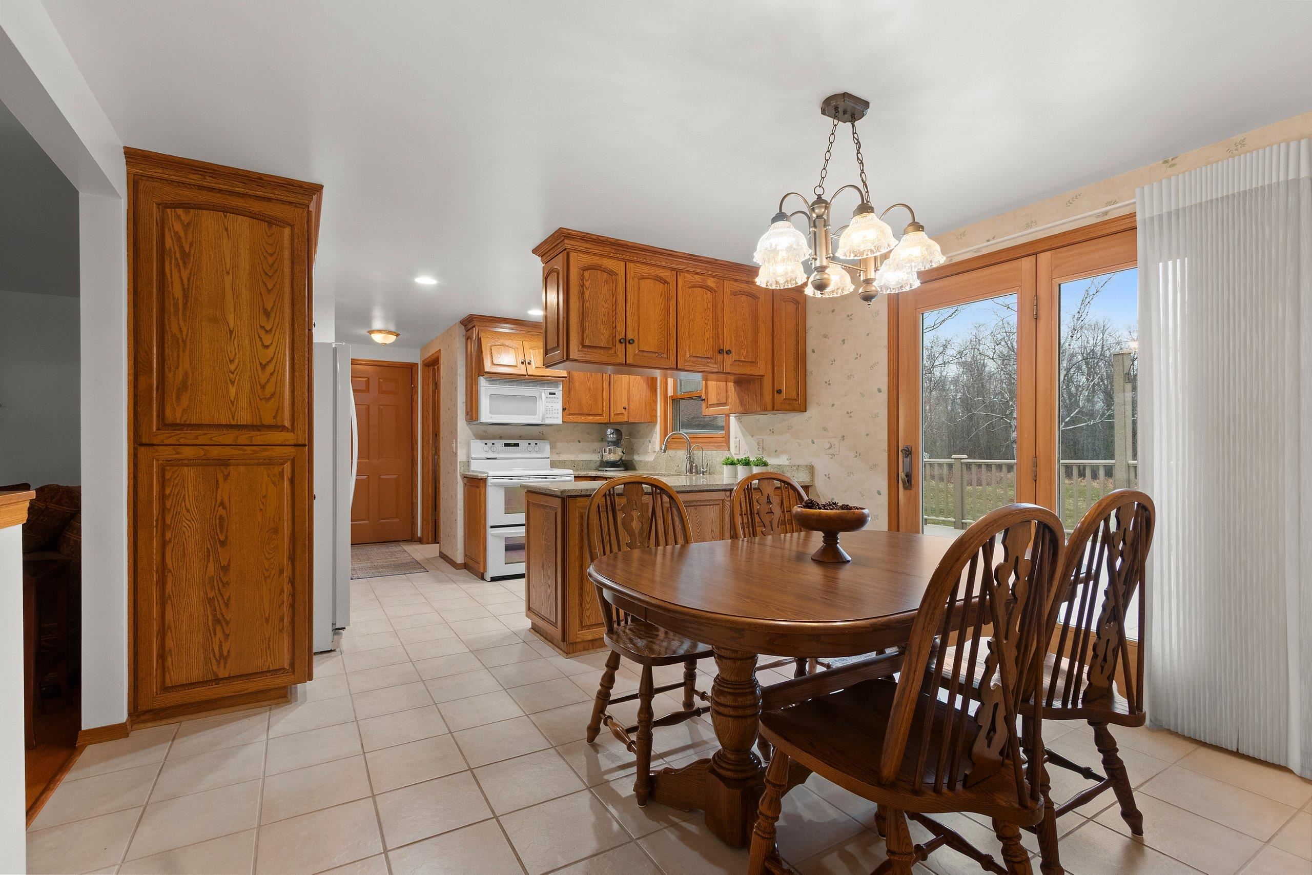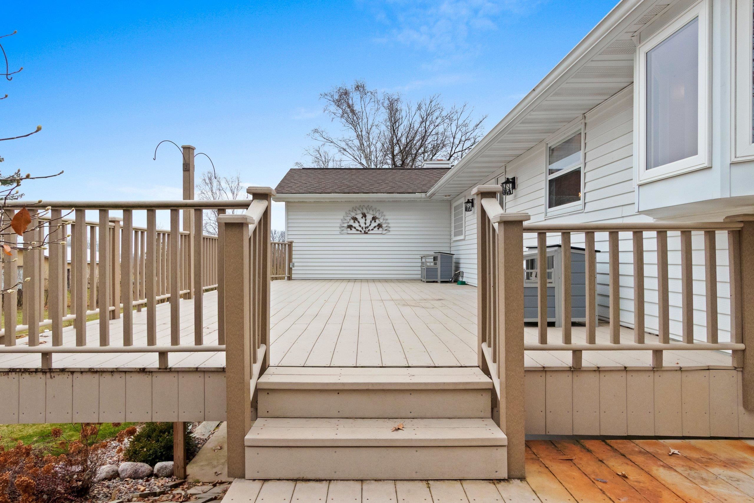 Beautiful 3+ bedroom home in the desirable West De Pere School District, set on 3.67 serene acres (per assessor). Enjoy both an attached 2-car garage & a second detached garage for added storage & convenience. The fully applianced kitchen features granite counters, tile floors, & patio doors leading to the large maintenance-free deck overlooking the private backyard. The living room offers hardwood floors & French doors opening to a dining or flex room. The spacious primary suite includes a tray ceiling & walk-in-closet. An impressive walkout lower level showcases a bar area, oversized family room, full bath & a bedroom with generous windows for natural light. Recent updates include the furnace, central air, & septic tank.