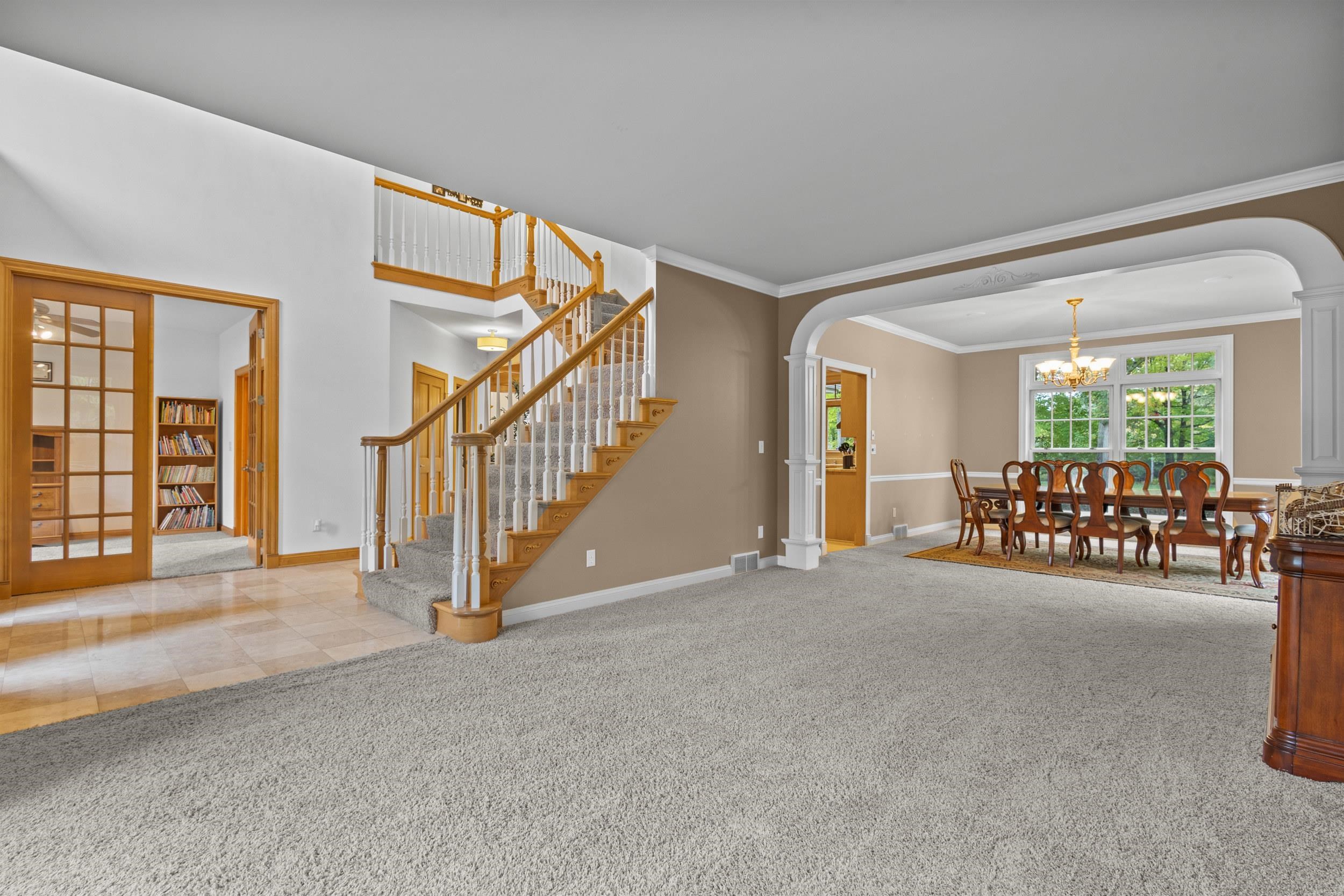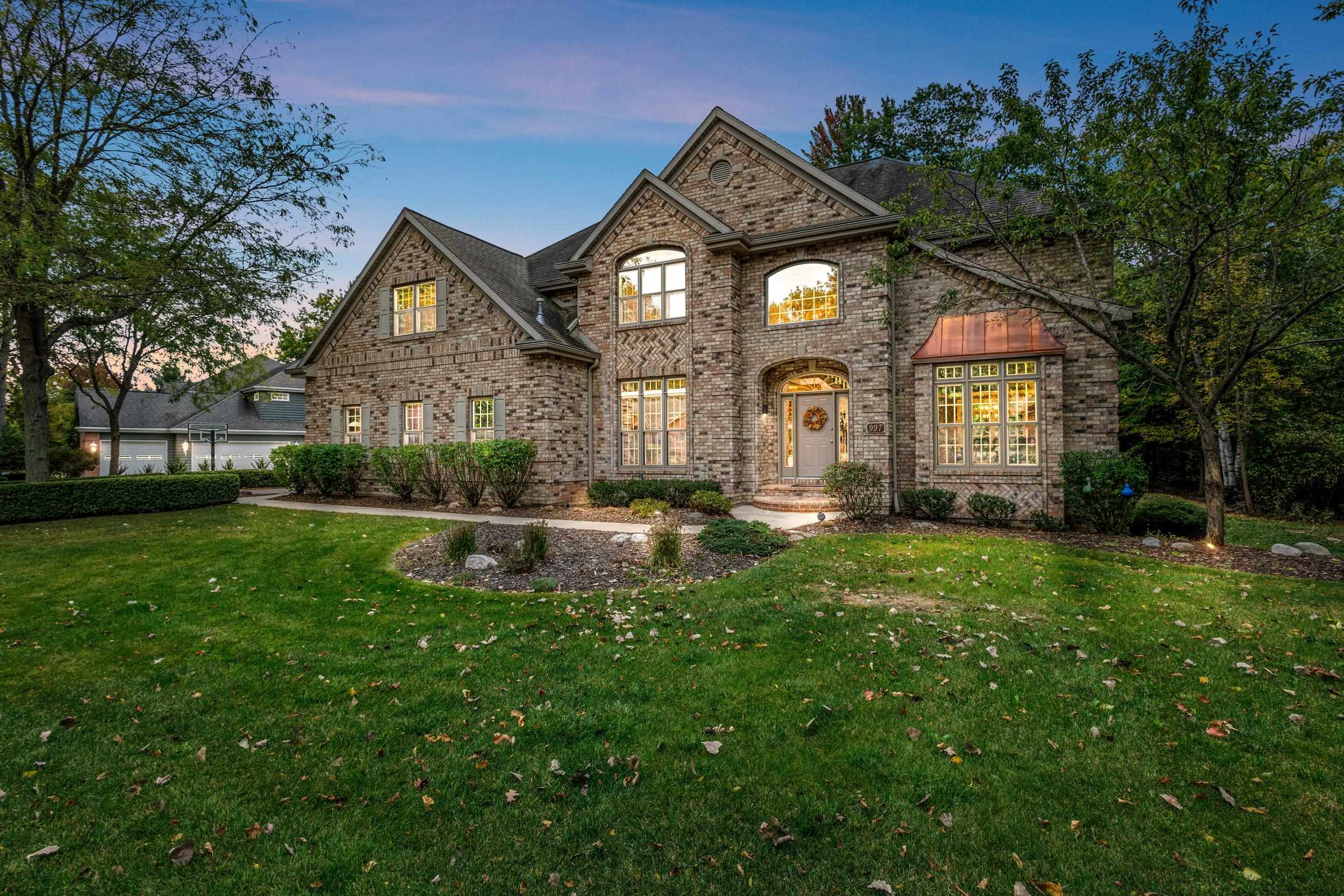 Impressive all-brick 5-bedroom, 5-bath home situated on the Thornberry Creek Golf Course. Over 6,000 sq. ft. of beautifully designed living space featuring a gourmet kitchen with granite counters and coffered ceilings, spacious great room with fireplace, and formal dining. Two primary bedroom suites in addition to 2 bedrooms with dual-entry bath and walk-in closets in each. Finished lower level includes home theater, gym, 5th bedroom, full bath and rec area. Enjoy golf course views and mature trees in this sought-after community offering elegance, comfort, and exceptional craftsmanship. Furnaces were replaced in 2018 and AC units replaced in 2017.