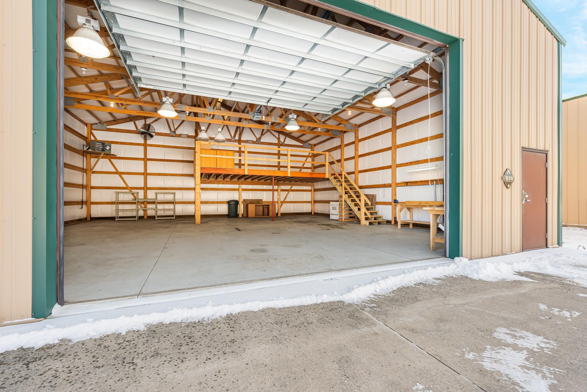 Why pay someone else rent? This storage condo has it all for you!! 1600 sq feet of storage or space customizable for whatever you need, built in platform, 75,000 btu heater, 12x16 ft door!! Easy access to highways, airport, etc. Don't miss this one! Fully insulated with 100 amp service and additional outlets. This unit also has drainage, paved driveway and easy access in and out. Annual HOA fee of $300.