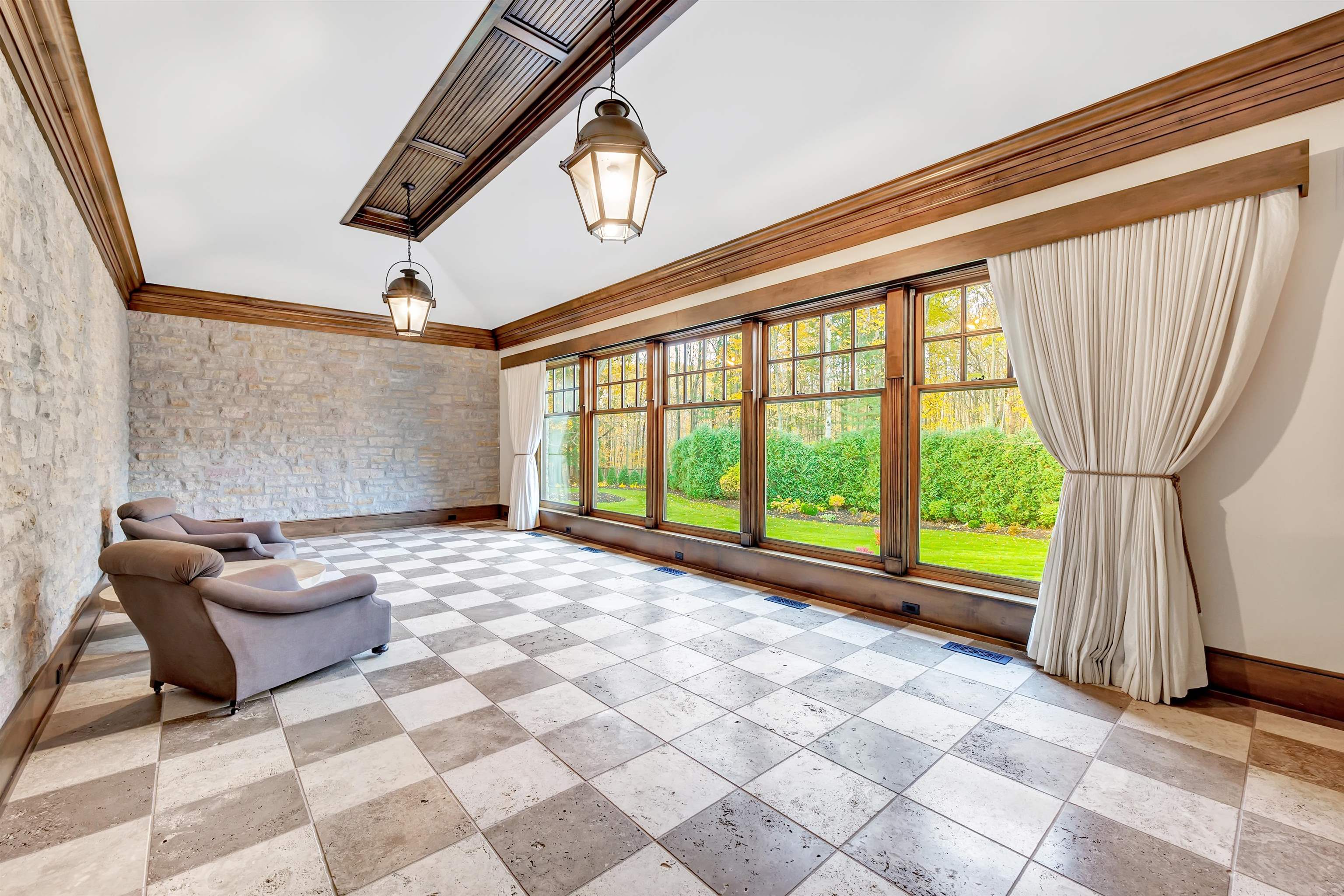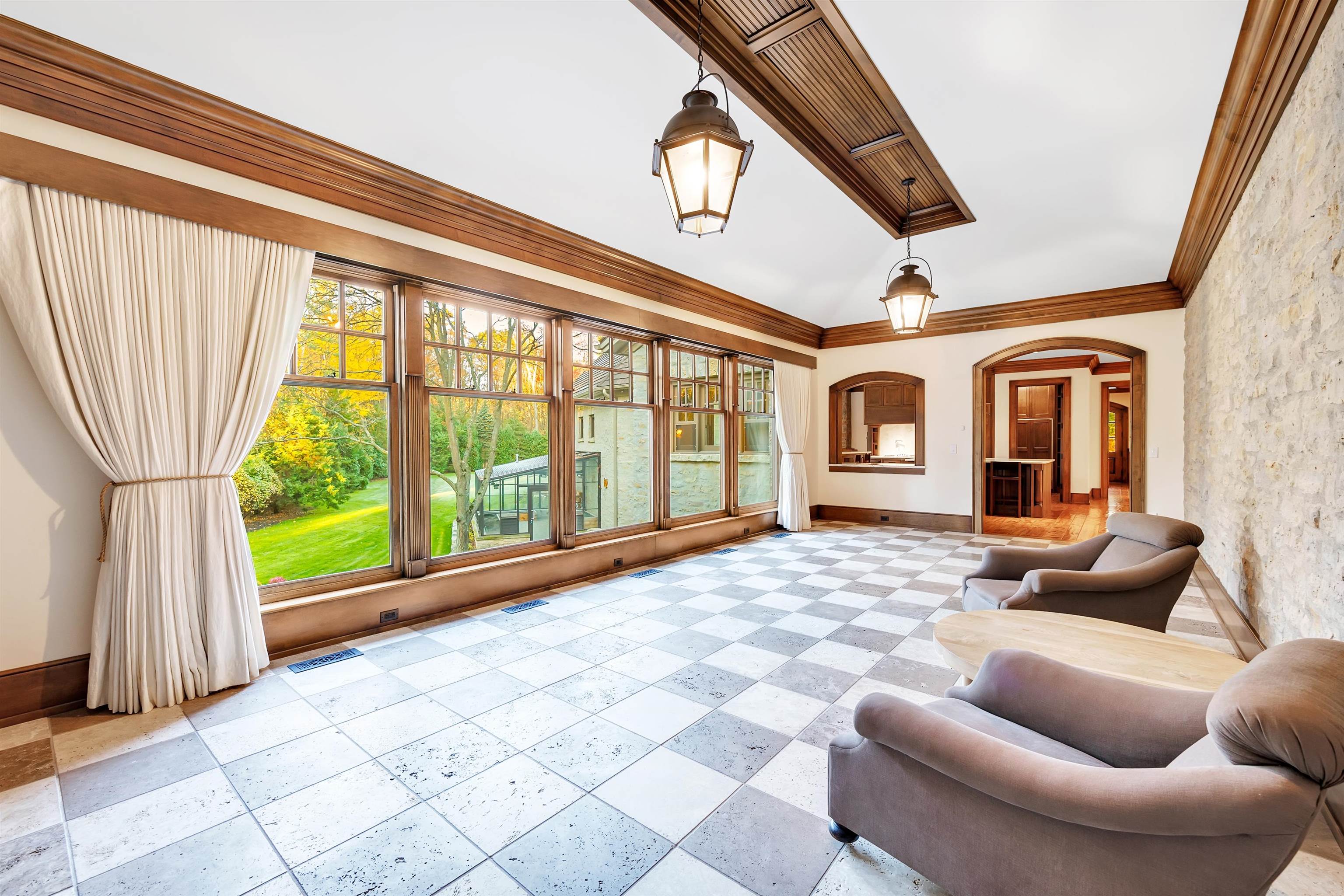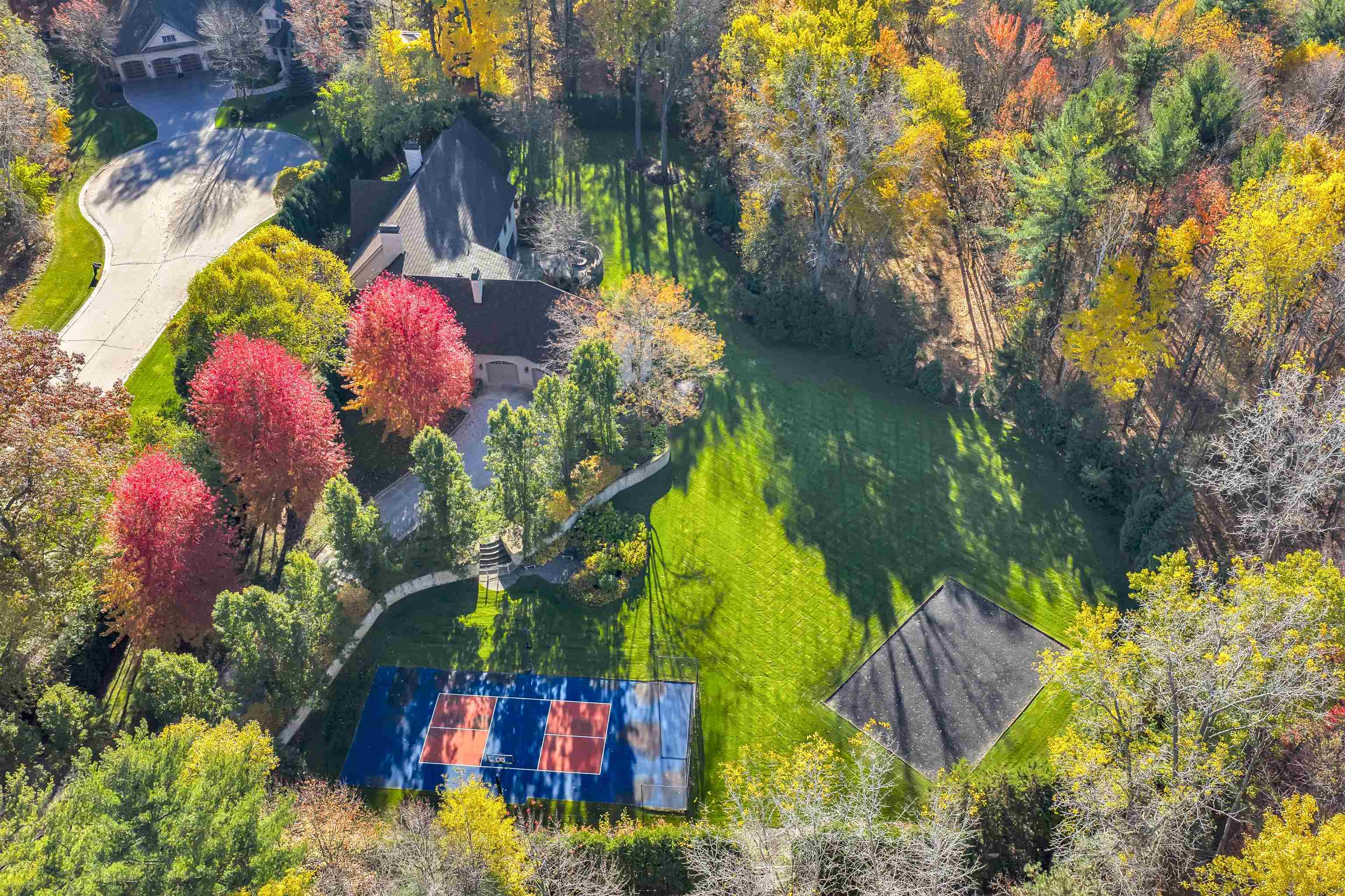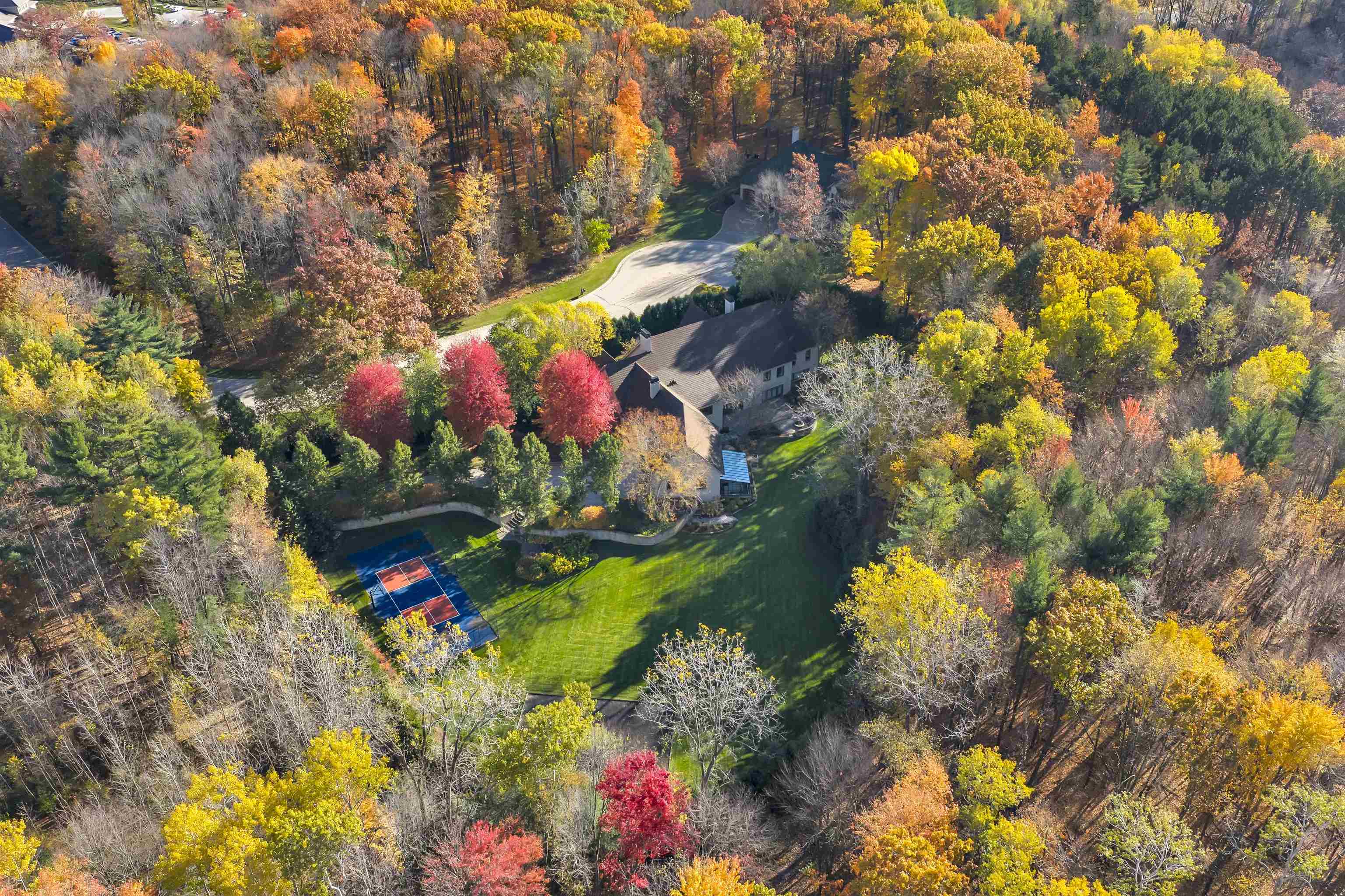 Welcome to this one-of-a-kind, custom-built all-stone estate tucked away on a very serene & private 5.32 beautifully landscaped acres. This exceptional home features an office/library, chef-inspired gourmet kit with top-of-the-line appliances, a spacious walk-in pantry, a butler's pantry off the dining room, and stunning hand-hewn hickory floors and sophisticated architectural features through out. The LL is an entertainer’s dream — A billiard room with bar, all brick theater room with built-in seating and wet bar, fitness room, steam shower and changing room, and a wine lovers wine Cooler room! Outside, enjoy the serene surroundings with a gorgeous patio, fire pit, lit tennis and pickleball court, and even a greenhouse for early gardening. This home is AMAZING. Call today