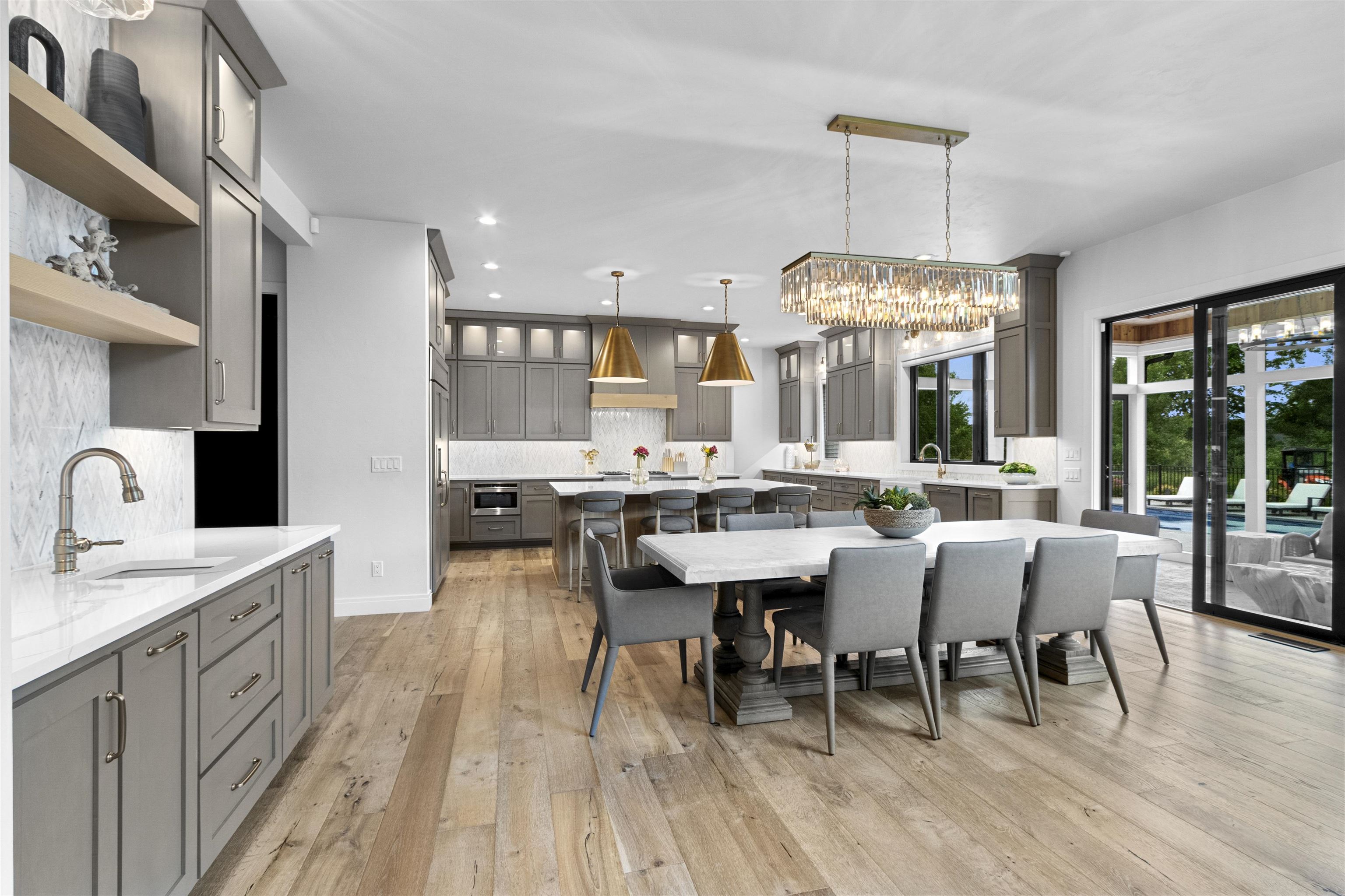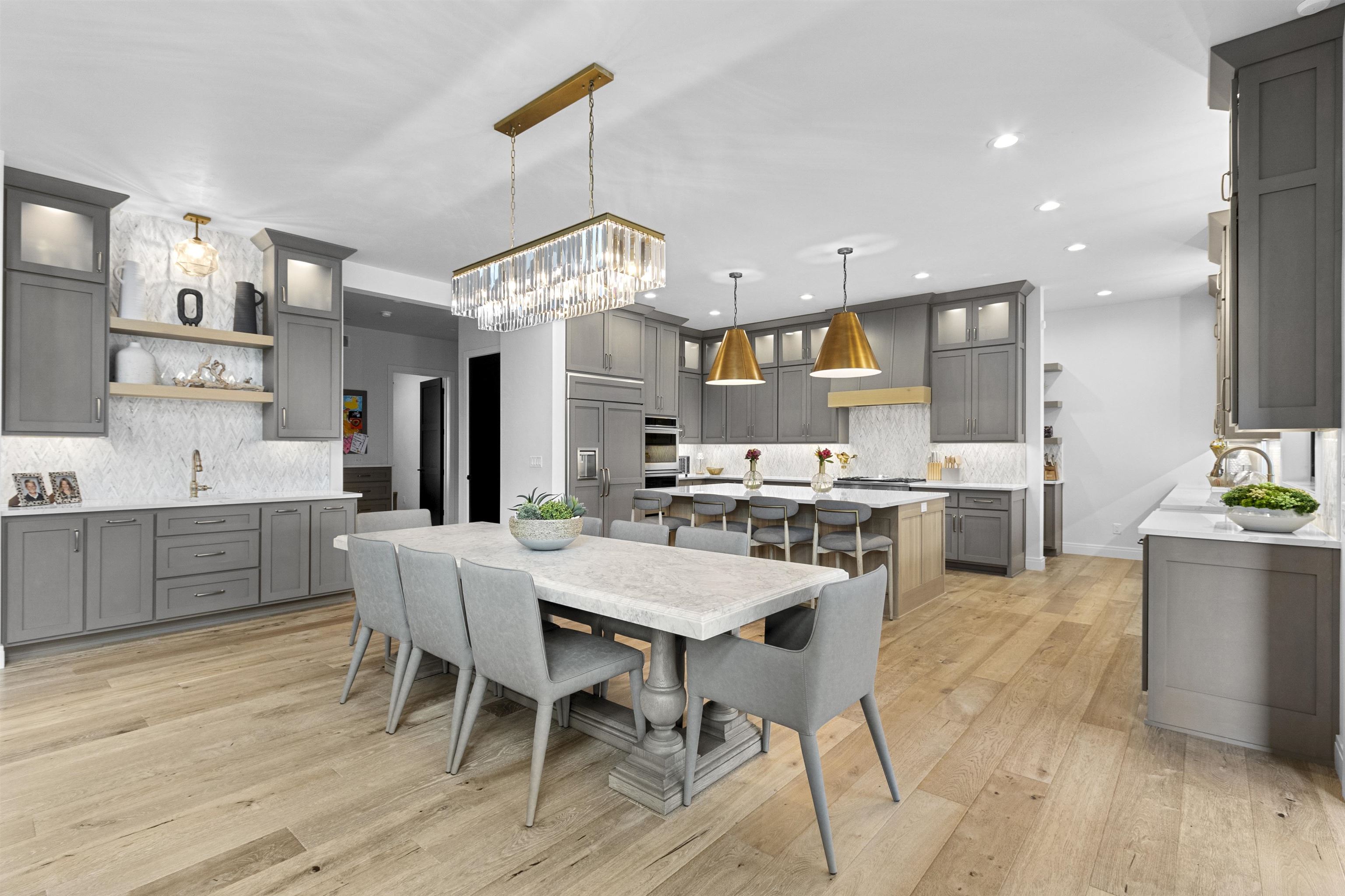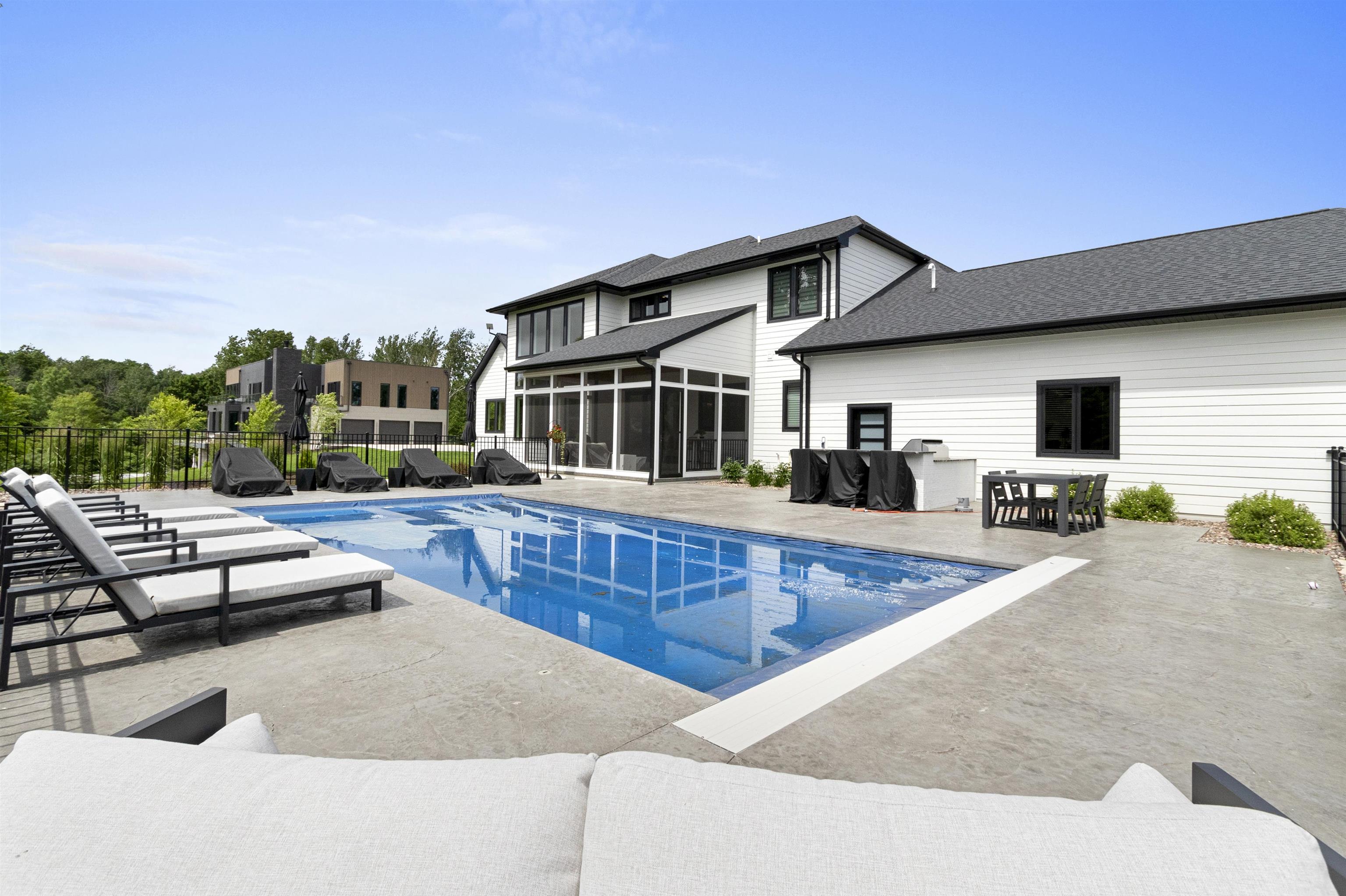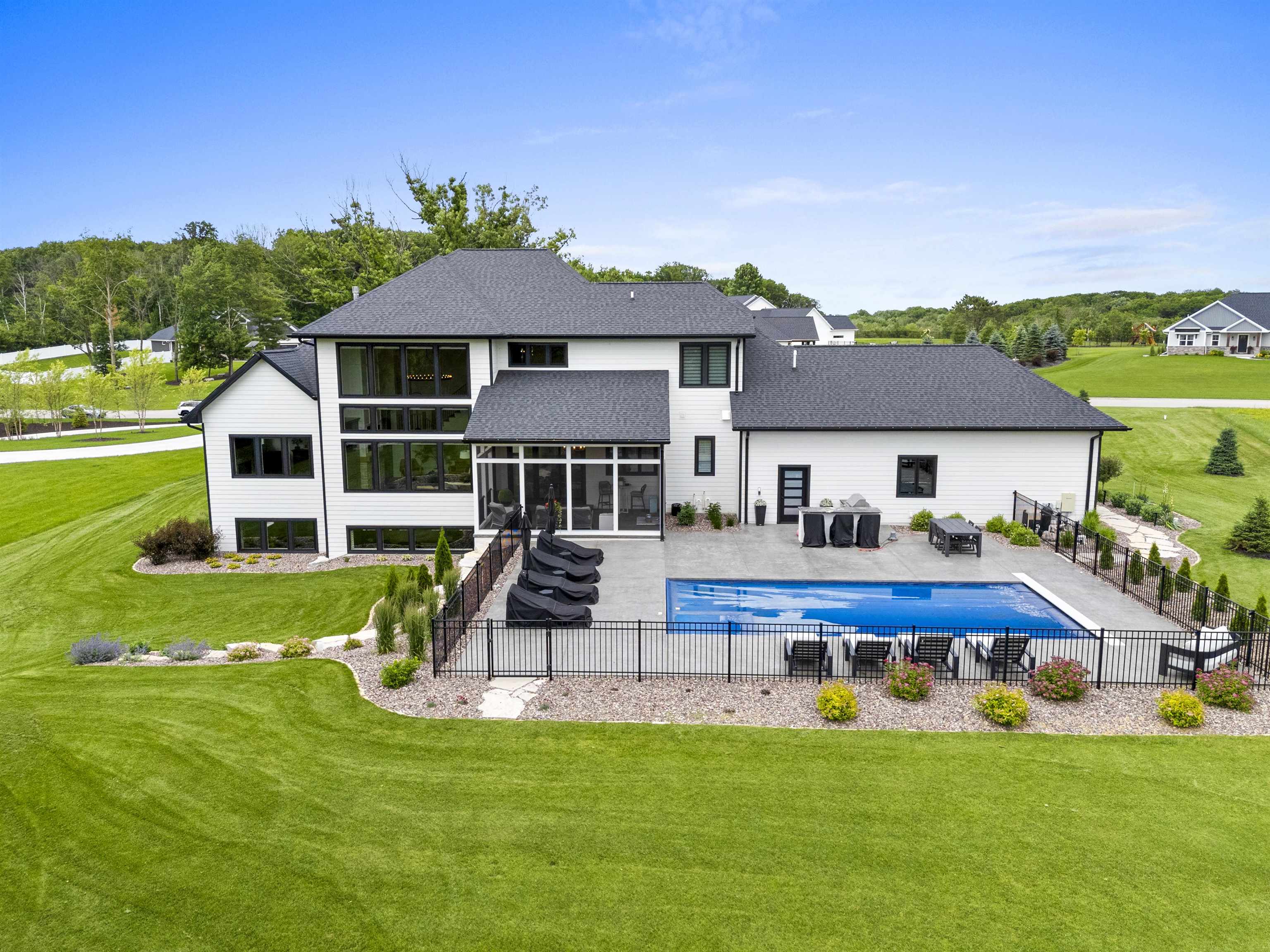 Luxury home designed w/every detail in mind. This 3 yr old former show case home built by TCD Homes features 5 bed, 4.5 baths, high end finishes & exceptional design throughout while situated on 1.18 acres. Kitchen features top tier appliances, custom lighting, walk in pantry. Great room features beams, fireplace, custom power shades. Primary suite boasts shiplap, beams, fire place, walk in closet, soaking tub, tile shower w/double shower heads & vanities. Laundry on main & 2nd level. Upper bedrooms feature custom design wall, lighting, & closets. Office on main & 2nd level. Lower level features add. bed & bath, wet bar & rec area for entertainment w/heated floor. Outdoor entertainment w/pool, built in grill, enclosed porch. Garage for 5 cars, electric vehicle charge, heated epoxy floors.