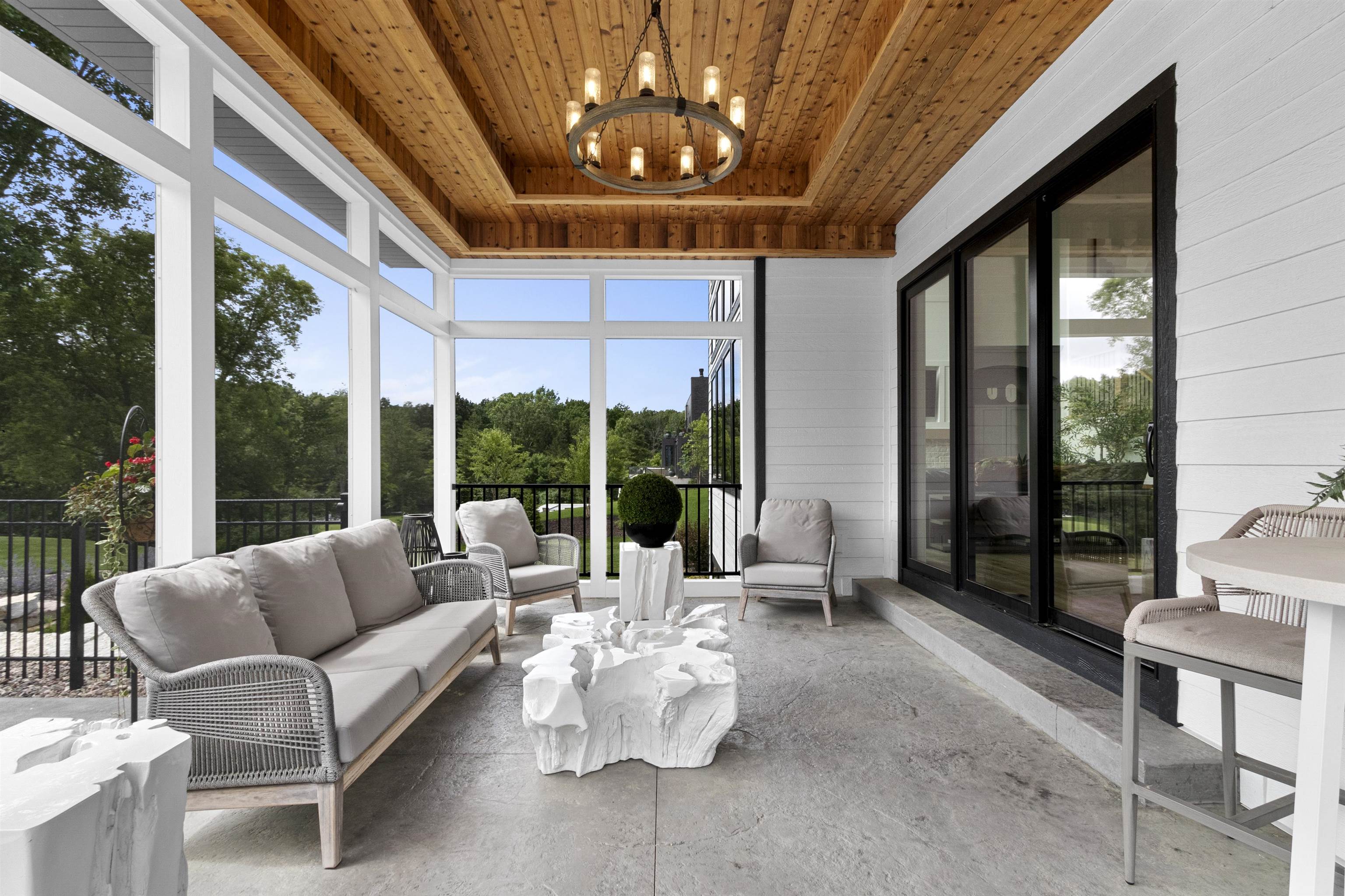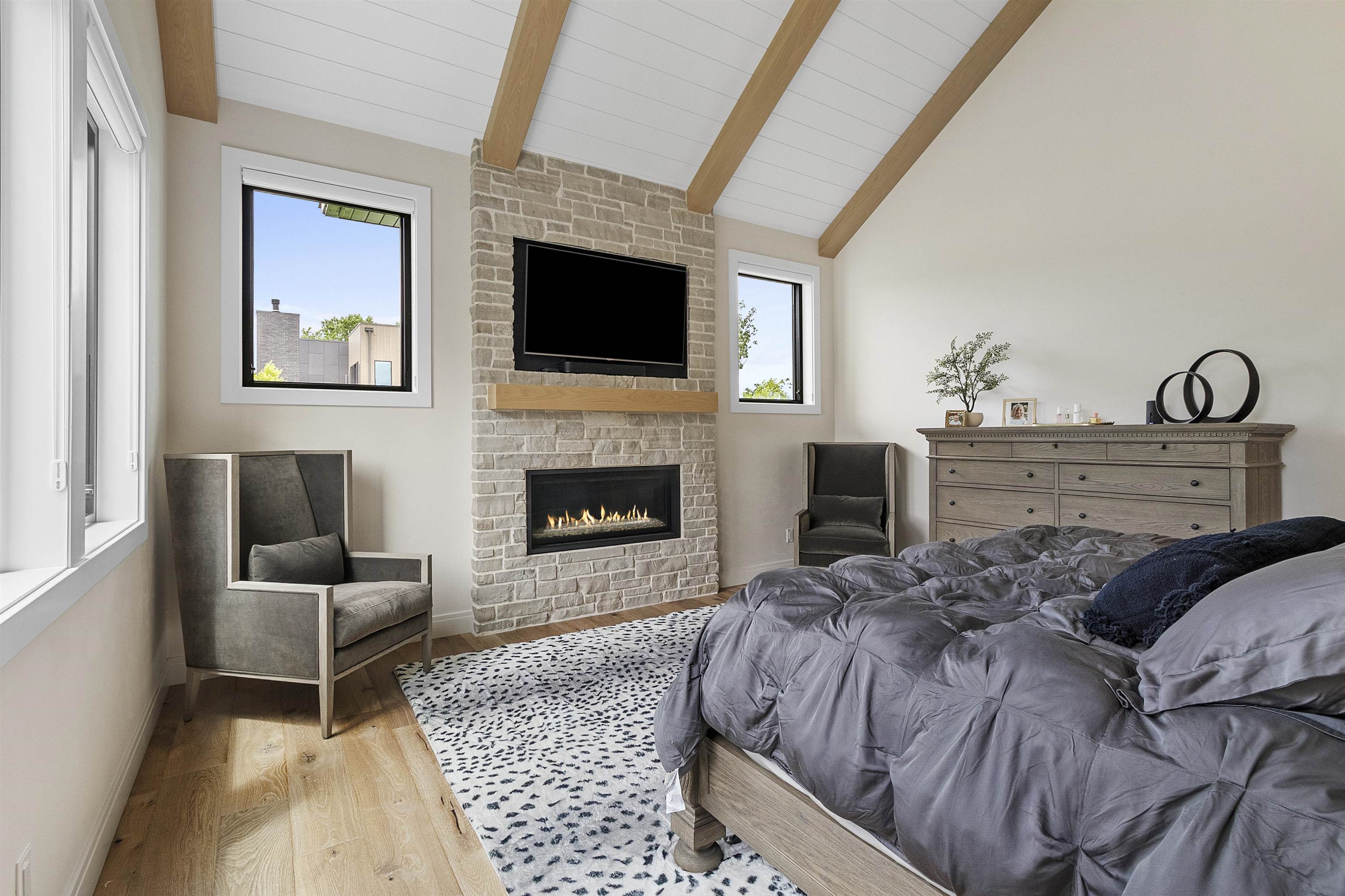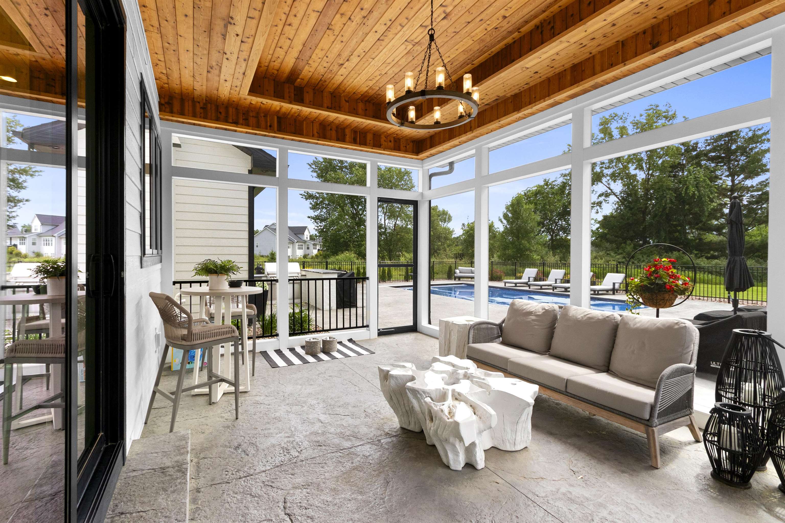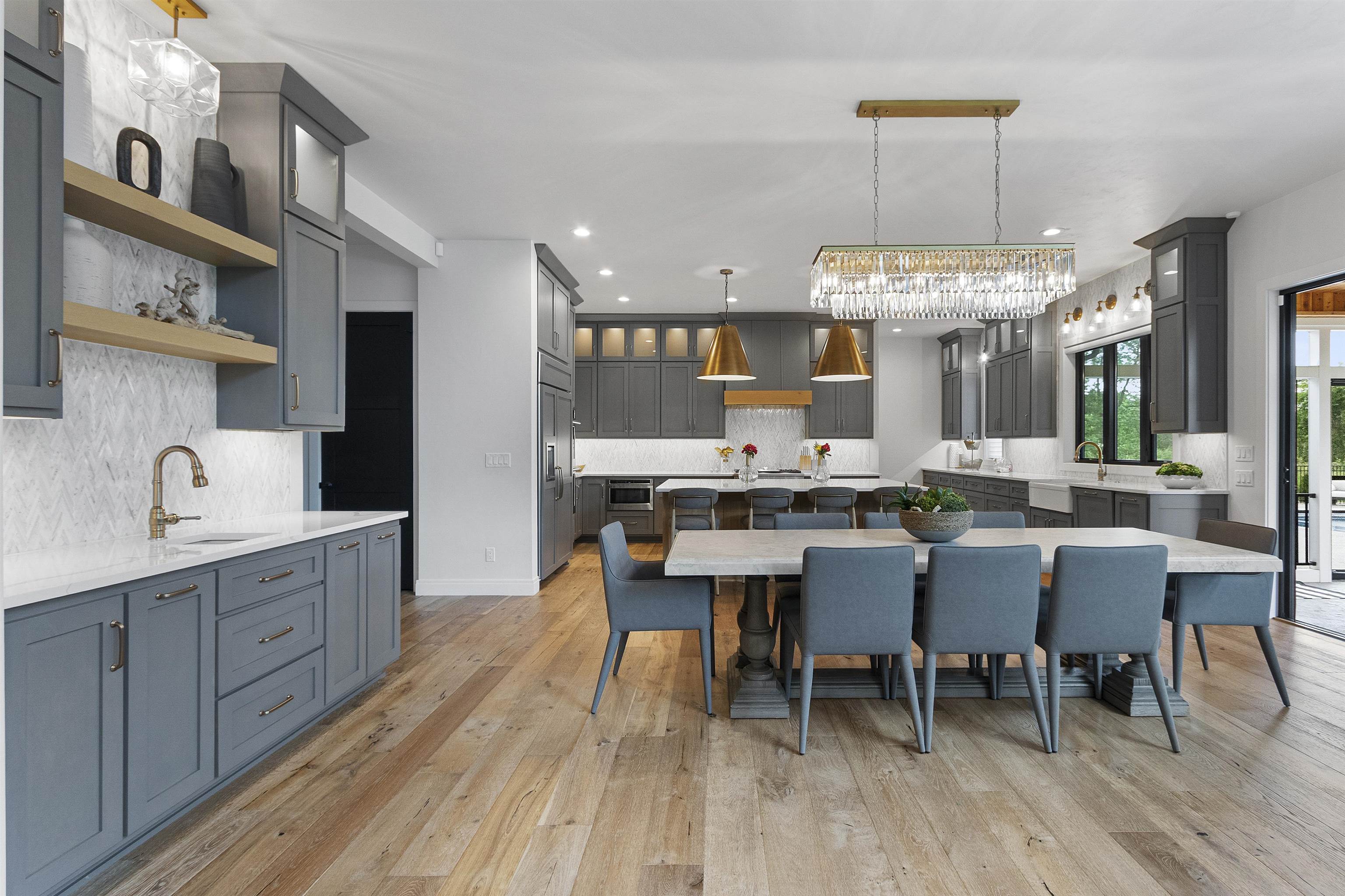 Luxury home designed w/every detail in mind. This 3 yr old former show case home built by TCD Homes features 5 bed, 4.5 baths, high end finishes & exceptional design throughout while situated on 1.18 acres. Kitchen features top tier appliances, custom lighting, walk in pantry. Great room features beams, fireplace, custom power shades. Primary suite boasts shiplap, beams, fire place, walk in closet, soaking tub, tile shower w/double shower heads & vanities. Laundry on main & 2nd level. Upper bedrooms feature custom design wall, lighting, & closets. Office on main & 2nd level. Lower level features add. bed & bath, wet bar & rec area for entertainment w/heated floor. Outdoor entertainment w/pool, built in grill, enclosed porch. Garage for 5 cars, electric vehicle charge, heated epoxy floors.