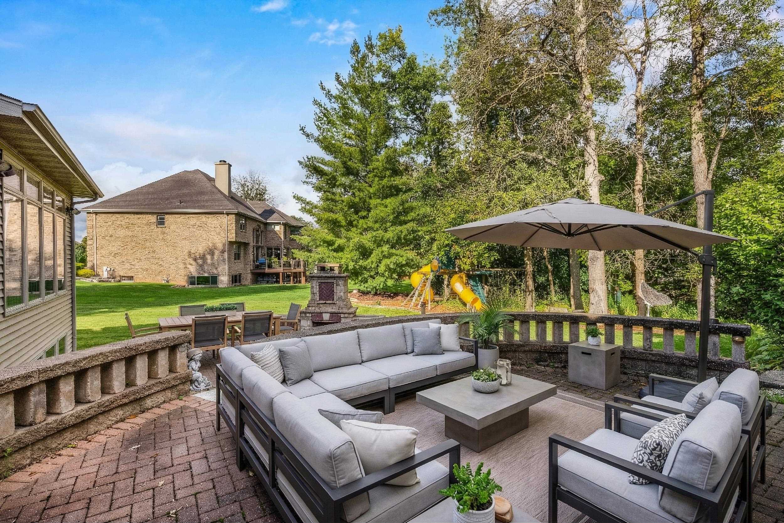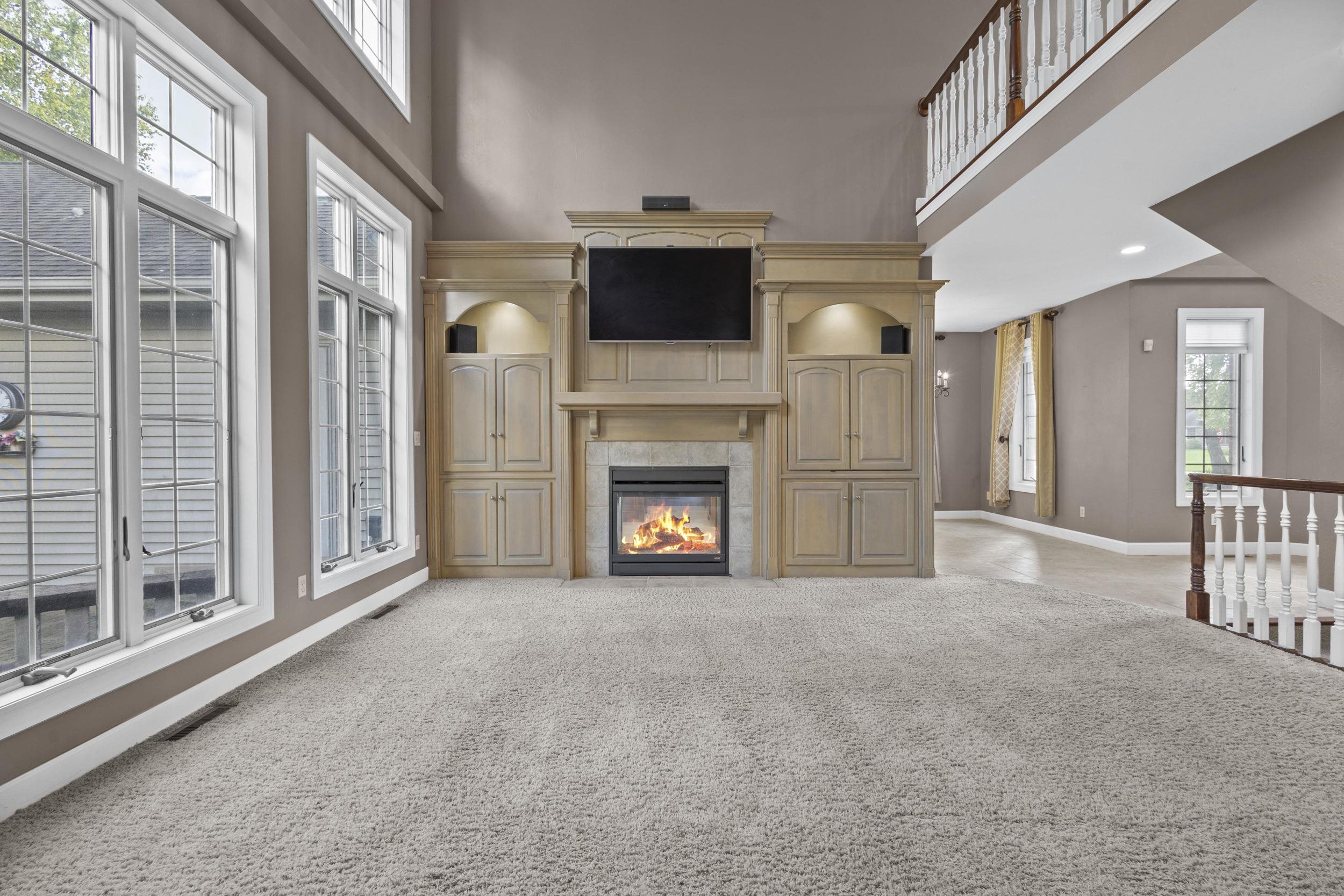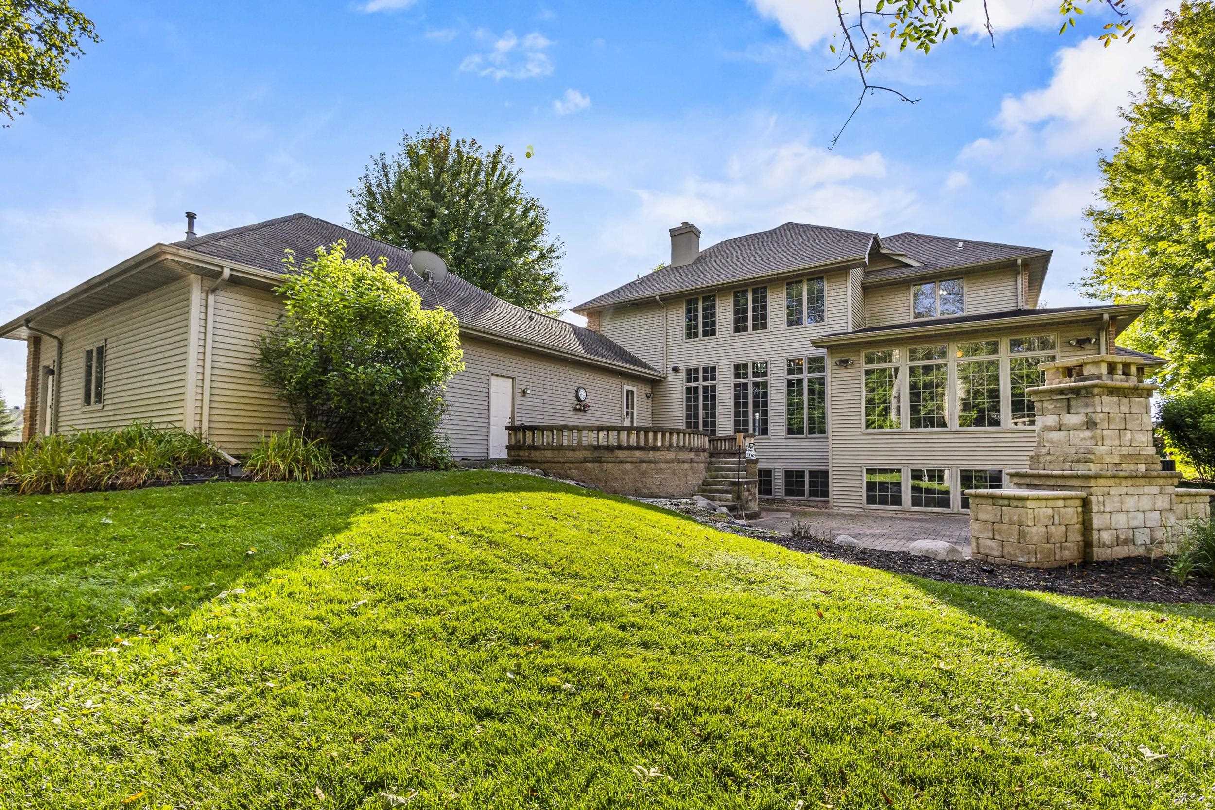 This elegant residence welcomes you with a grand staircase and soaring ceilings. Find your way into the chef’s kitchen with rich cabinetry, stainless appliances, and even a fireplace. The luxurious main-level primary suite offers a serene retreat, while the finished lower level boasts a spacious rec room—ideal for entertaining. Enjoy the private backyard oasis with a custom patio and outdoor fireplace. Thoughtfully designed and impeccably maintained, this home blends comfort, craftsmanship, and curb appeal in one remarkable property.