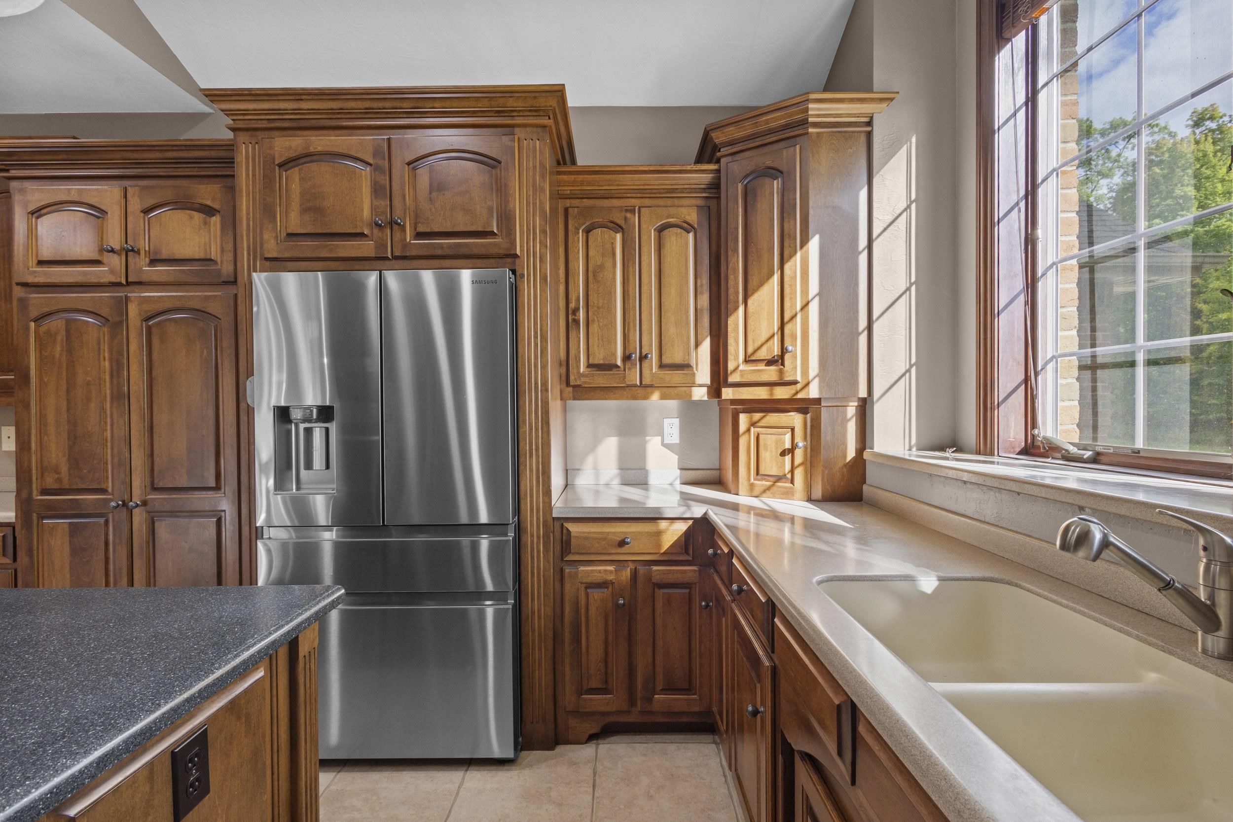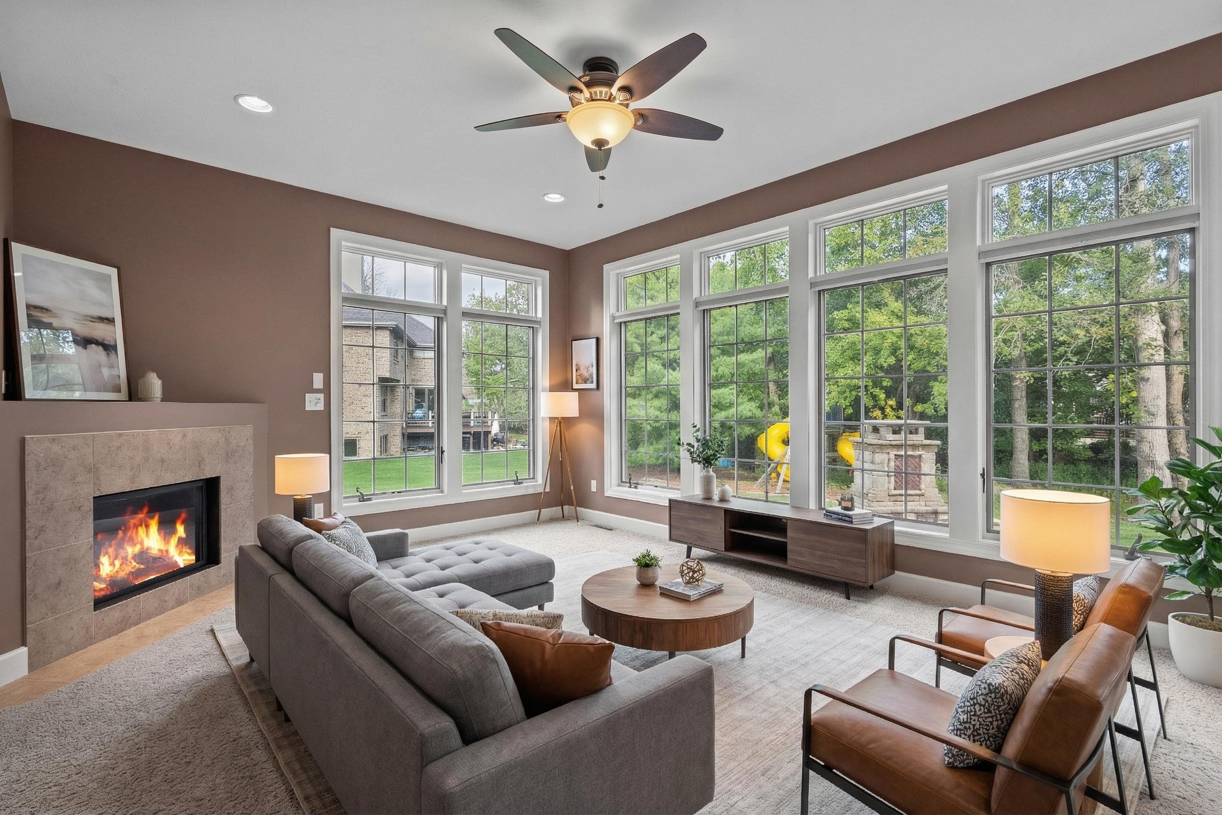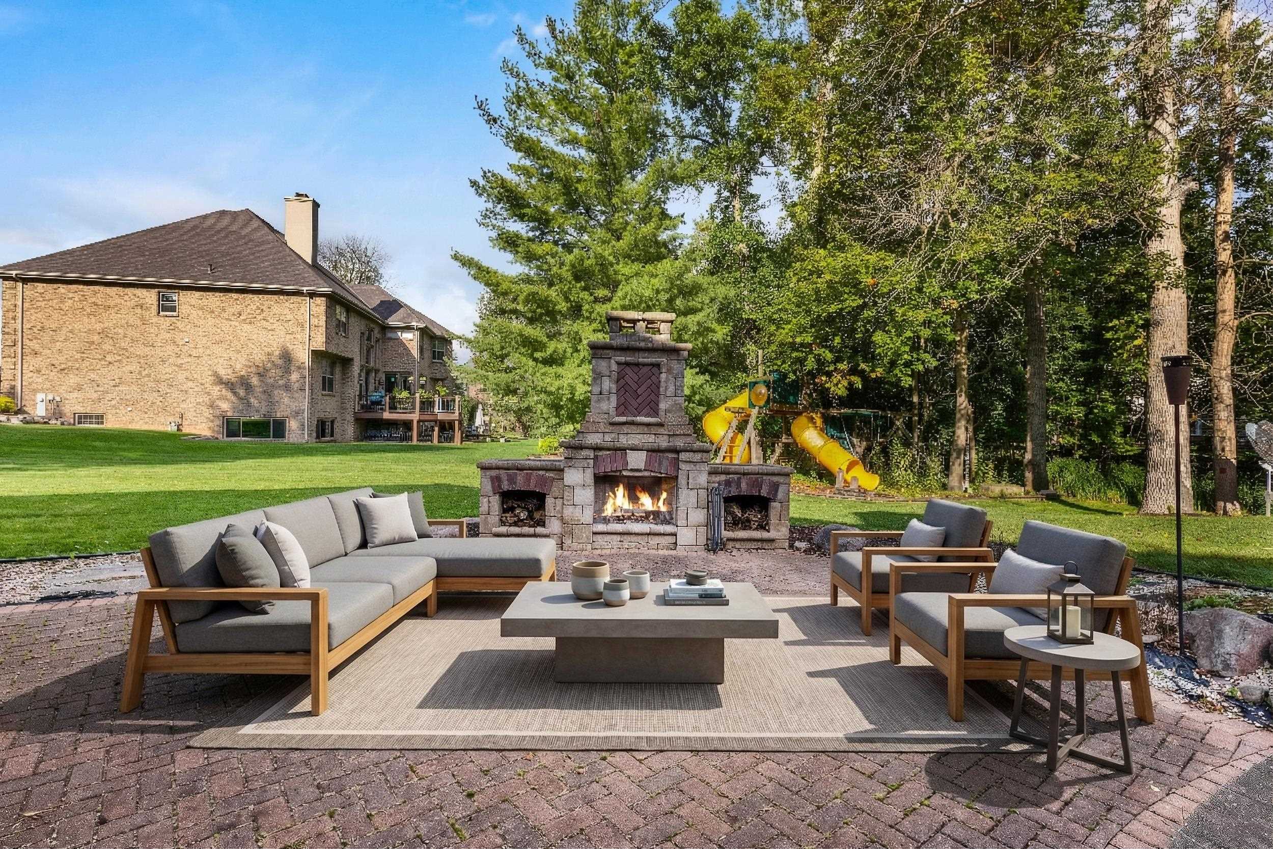 This elegant residence welcomes you with a grand staircase and soaring ceilings. Find your way into the chef’s kitchen with rich cabinetry, stainless appliances, and even a fireplace. The luxurious main-level primary suite offers a serene retreat, while the finished lower level boasts a spacious rec room—ideal for entertaining. Enjoy the private backyard oasis with a custom patio and outdoor fireplace. Thoughtfully designed and impeccably maintained, this home blends comfort, craftsmanship, and curb appeal in one remarkable property.
