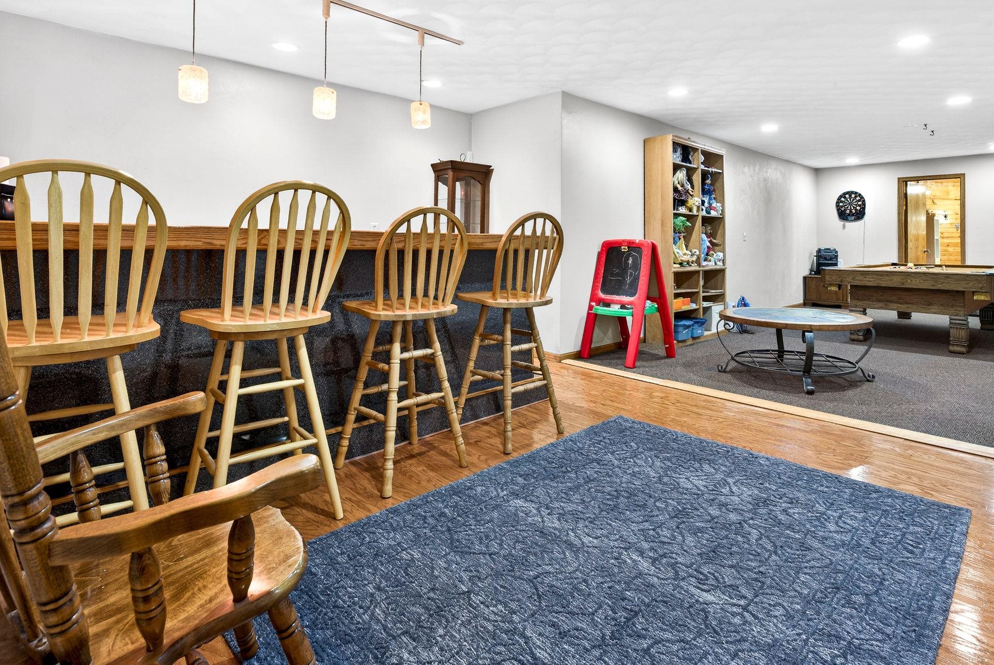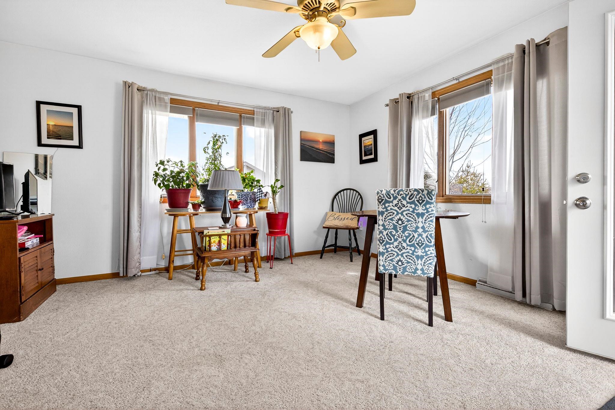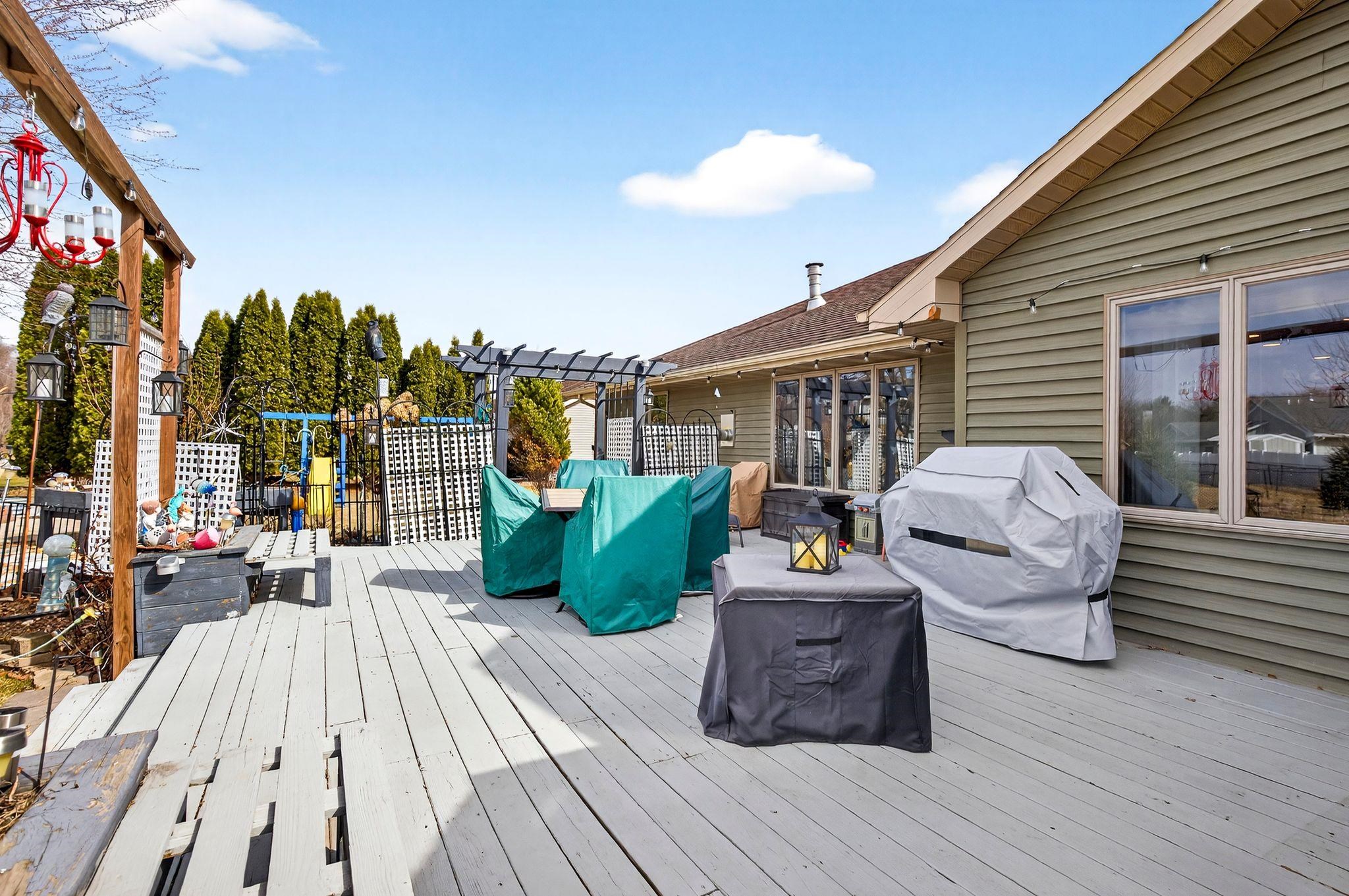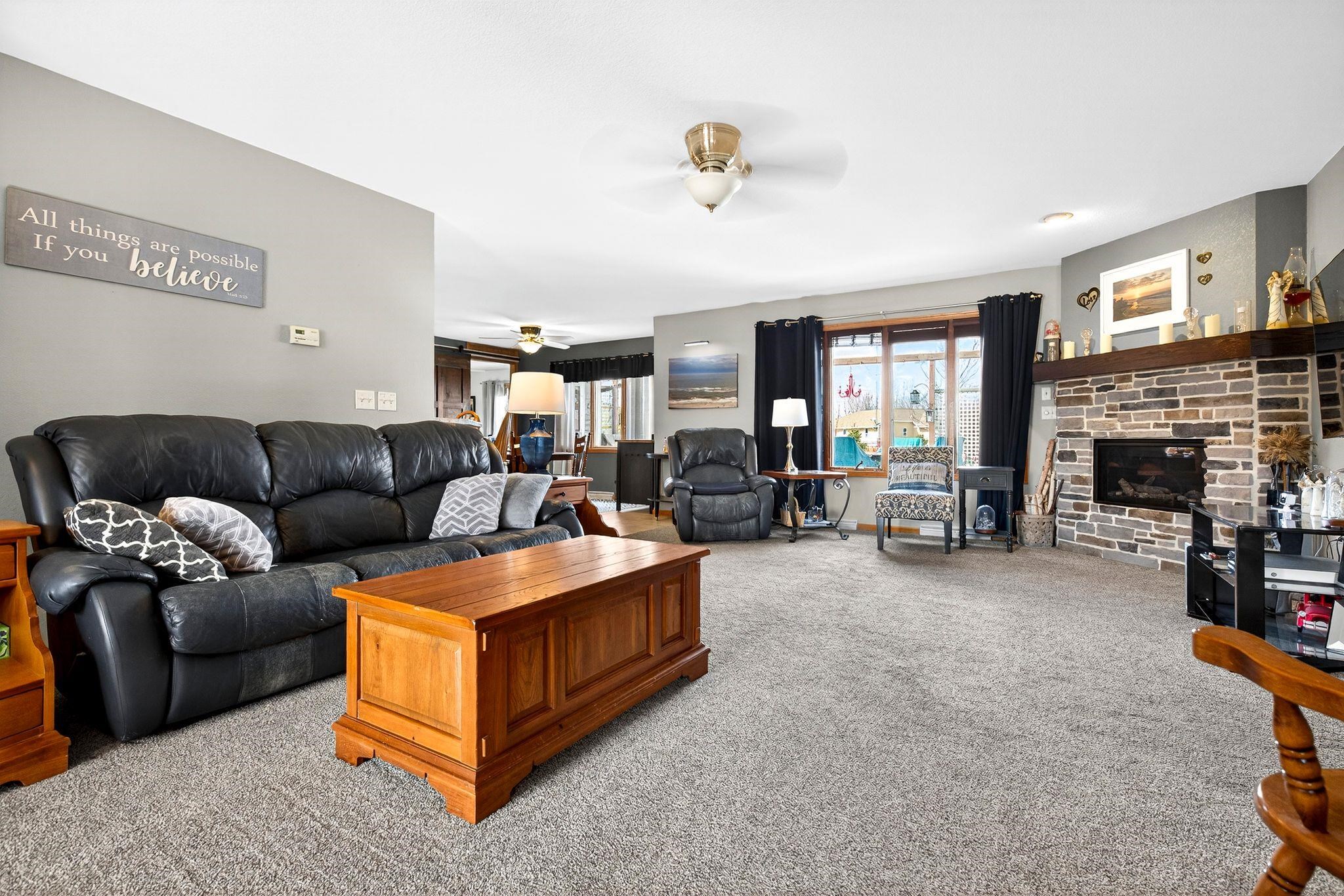 City amenities with a country atmosphere! Located on a quiet street just minutes from the city. Split bedroom designed ranch with finished lower level. Main floor has a spacious open kitchen-living room layout. Den/office on main floor could be used as a third bedroom. Gas fireplace in living room. Open lower level staircase just off front of home. Downstairs find a rec room with nice dry bar w/stools included in sale; full bath, game room and another large bedroom with egress windows. Stairs to garage and plenty of storage left. Seller has taken great care of both interior and exterior. Outside find flower beds, raised garden boxes, perennials, raspberry and strawberry beds. Home faces south for the natual sunlight to beem inside!