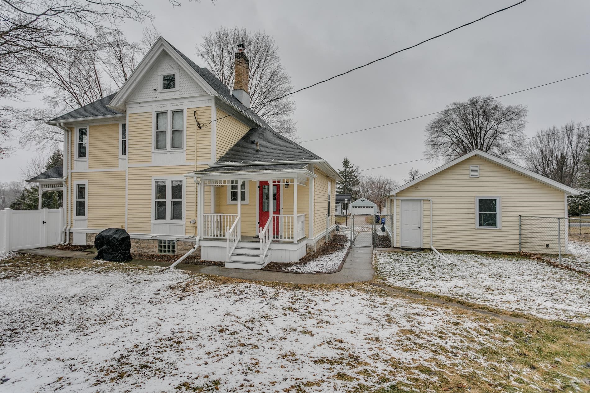Step into timeless elegance in this lovingly restored 3-story Queen Anne in the heart of downtown Hortonville. Perfectly walkable, this home blends historic charm with everyday comfort. Inside, you’ll find beautiful original millwork, stained glass, hardwood floors, classic light fixtures, and rich period details throughout. The spacious kitchen offers room to gather and features a convenient rear pantry. Upstairs, the third floor provides a loft-style retreat complete with a half bath—ideal as a studio, guest space, or private getaway. Outside, enjoy a privacy-fenced yard perfect for relaxing or entertaining. A rare opportunity to own a piece of Hortonville history. 1 year Home Warranty included!