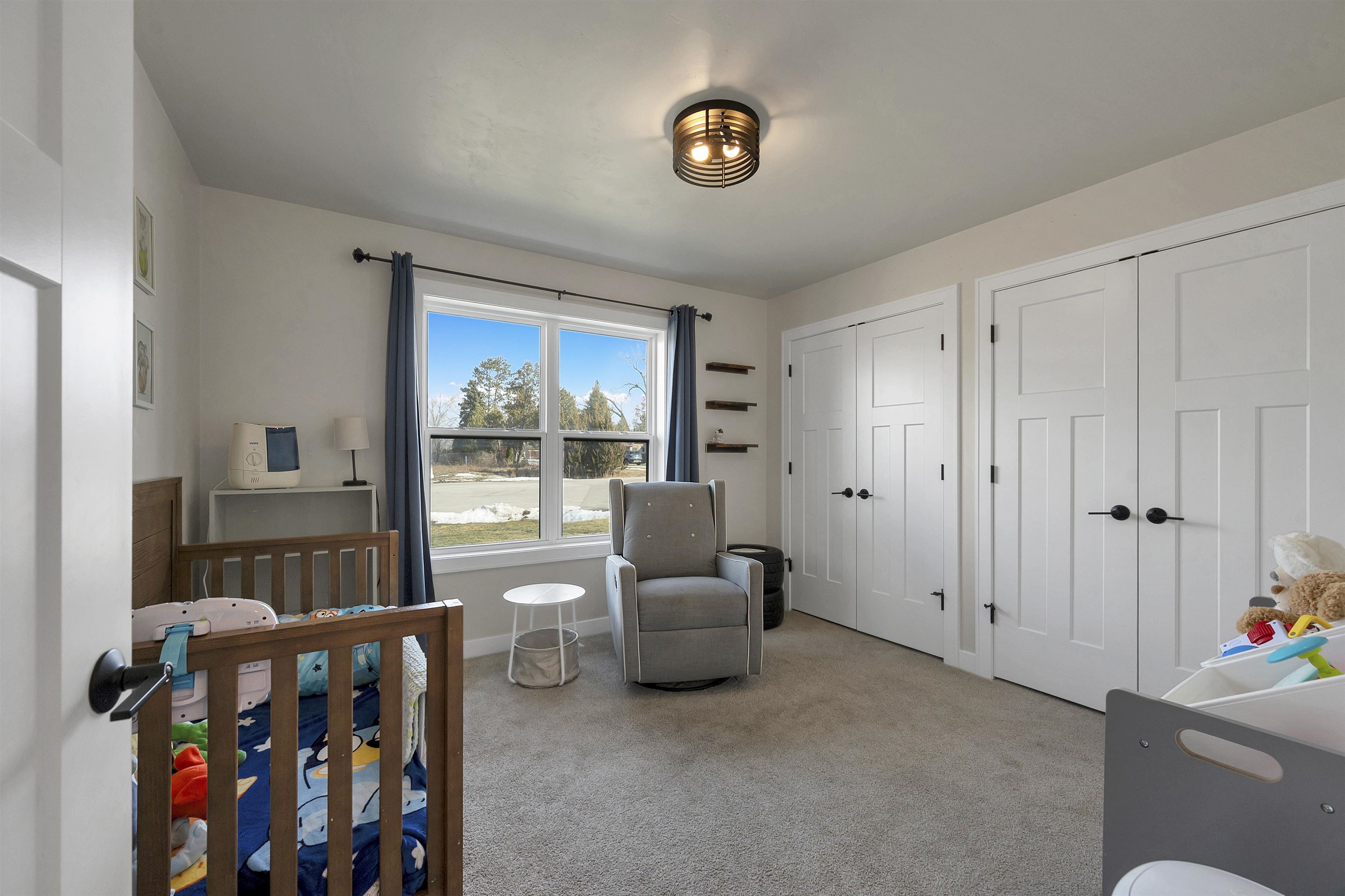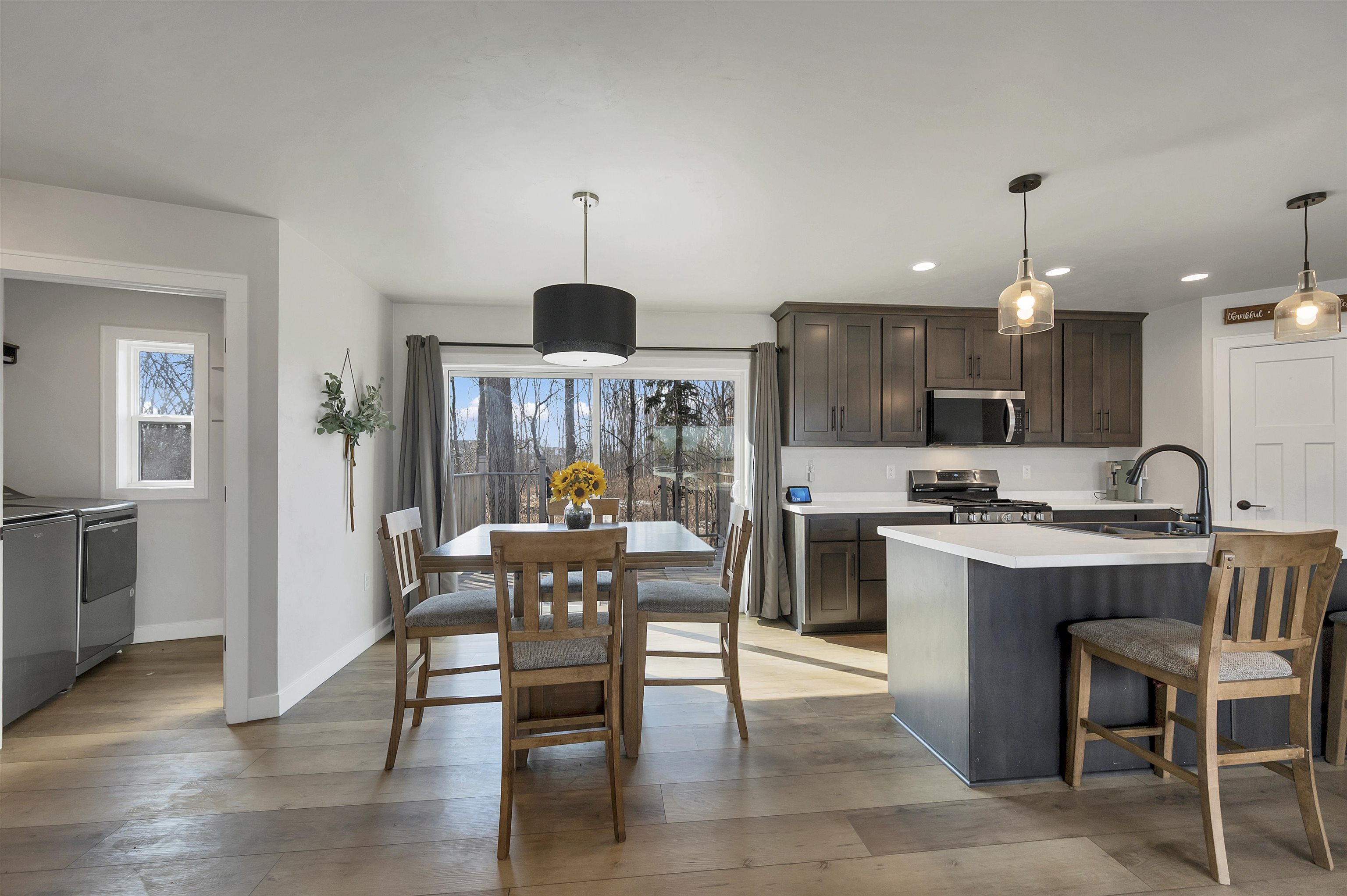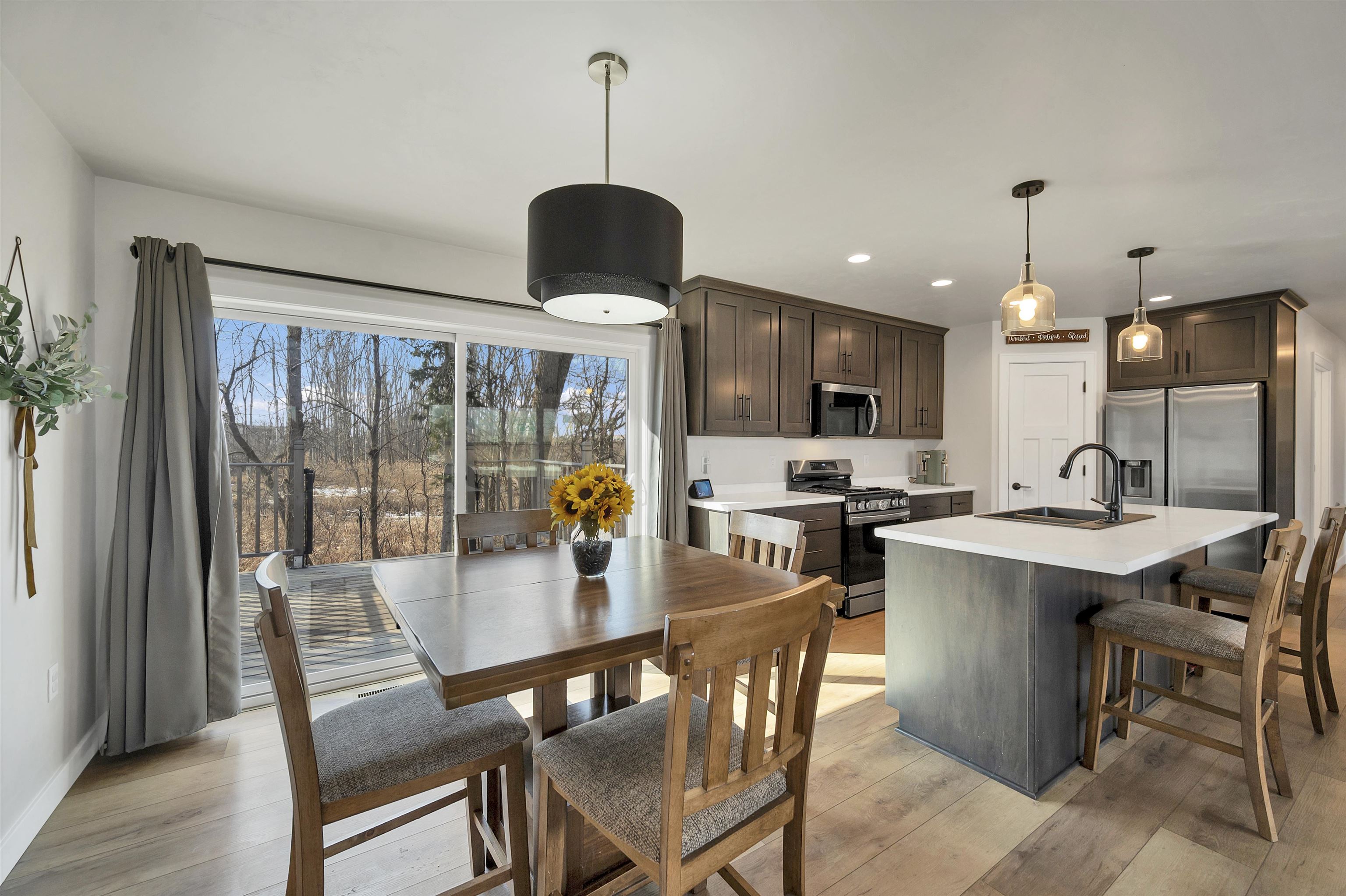 Built in 2023, this ranch offers a layout that simply makes sense. The main level is open and connected, with a large island that anchors the kitchen, seating for gathering, a pantry for storage, and patio doors leading to the deck. The wooded backyard with a creek creates a peaceful setting and privacy year round. The primary suite features a walk in closet and private full bath, while the finished lower level adds a comfortable family room, two additional bedrooms, and another full bath for added flexibility. Zero entry design, thoughtful storage throughout, a 2 stall attached garage, shed, and updated landscaping in 2025 complete the home. Located on a quiet cul de sac with a park right down the street and quick highway access for an easy commute. 48 hr binding acceptance