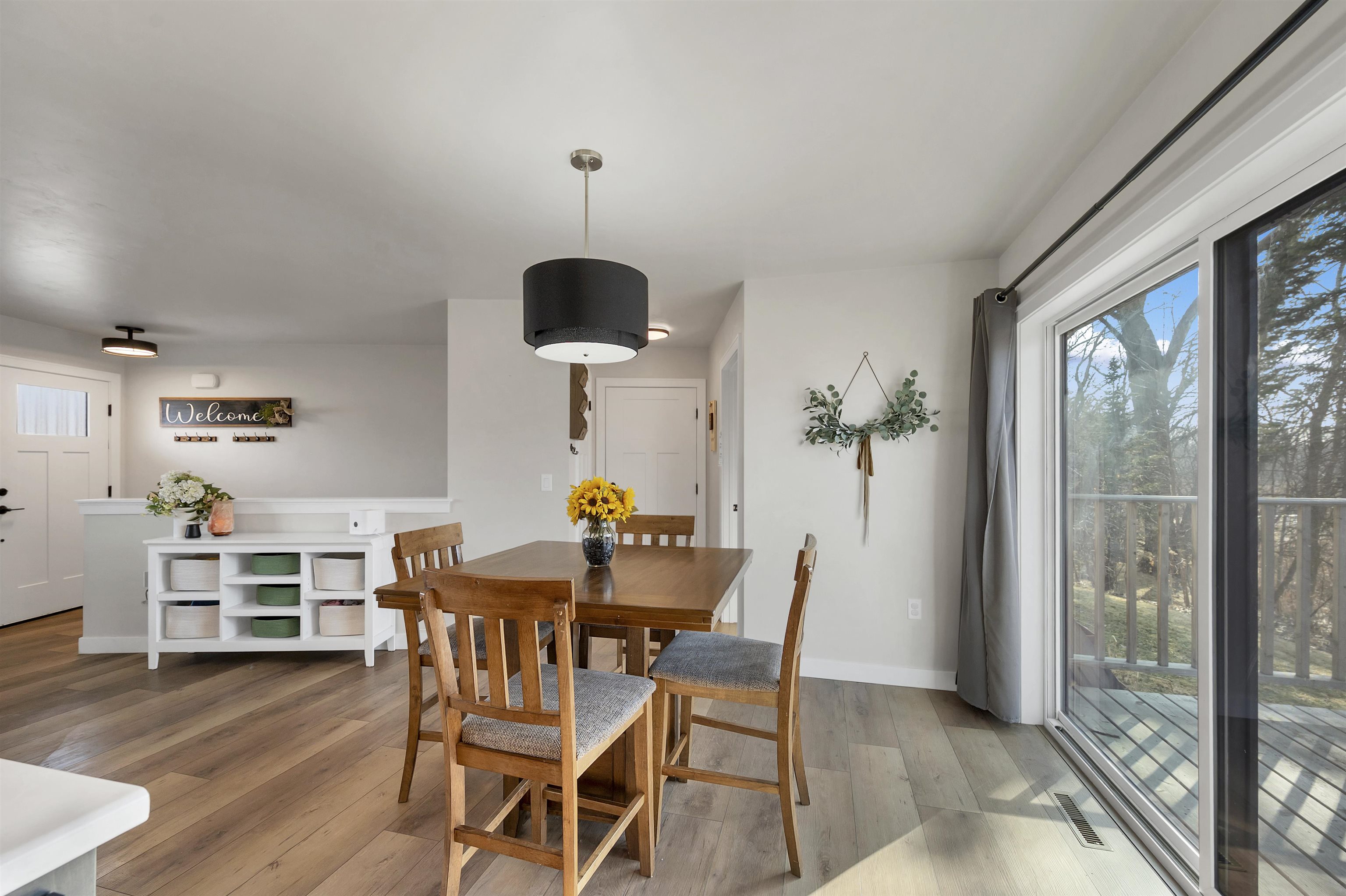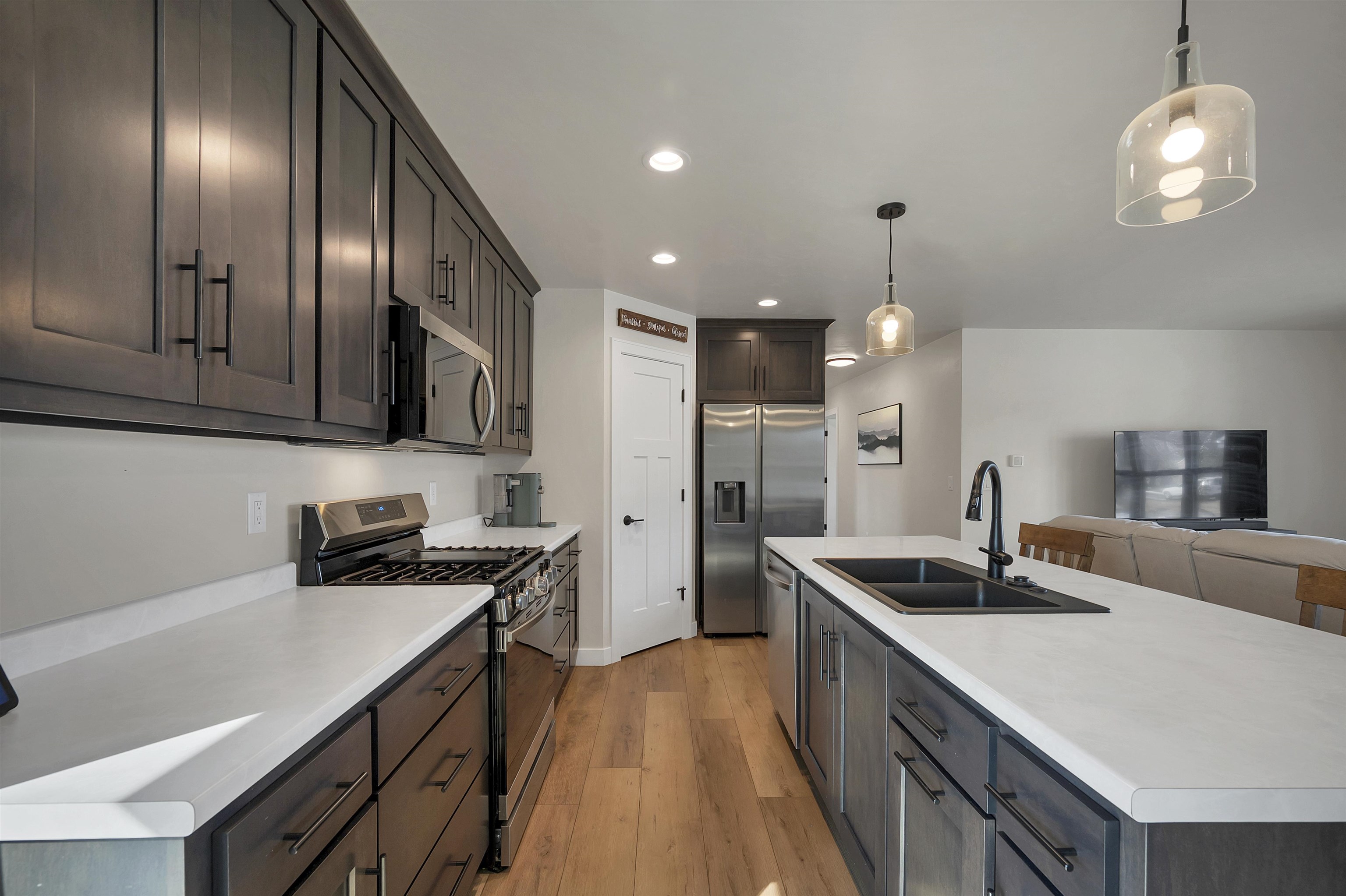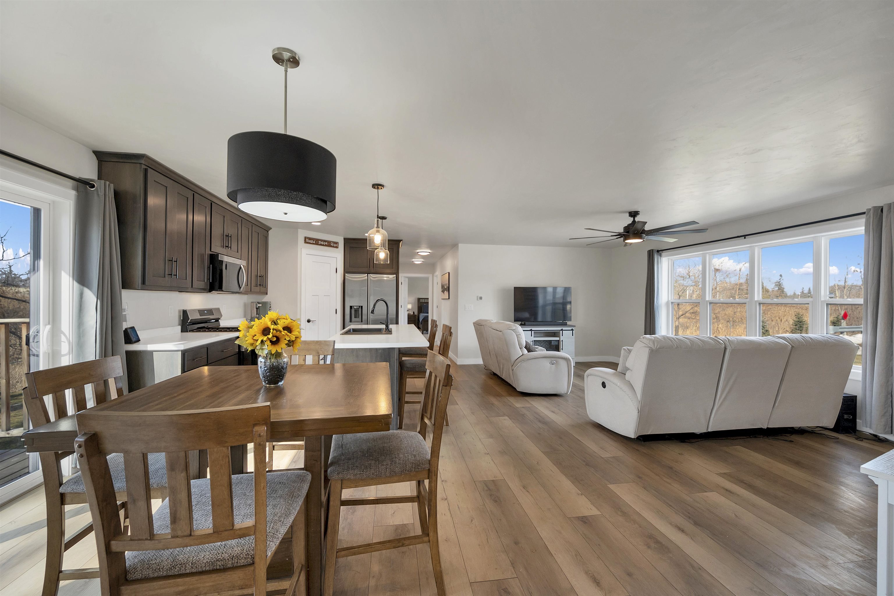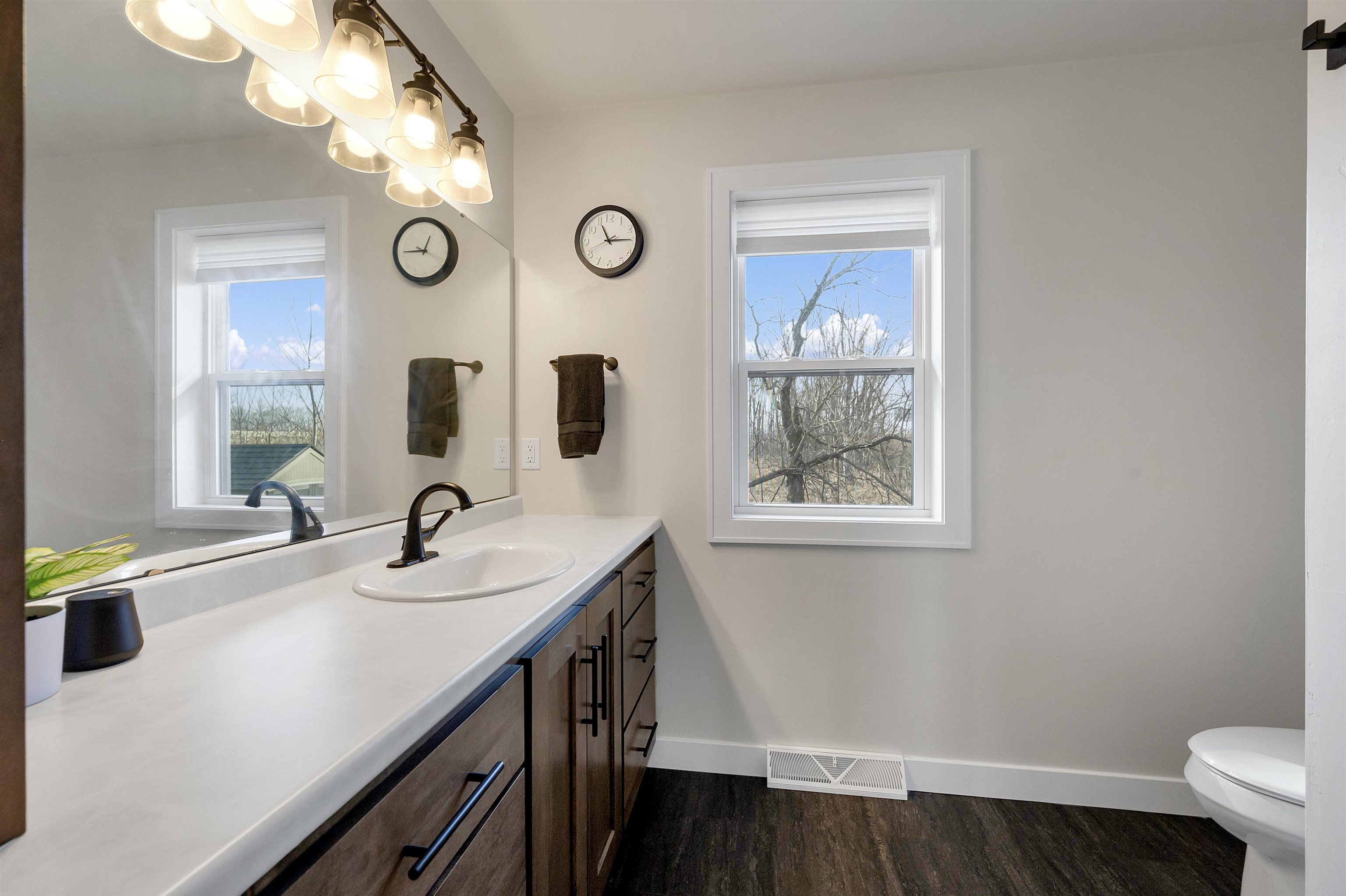 Built in 2023, this ranch offers a layout that simply makes sense. The main level is open and connected, with a large island that anchors the kitchen, seating for gathering, a pantry for storage, and patio doors leading to the deck. The wooded backyard with a creek creates a peaceful setting and privacy year round. The primary suite features a walk in closet and private full bath, while the finished lower level adds a comfortable family room, two additional bedrooms, and another full bath for added flexibility. Zero entry design, thoughtful storage throughout, a 2 stall attached garage, shed, and updated landscaping in 2025 complete the home. Located on a quiet cul de sac with a park right down the street and quick highway access for an easy commute. 48 hr binding acceptance