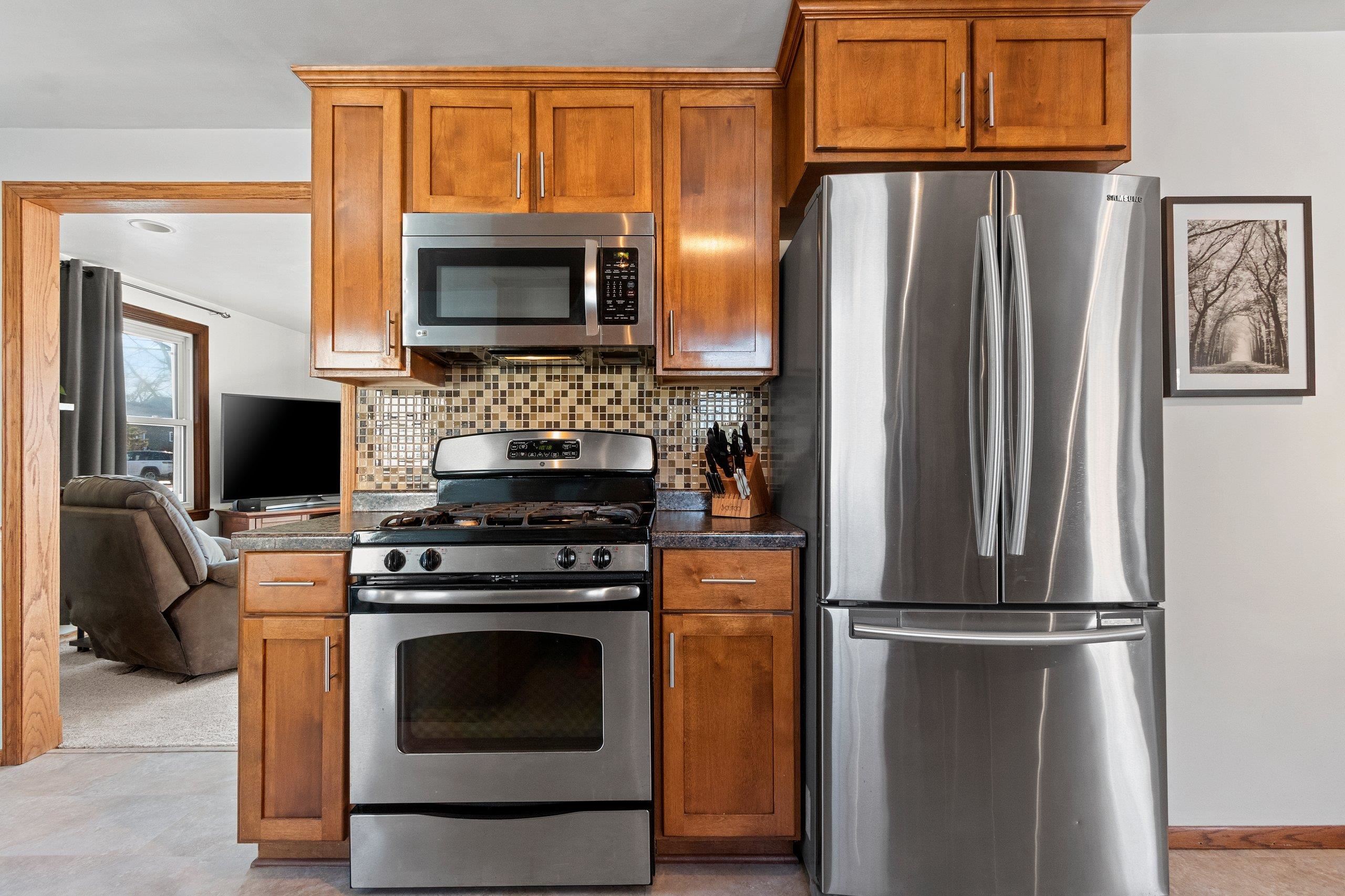 Extremely well maintained home right in the heart of Howard-Suamico School District with an extra deep, park like backyard! A convenient floor plan will guide you through this updated home showcasing tons of natural light throughout, some hardwood floors, generous sized kitchen. Dual vanity in main level bath, fourth bedroom is currently used as a walk in closet but built ins can be removed should Buyer request, 2 apple trees in backyard, cherry tree in front yard, all 3 produce. Finished LL with bar! Garage fully redone in'24, water heater'19. Plenty of storage throughout the home including a lean-to off the back of the garage and large storage shed with cement floor. Fire pit. LL=exposed floor joists. All measurements are approximate, Buyer to verify. Showings start Friday (2/13).